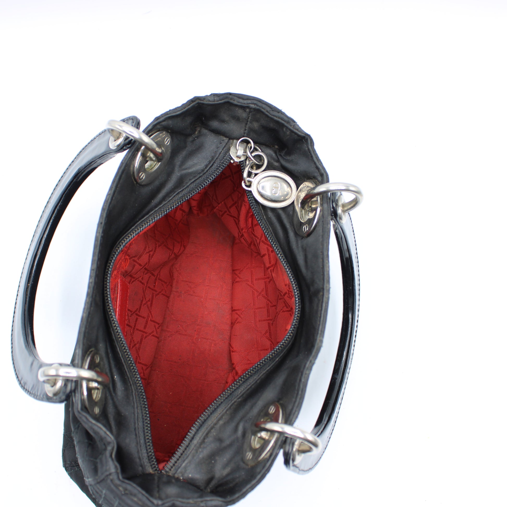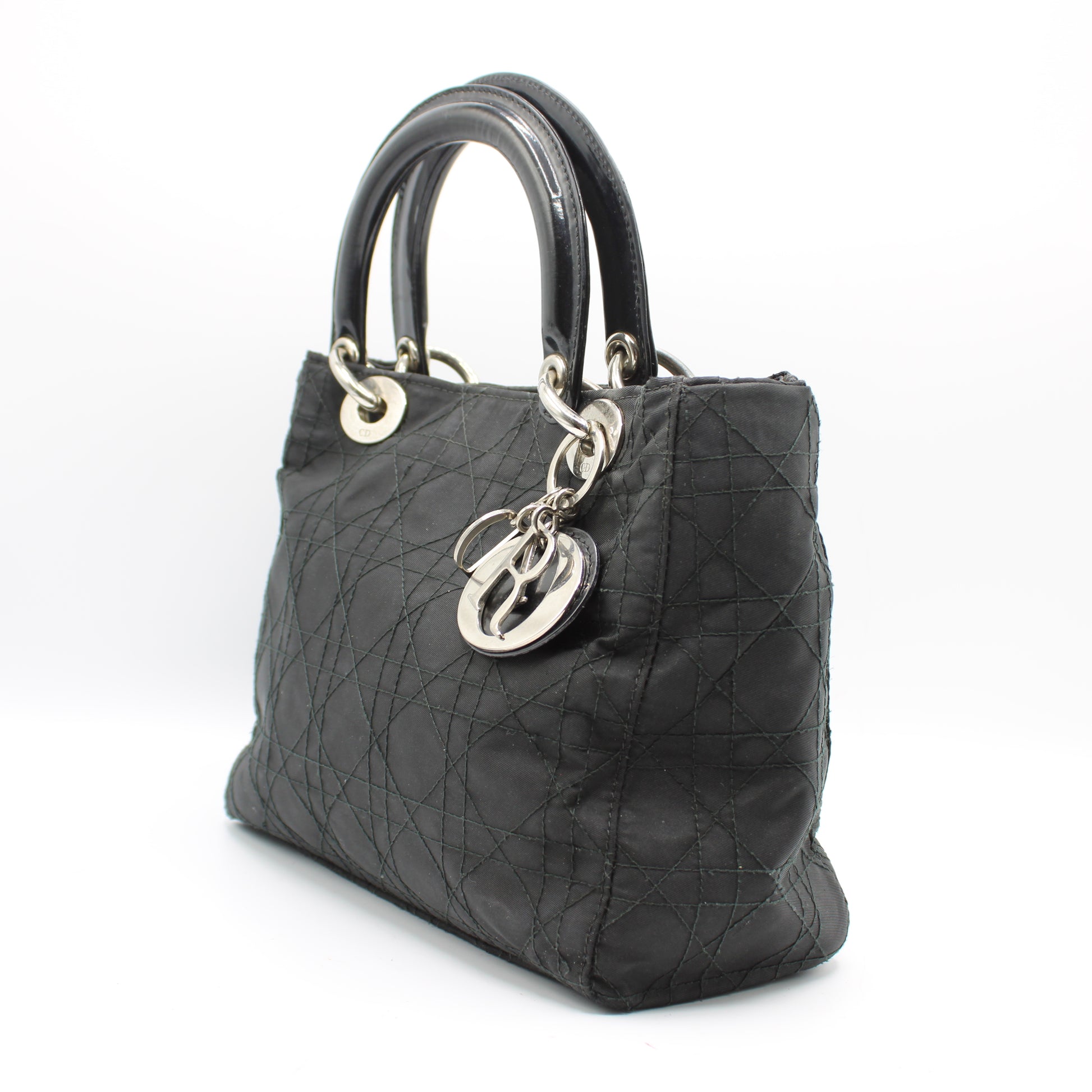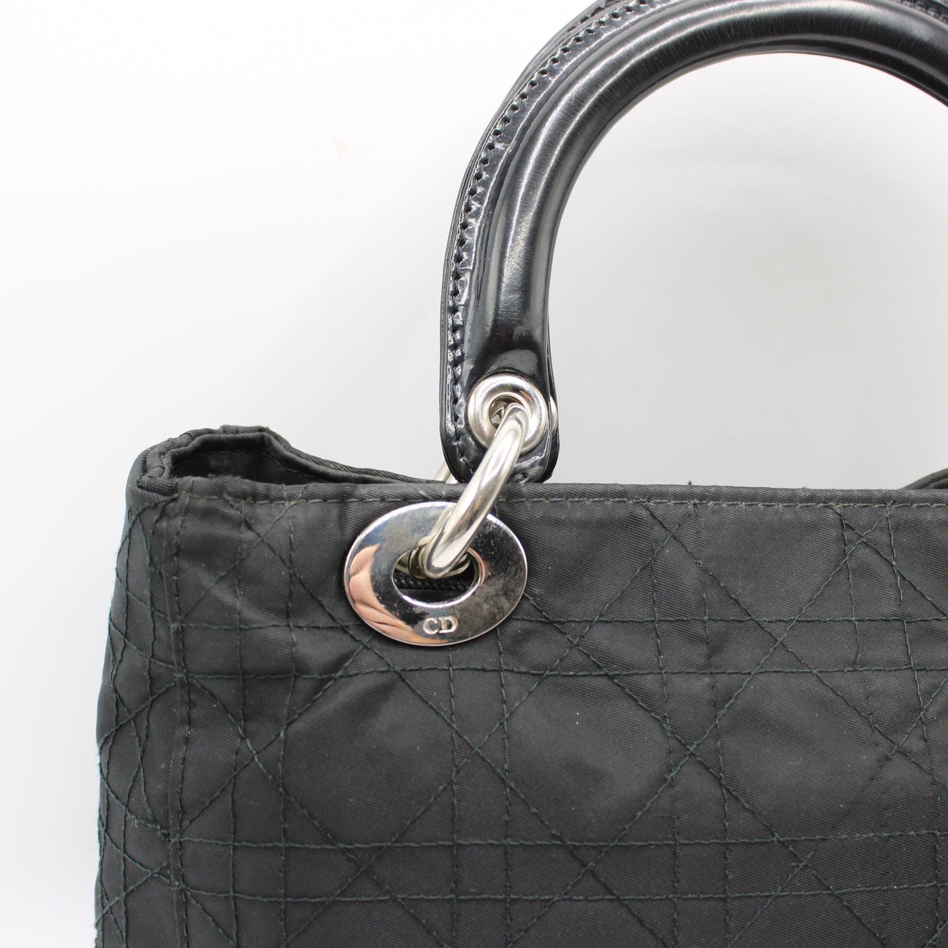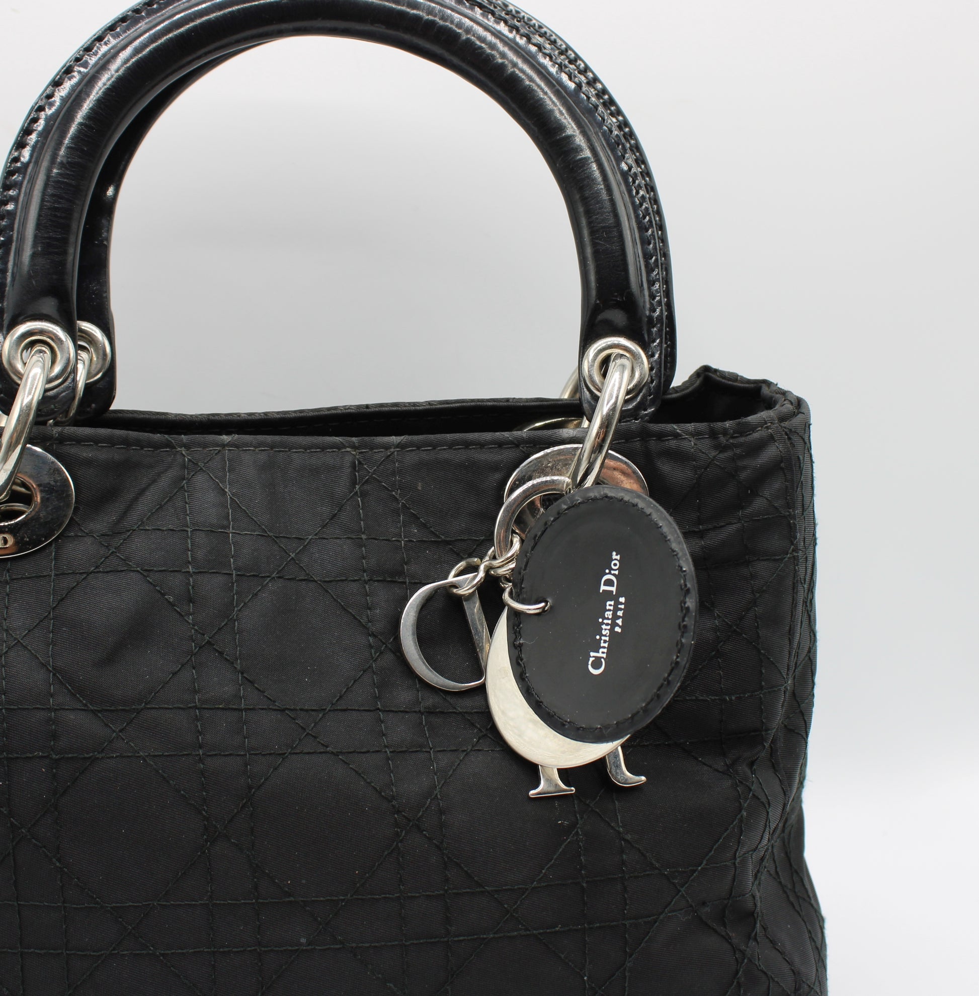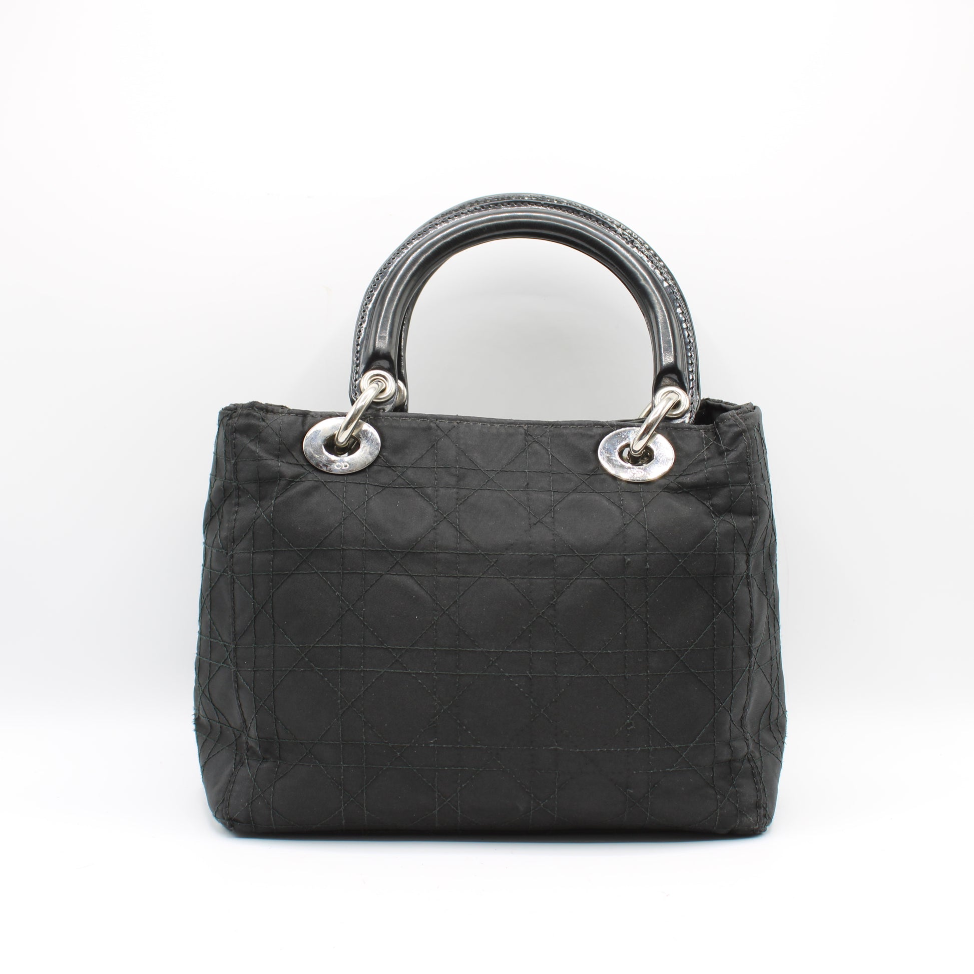 Christian Dior Black Canvas Cannage Lady Dior Handbag