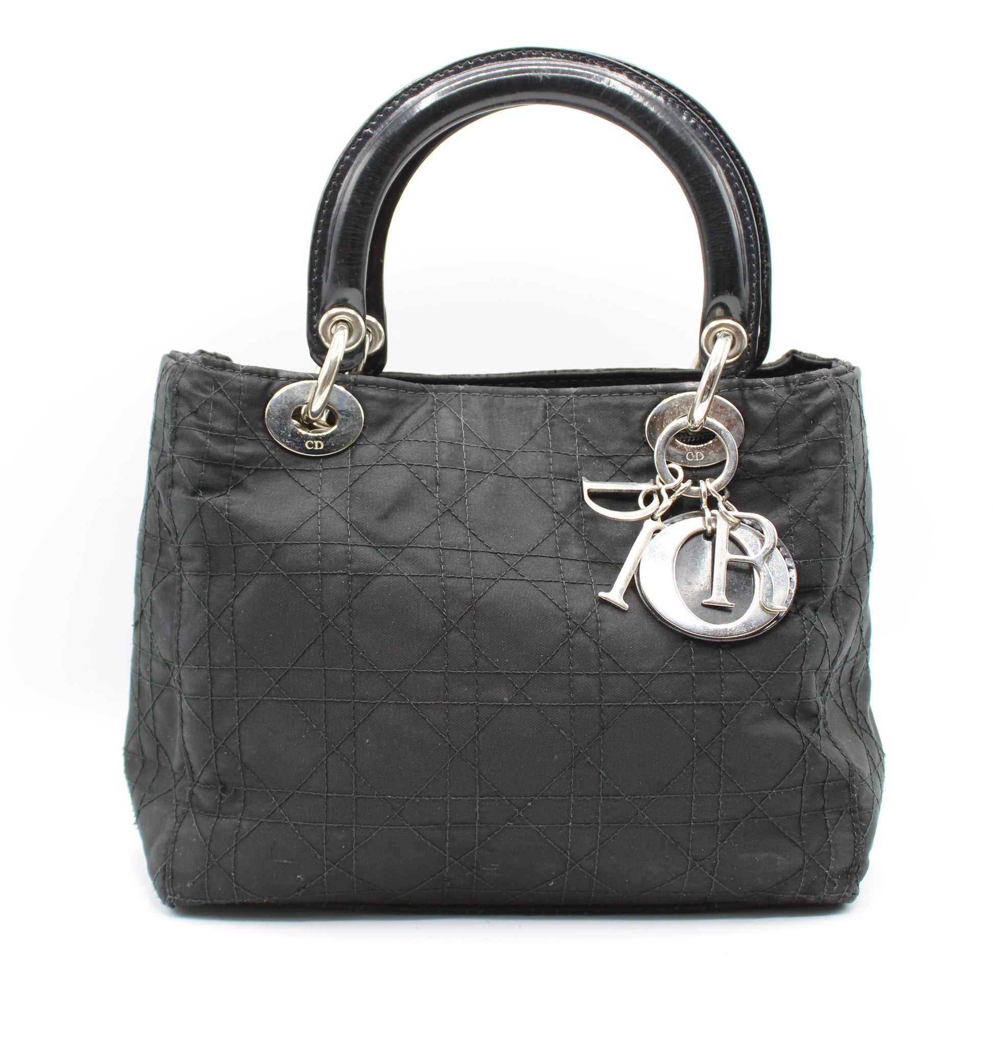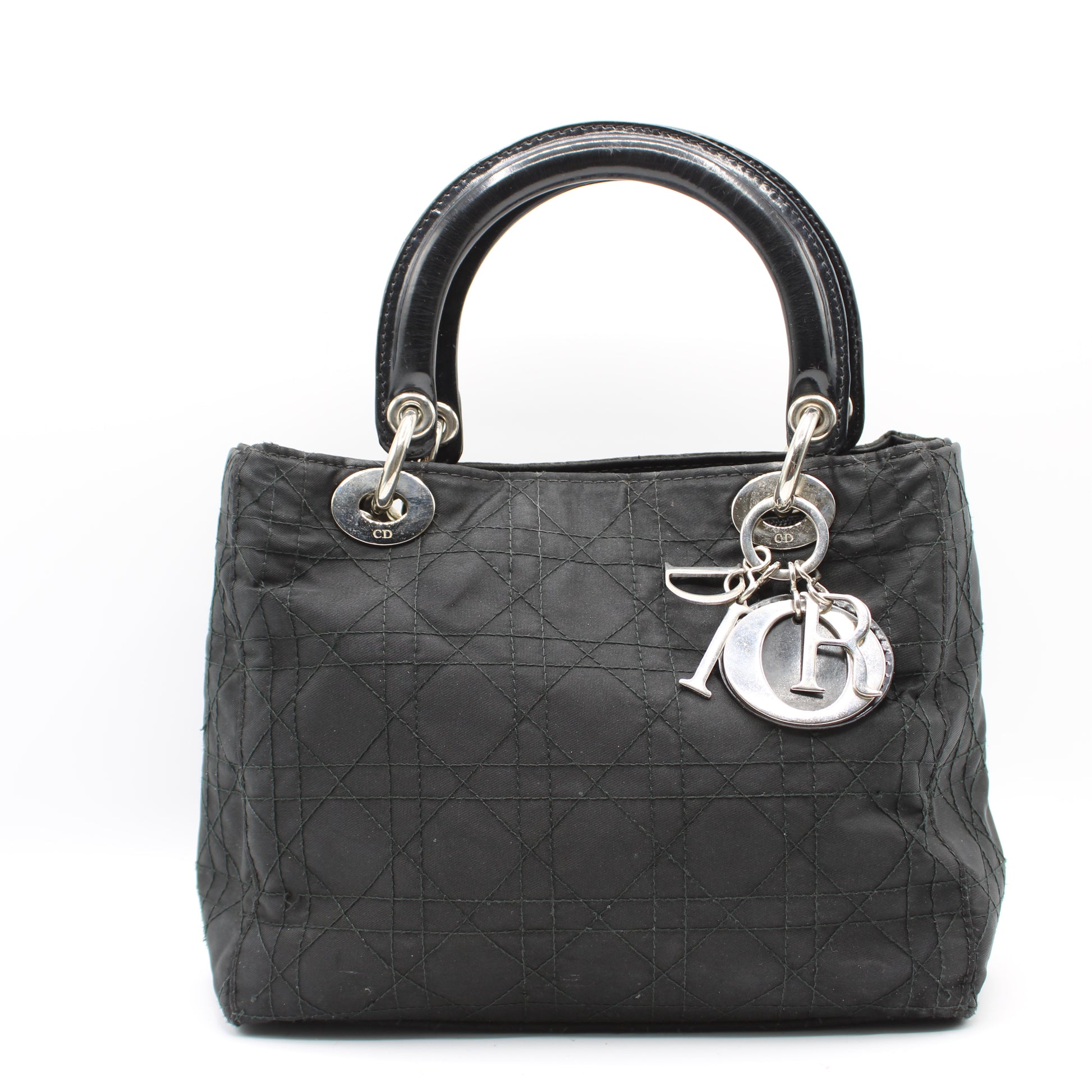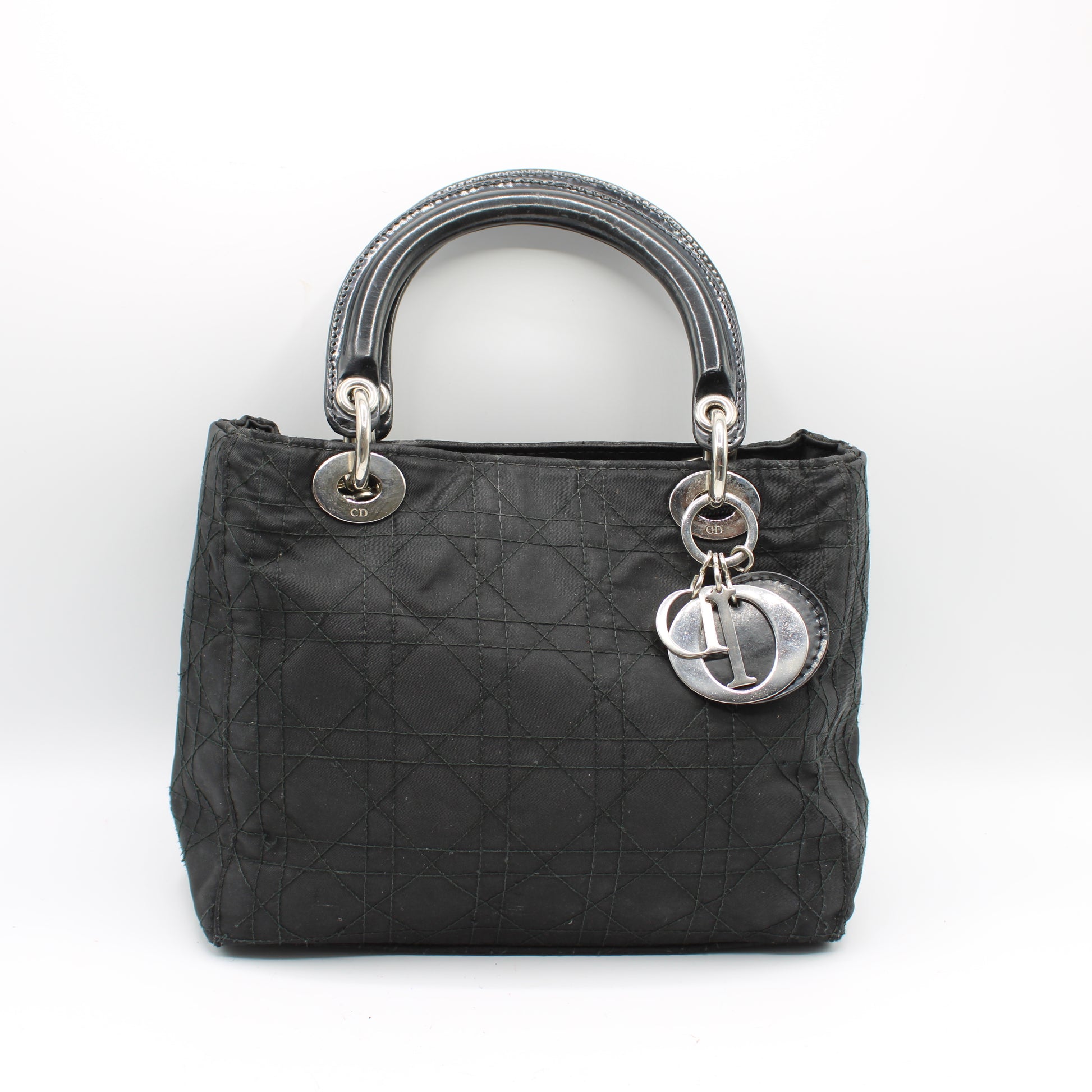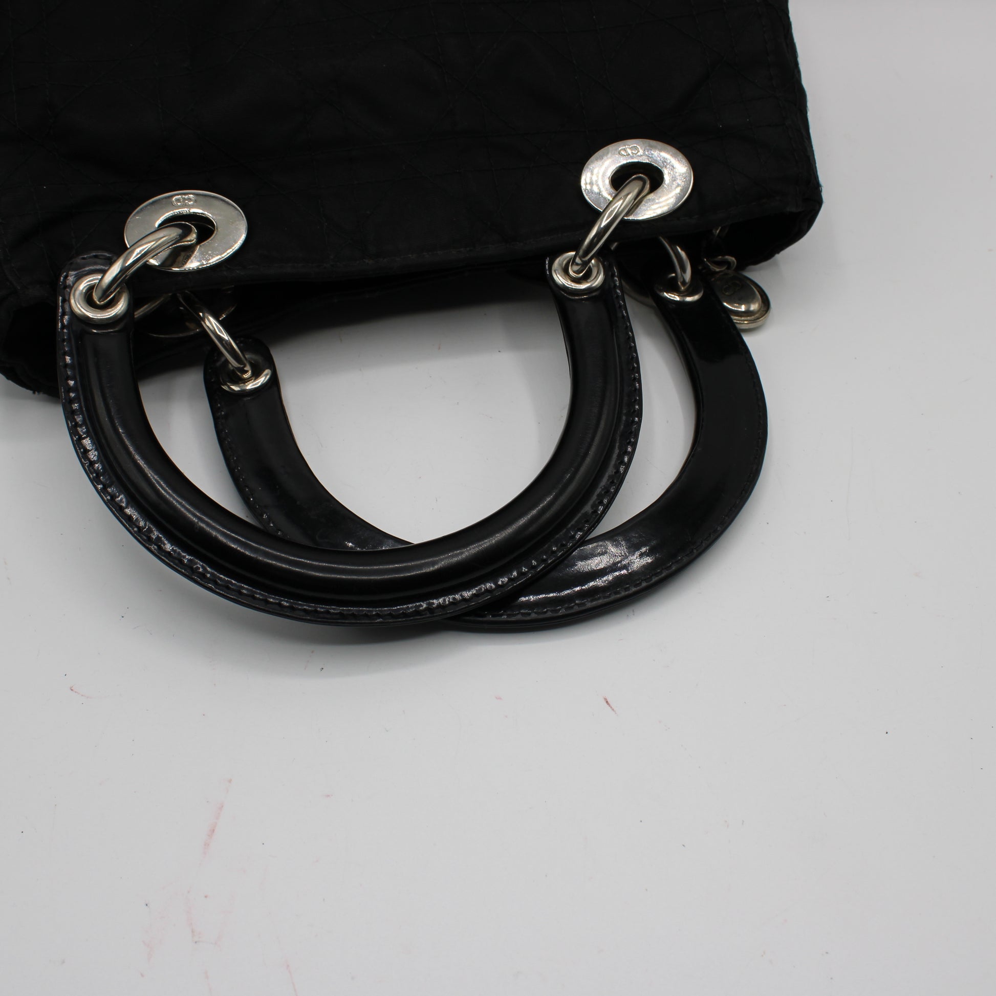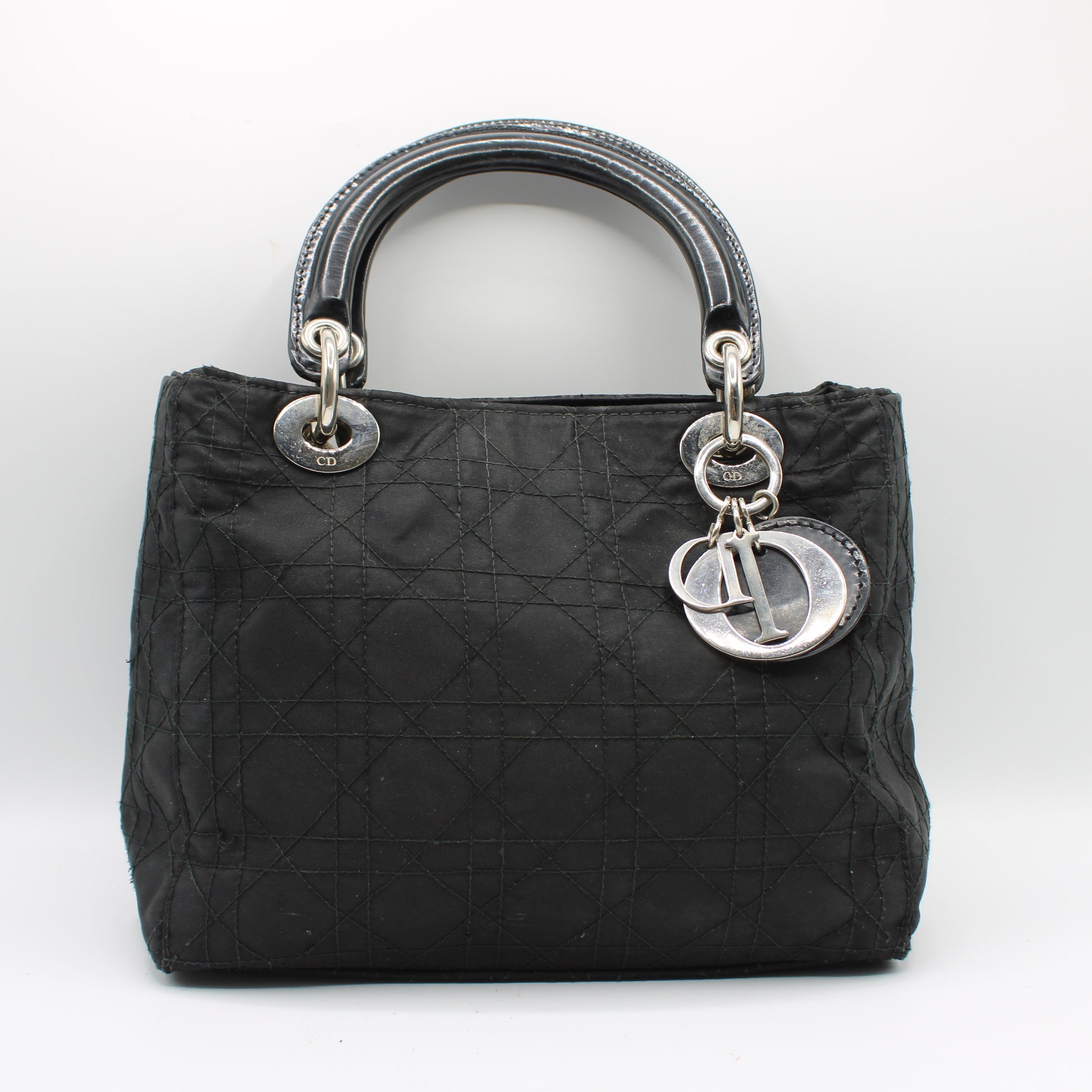 Christian Dior Black Canvas Cannage Lady Dior Handbag