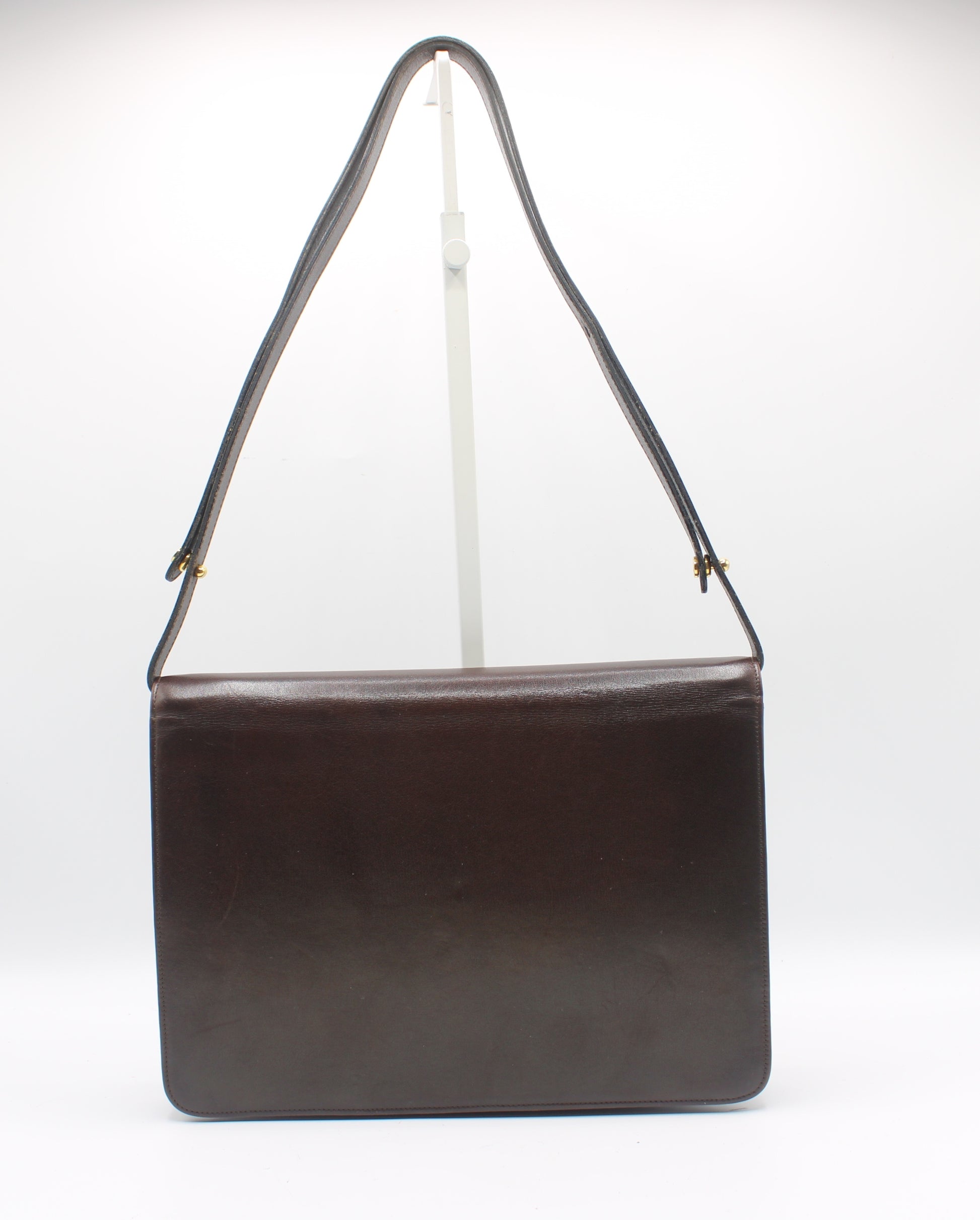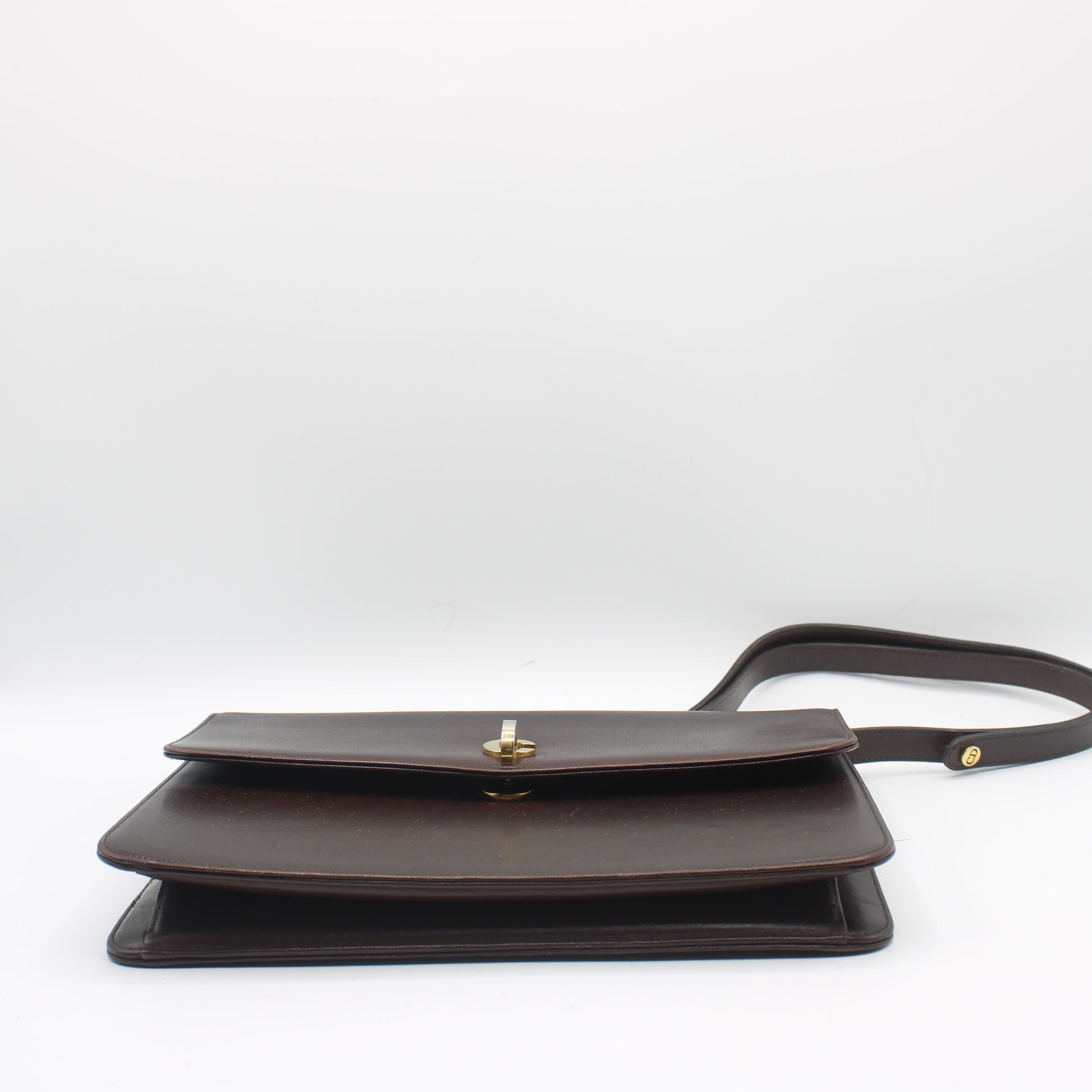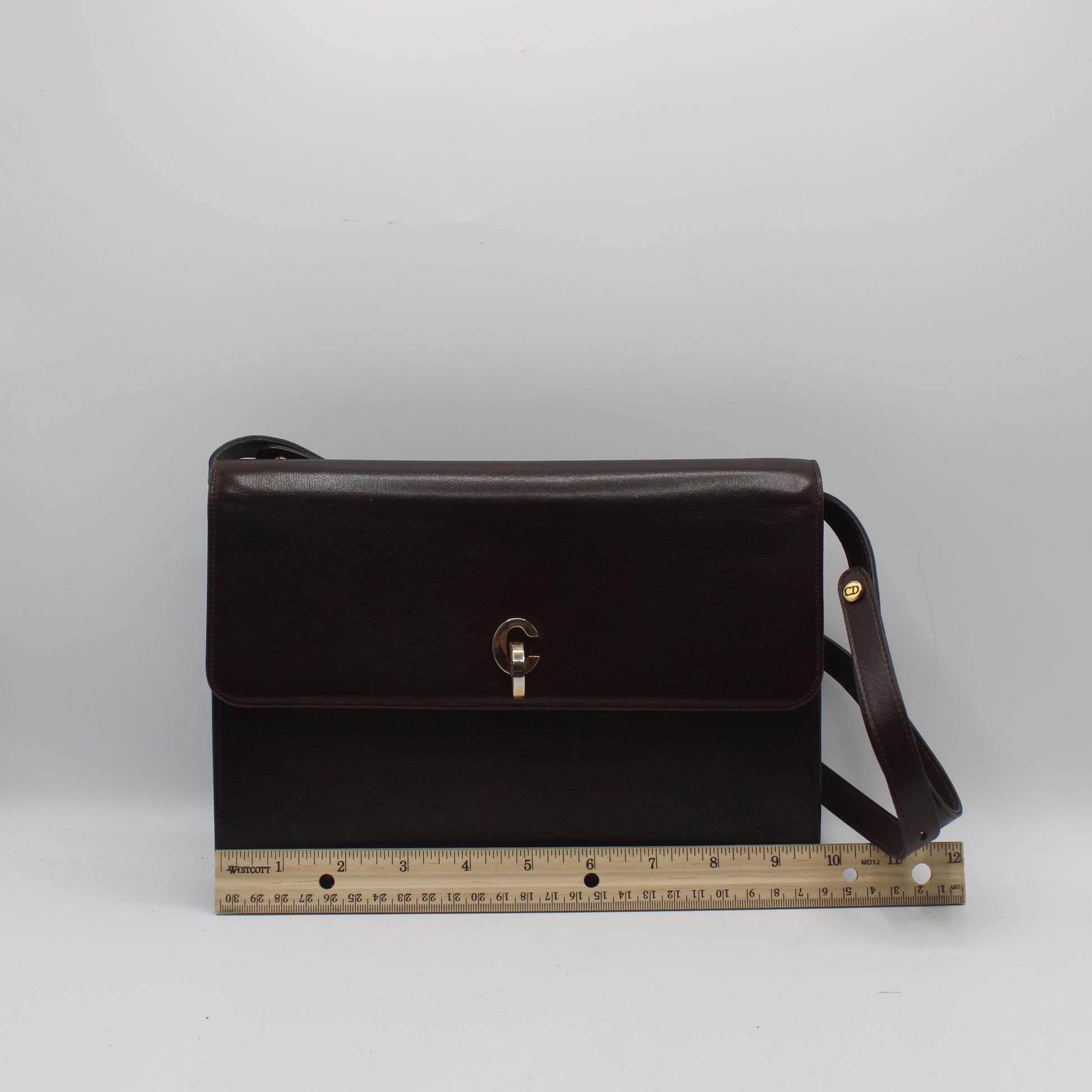 Christian Dior Brown Leather Flap Shoulder Bag With Gold Clasp Closure
