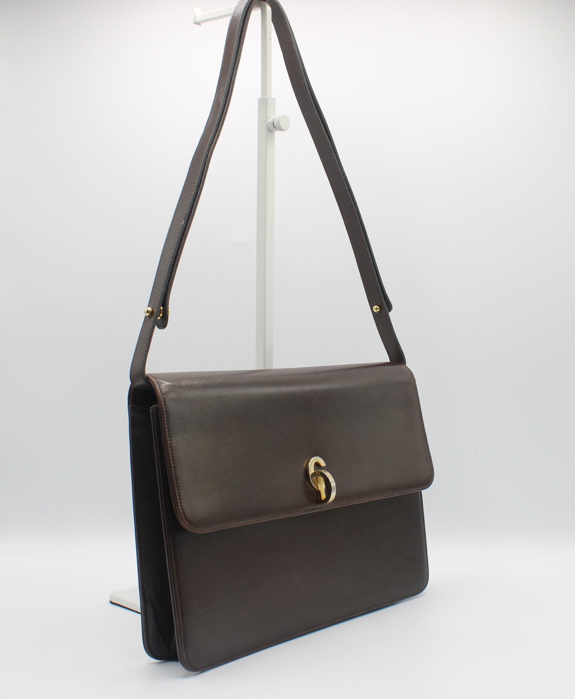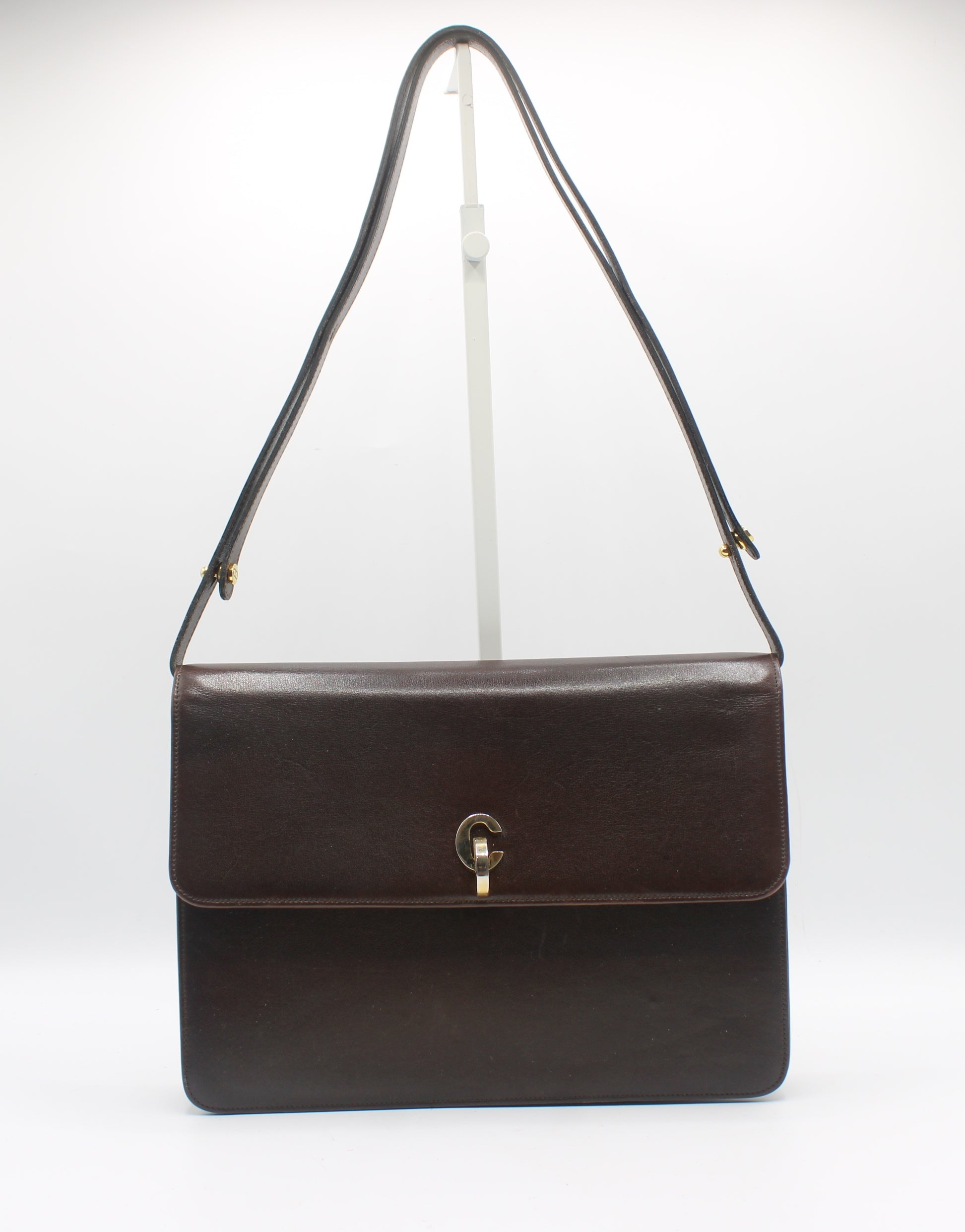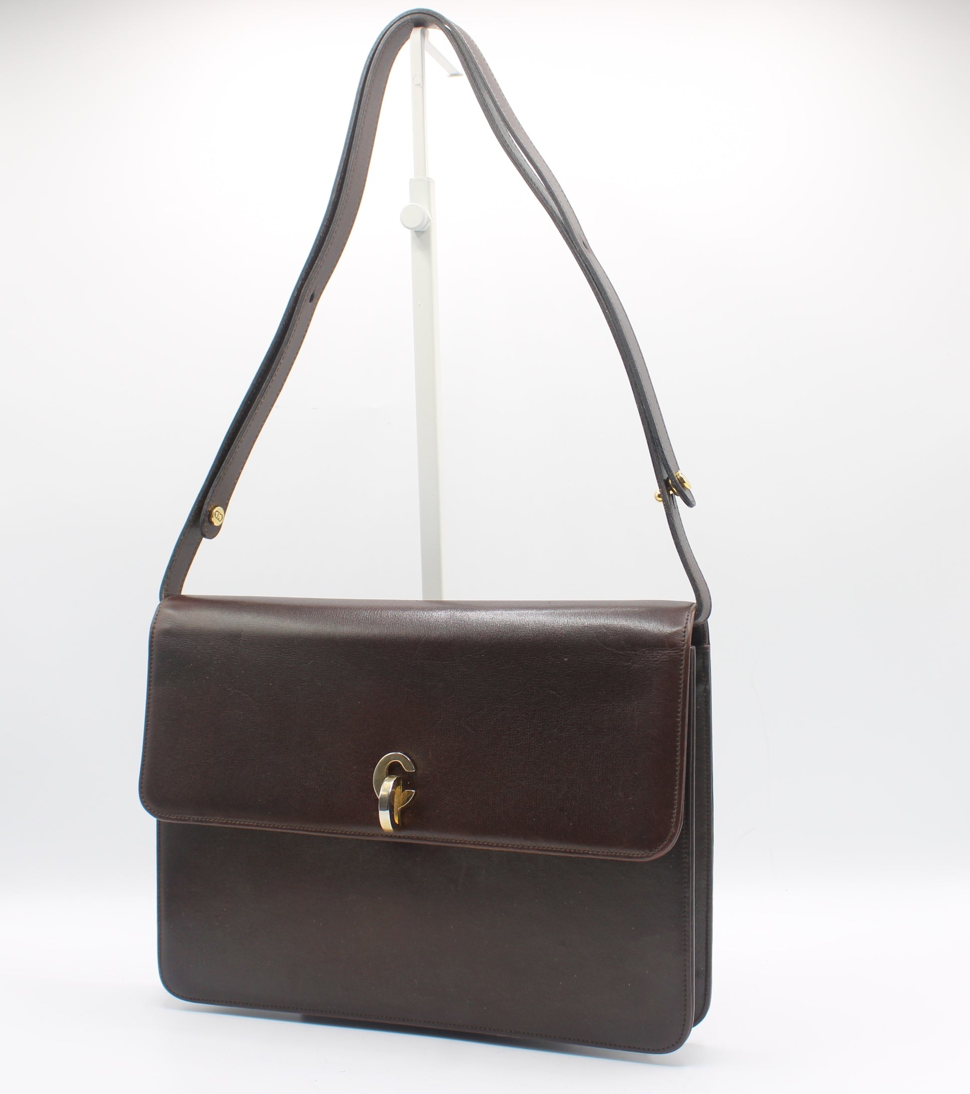 Christian Dior Brown Leather Flap Shoulder Bag With Gold Clasp Closure