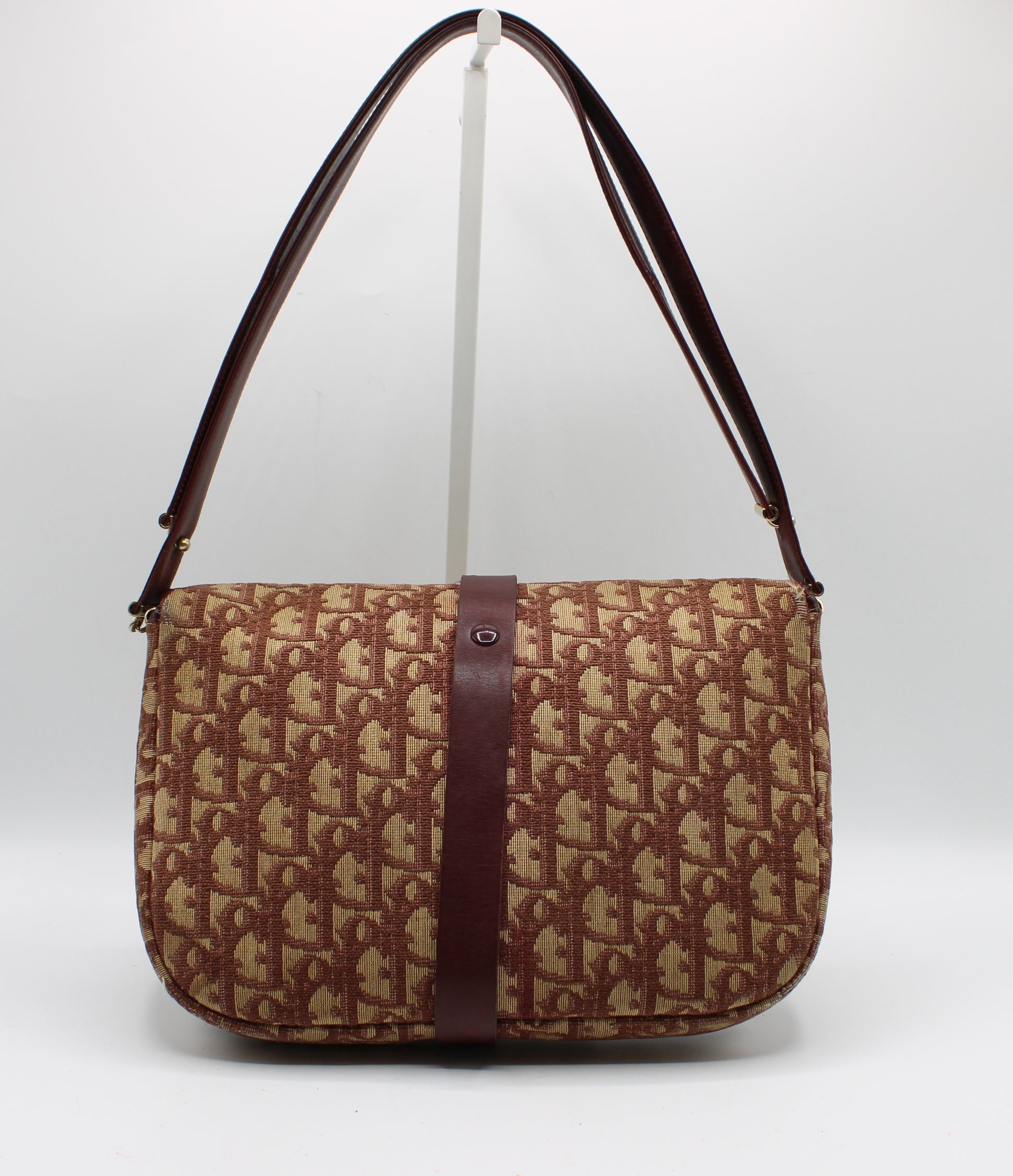 Christian Dior Burgundy Trotter Canvas Leather Shoulder Bag