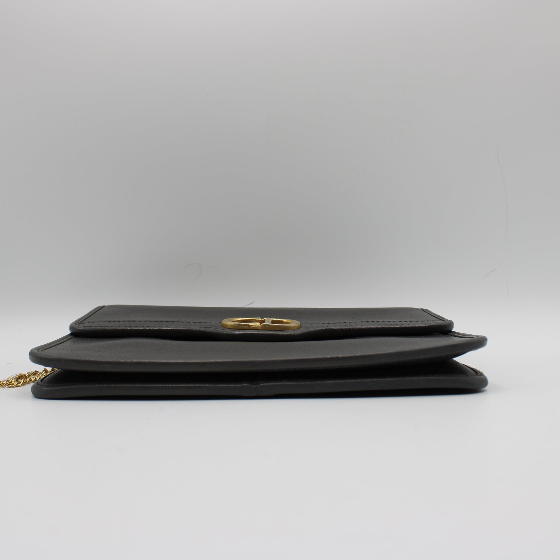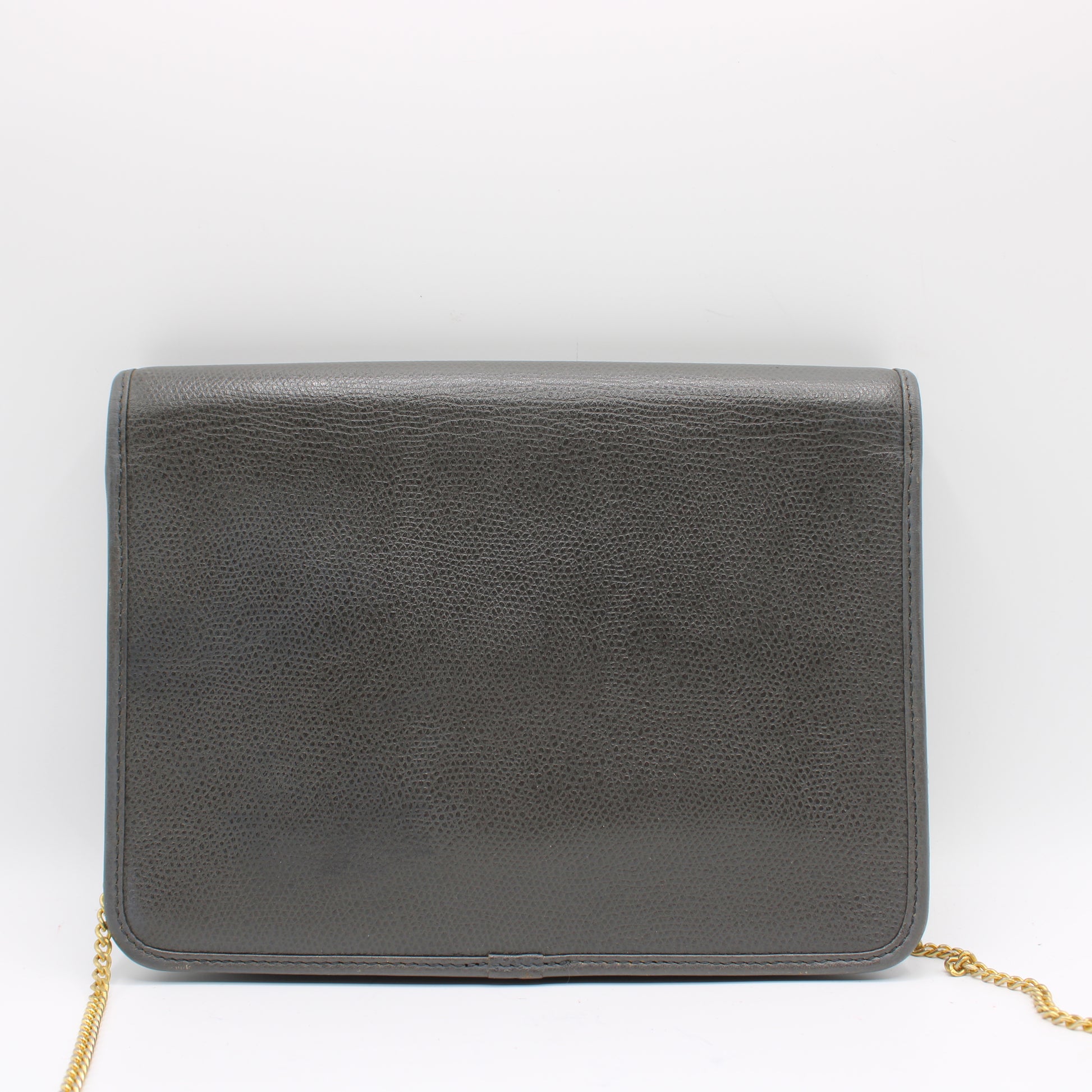 Stefany Bags Shoes and More presents this stunning authentic Christian Dior gray textured leather flap bag, designed with a timeless aesthetic and functional versatility. Featuring the iconic gold-tone "CD" logo hardware on the front, this vintage piece showcases classic Dior elegance with a structured silhouette and a pebbled leather finish. The flap opens to reveal a clean and elegant honeycomb-patterned interior stamped "Christian Dior Made in France", echoing the maison's luxurious craftsmanship. The chain strap can be worn long as a crossbody or doubled up for a chic shoulder carry, offering flexible styling options for any occasion.