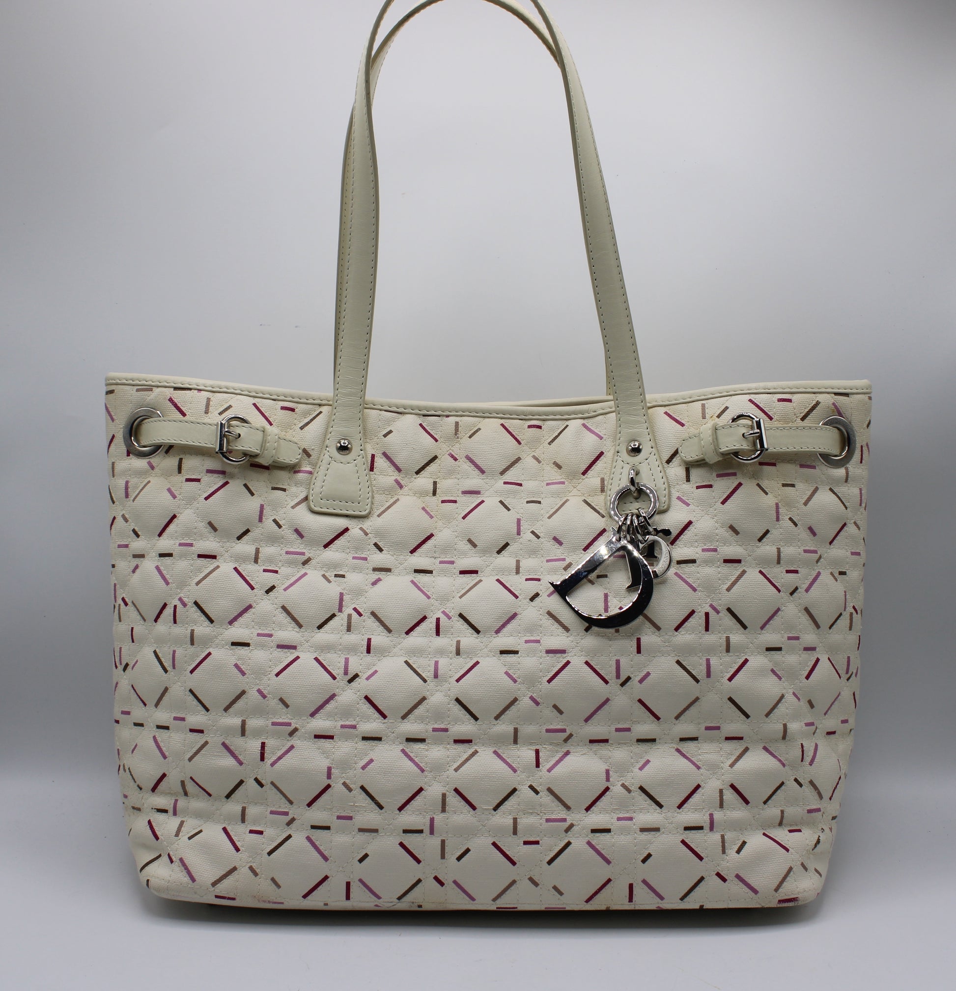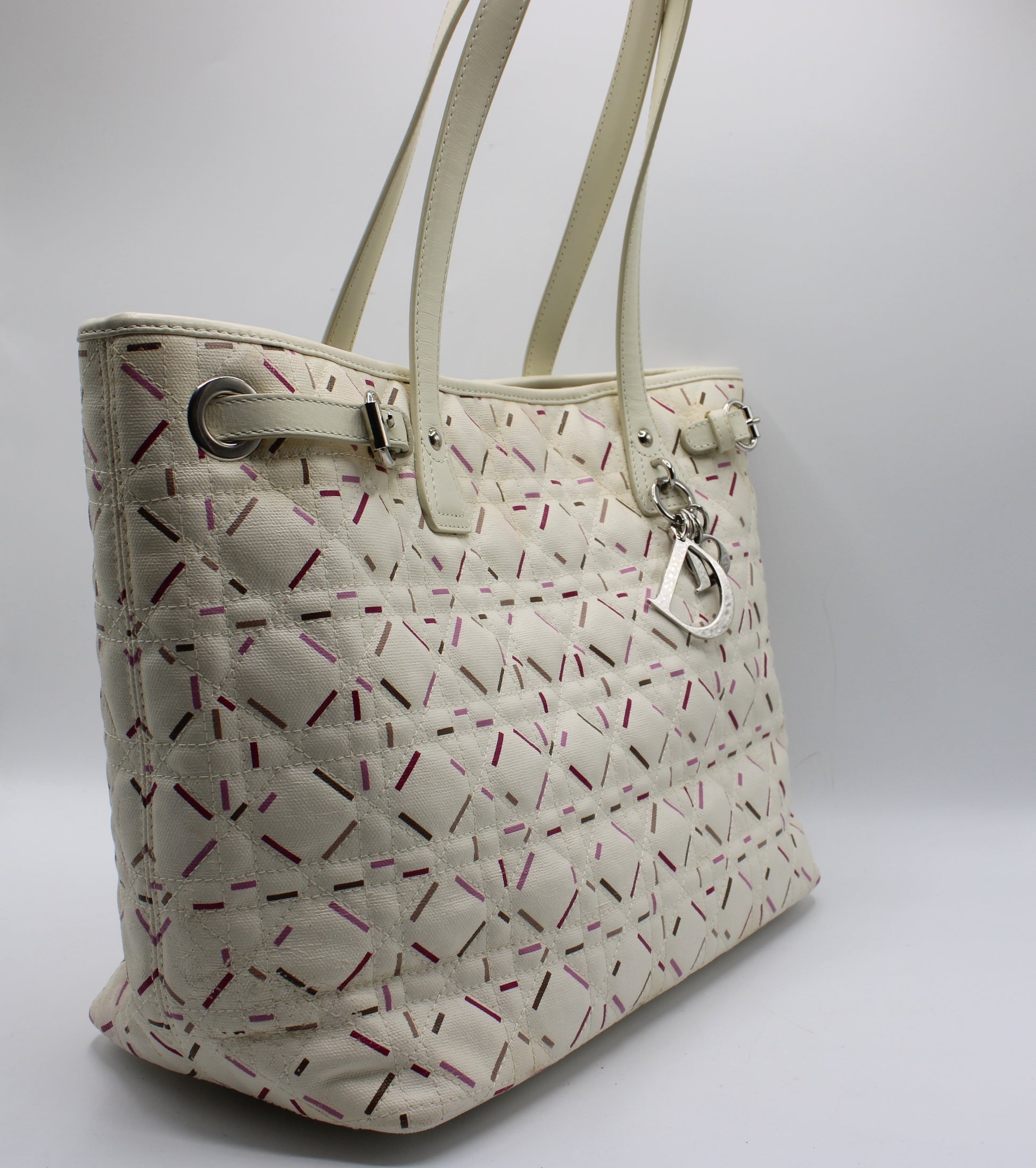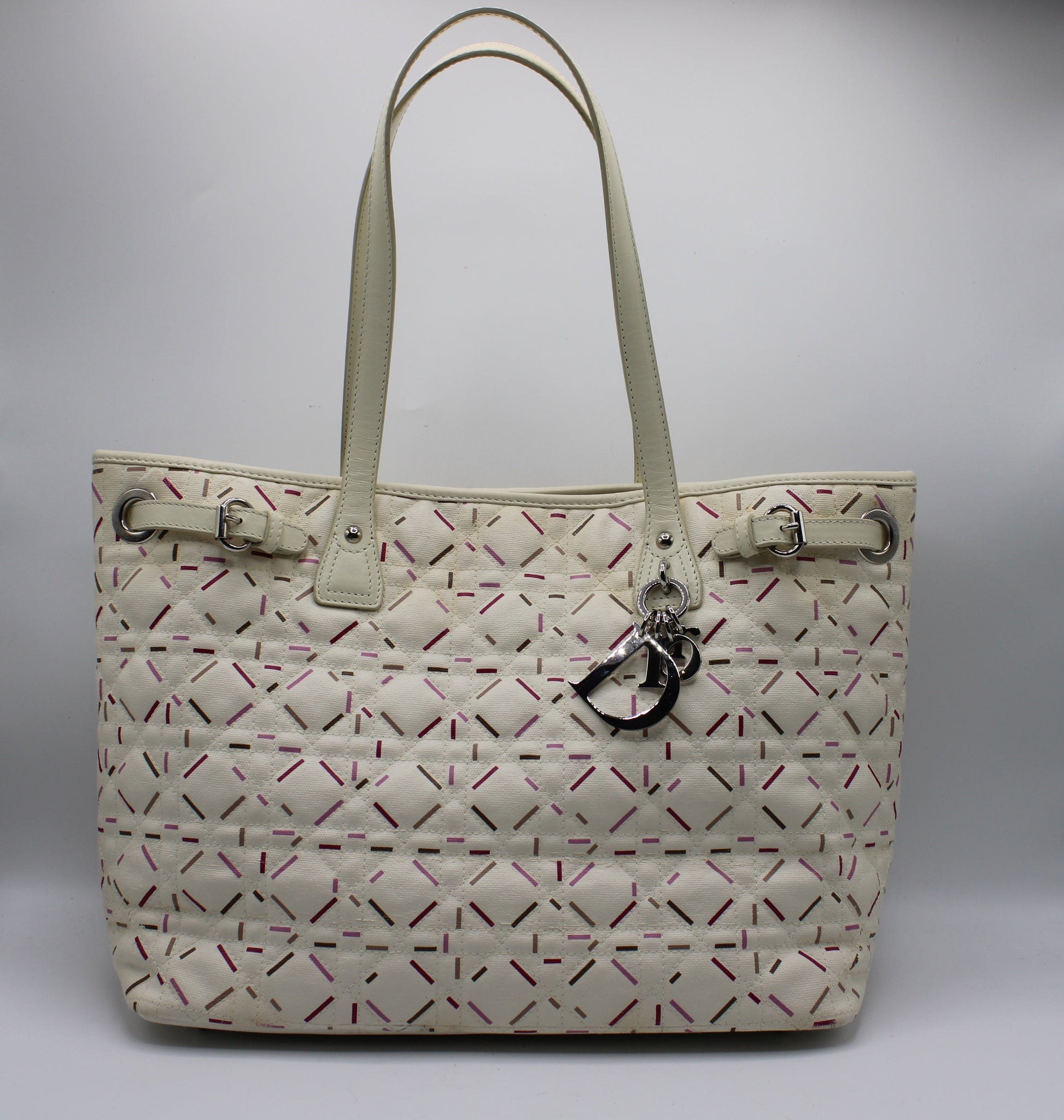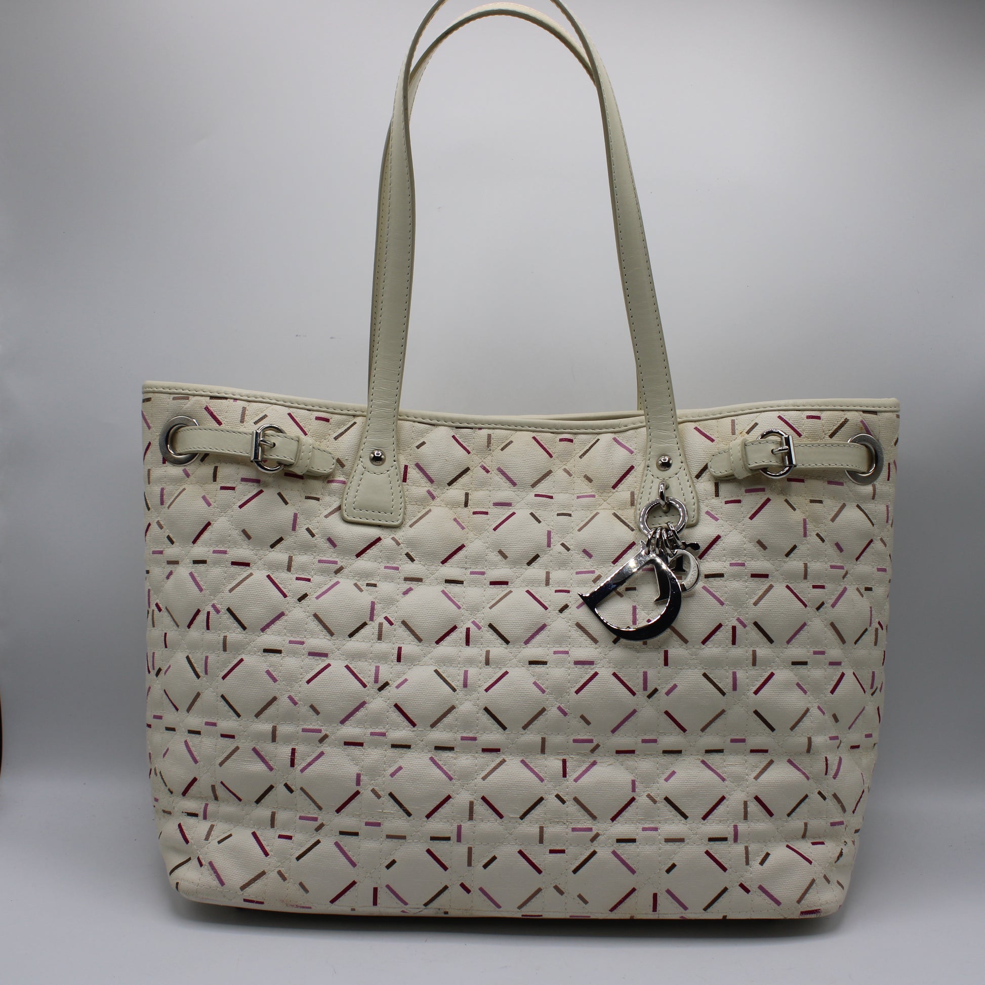 Christian Dior Ivory Cannage Canvas Multicolor Tote Bag