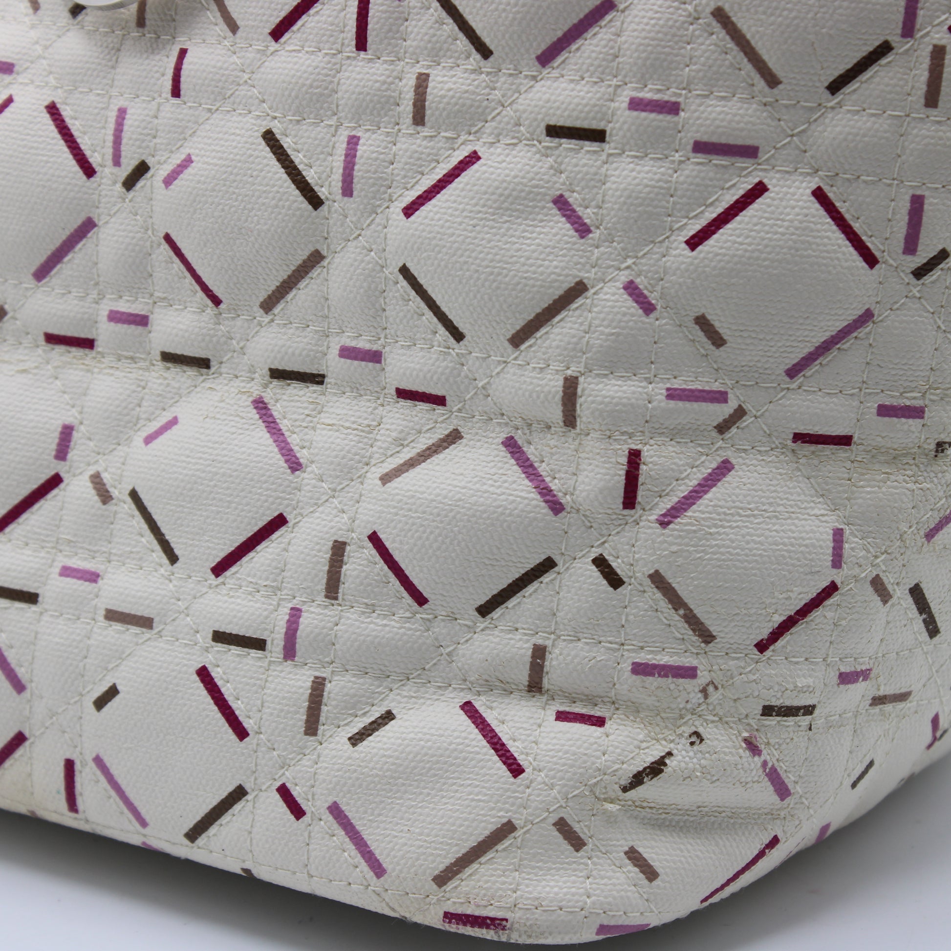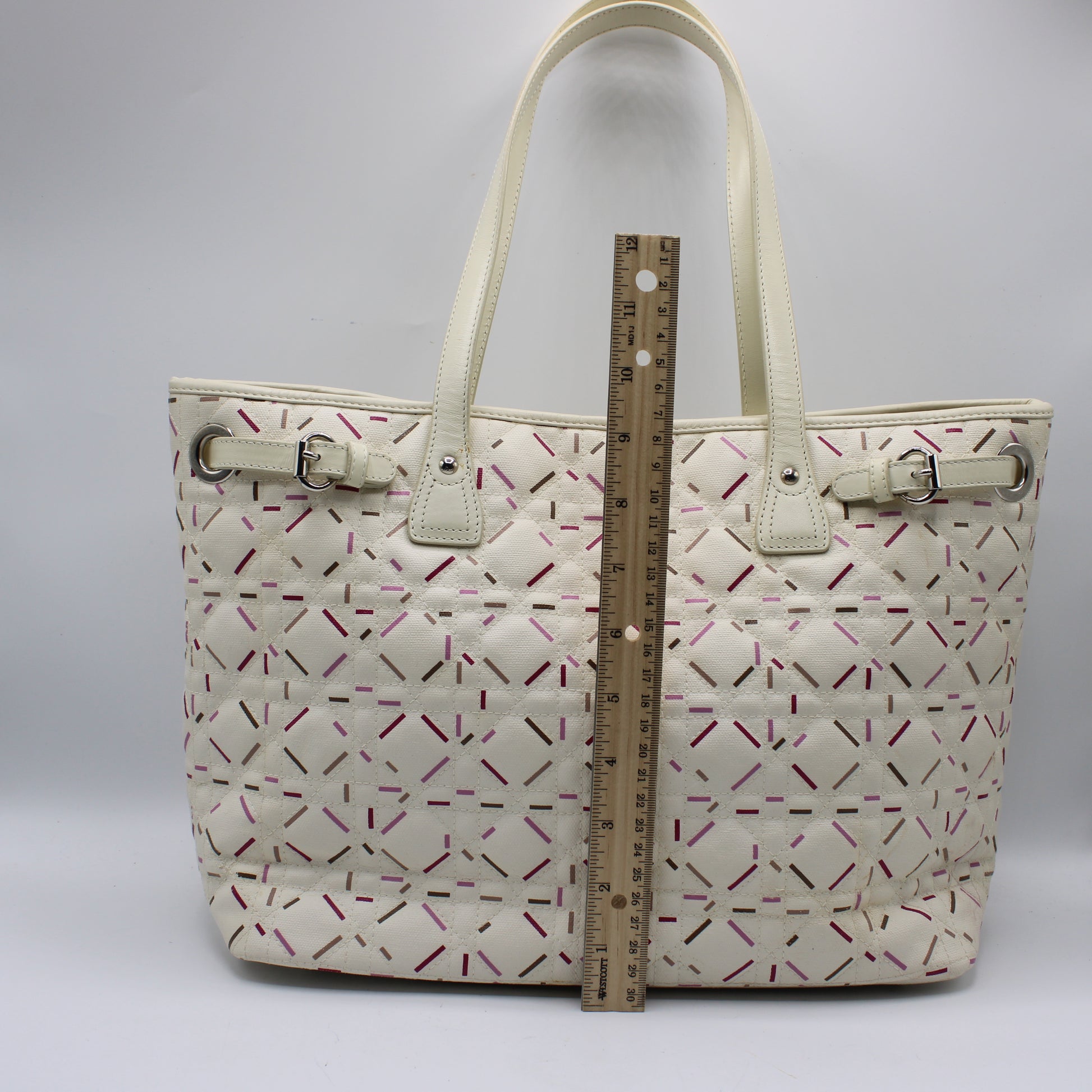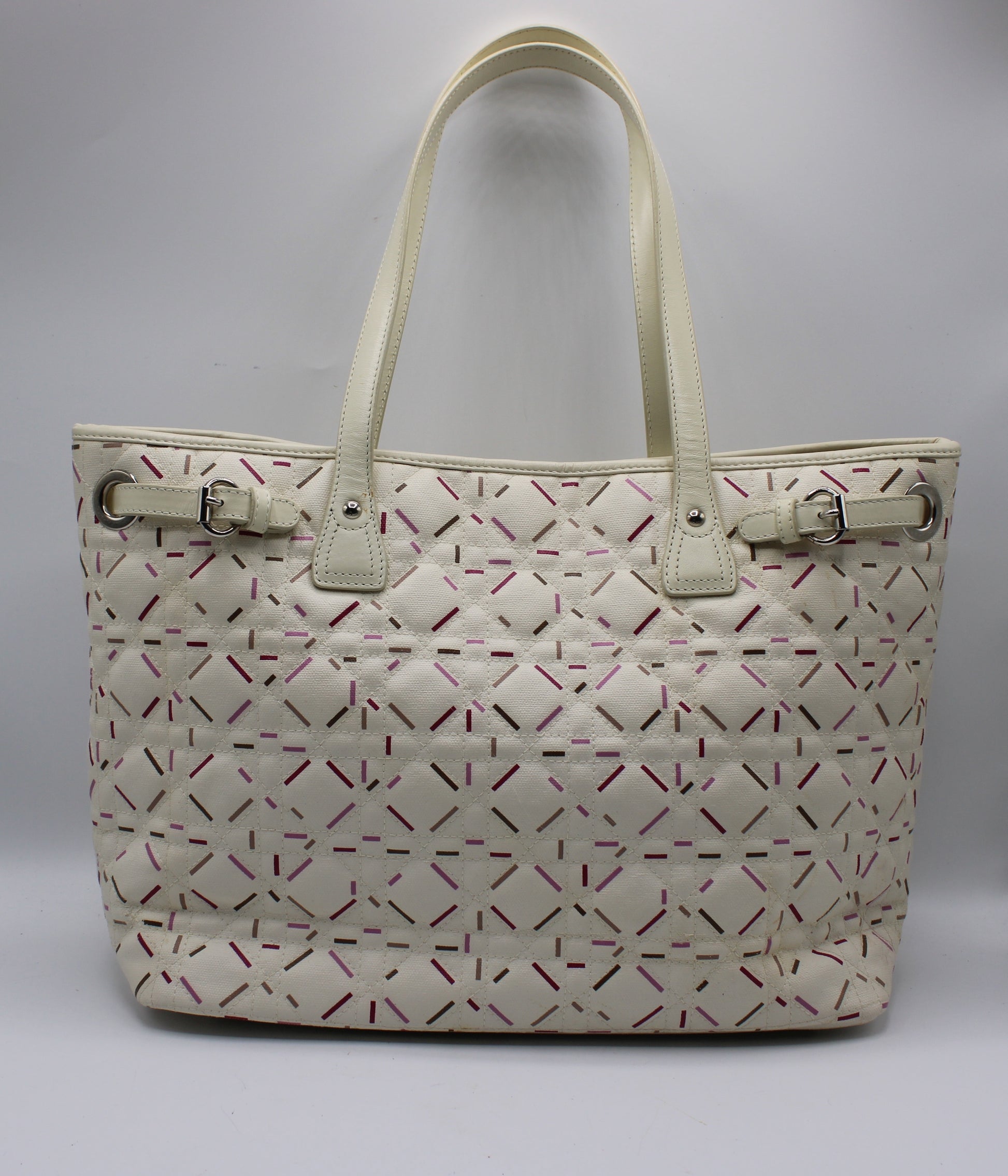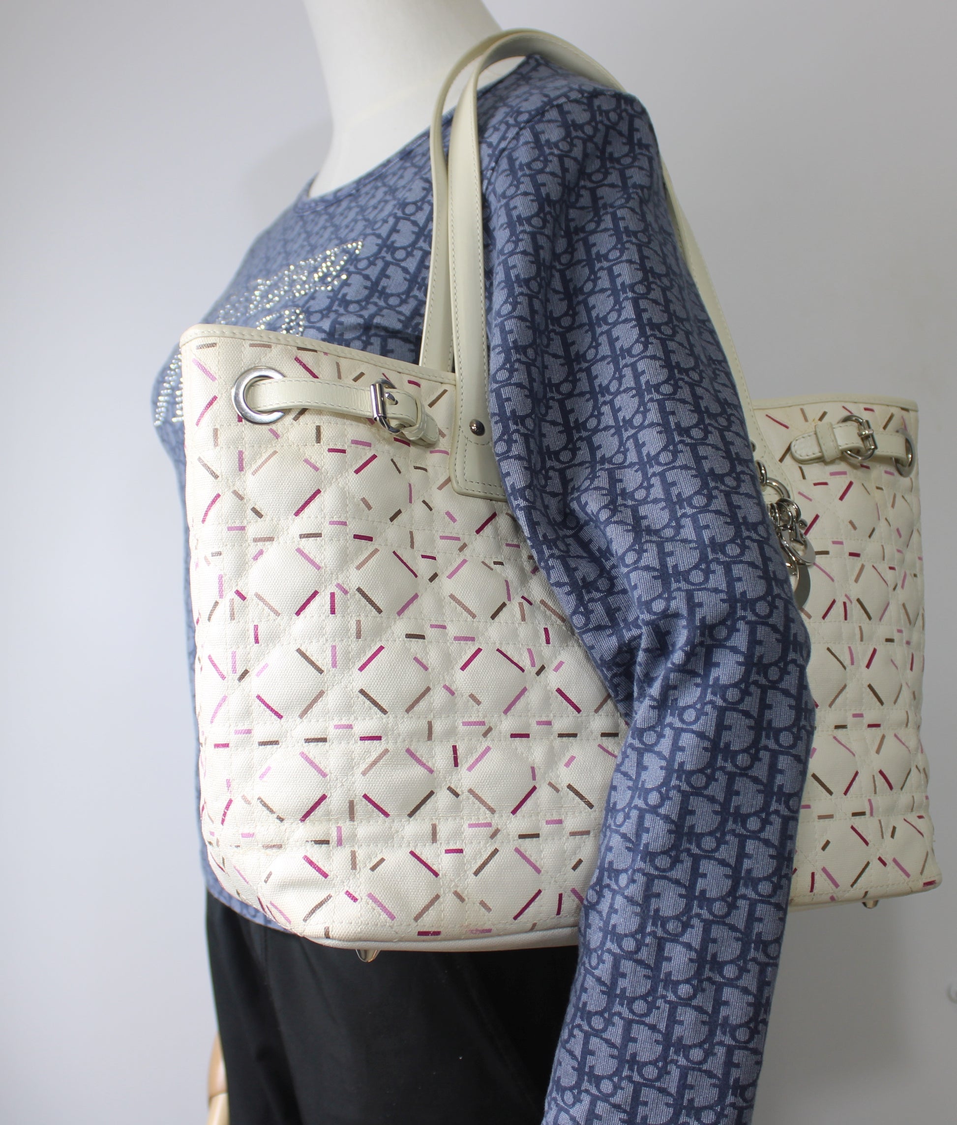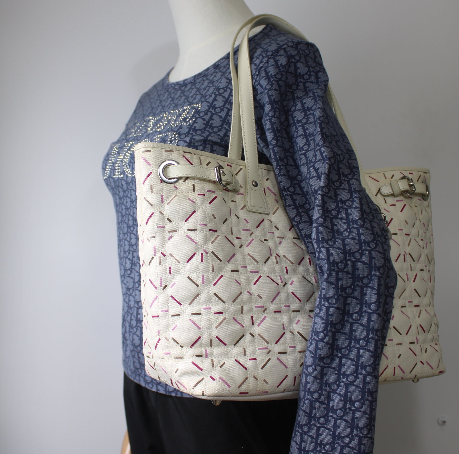 Christian Dior Ivory Cannage Canvas Multicolor Tote Bag