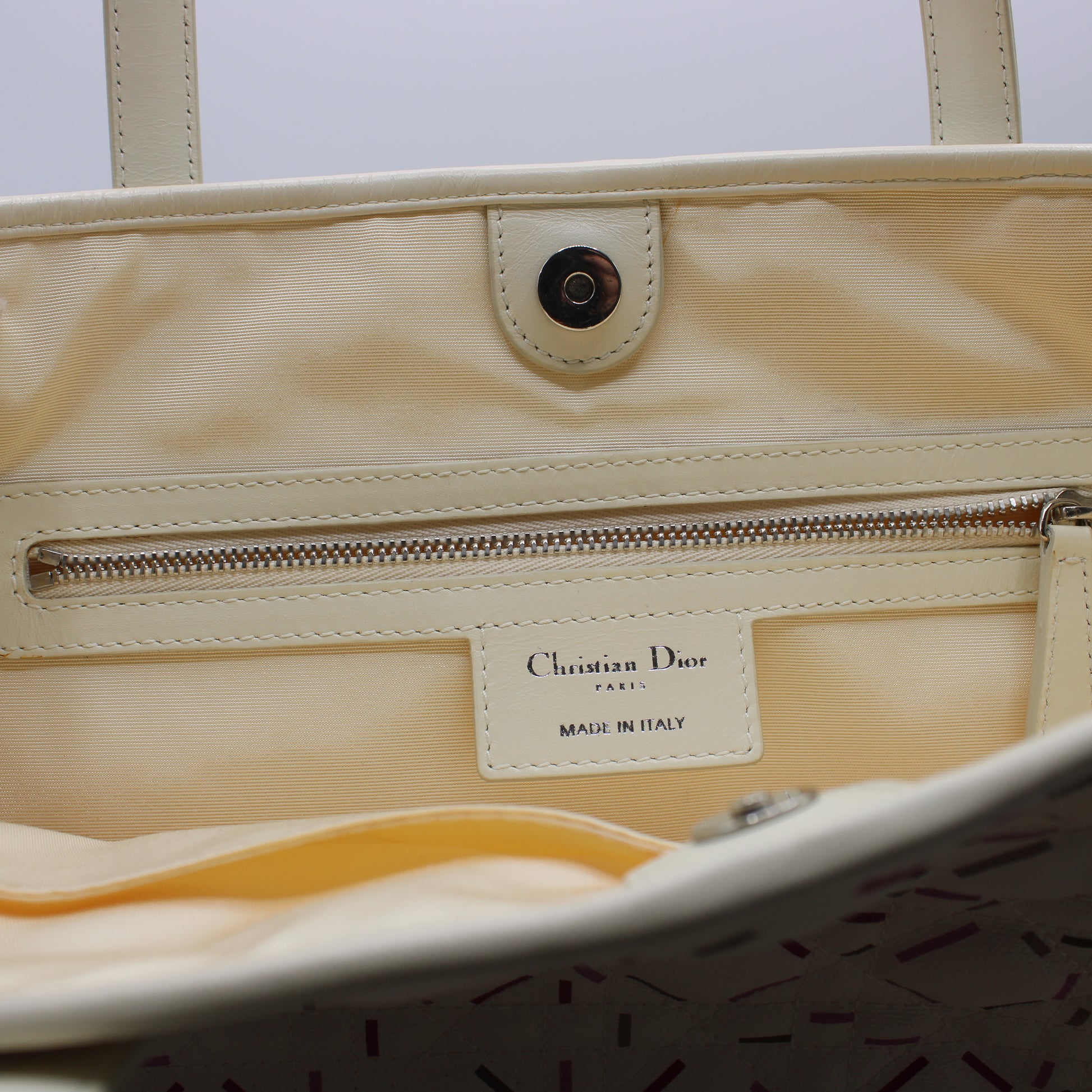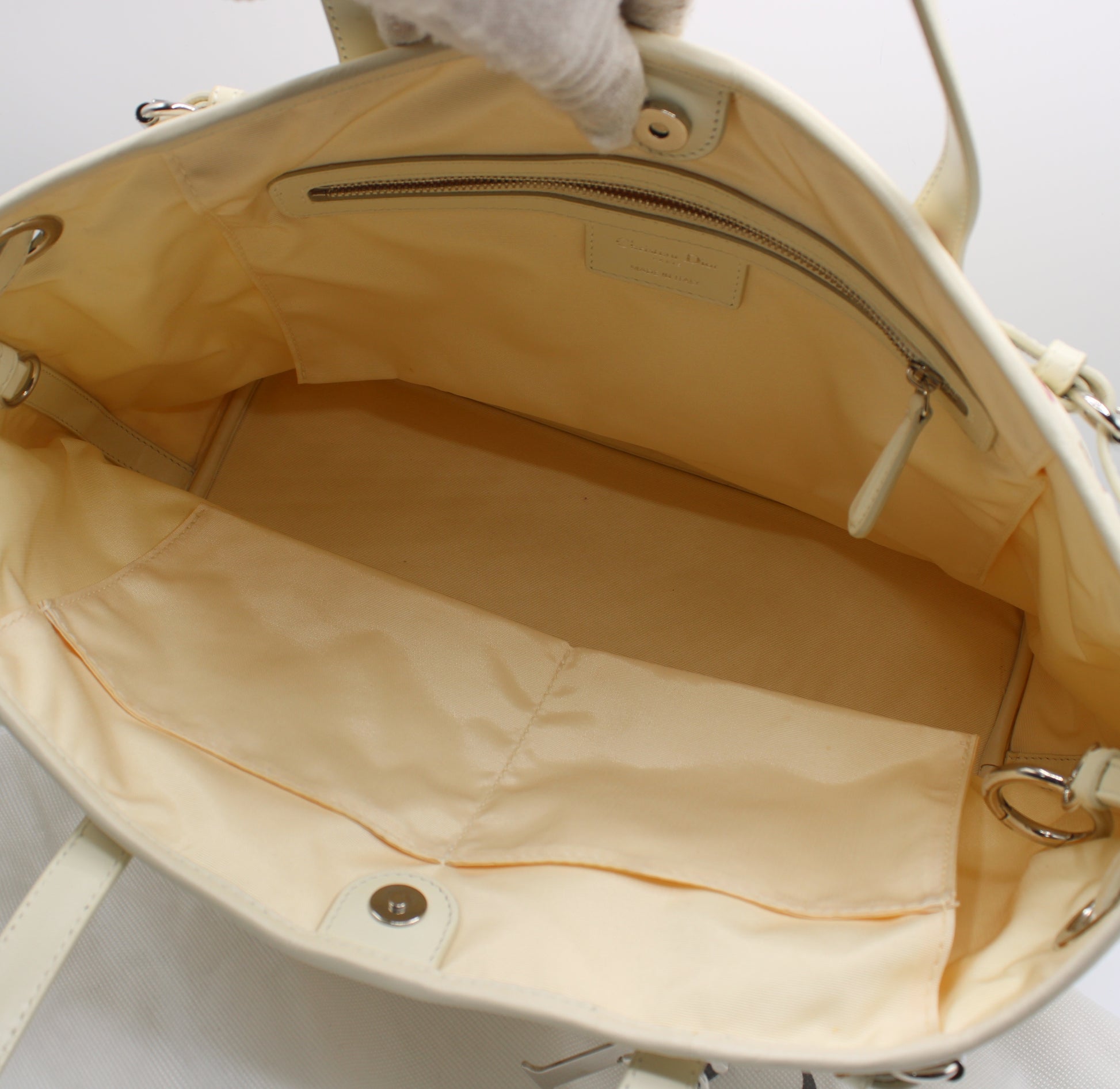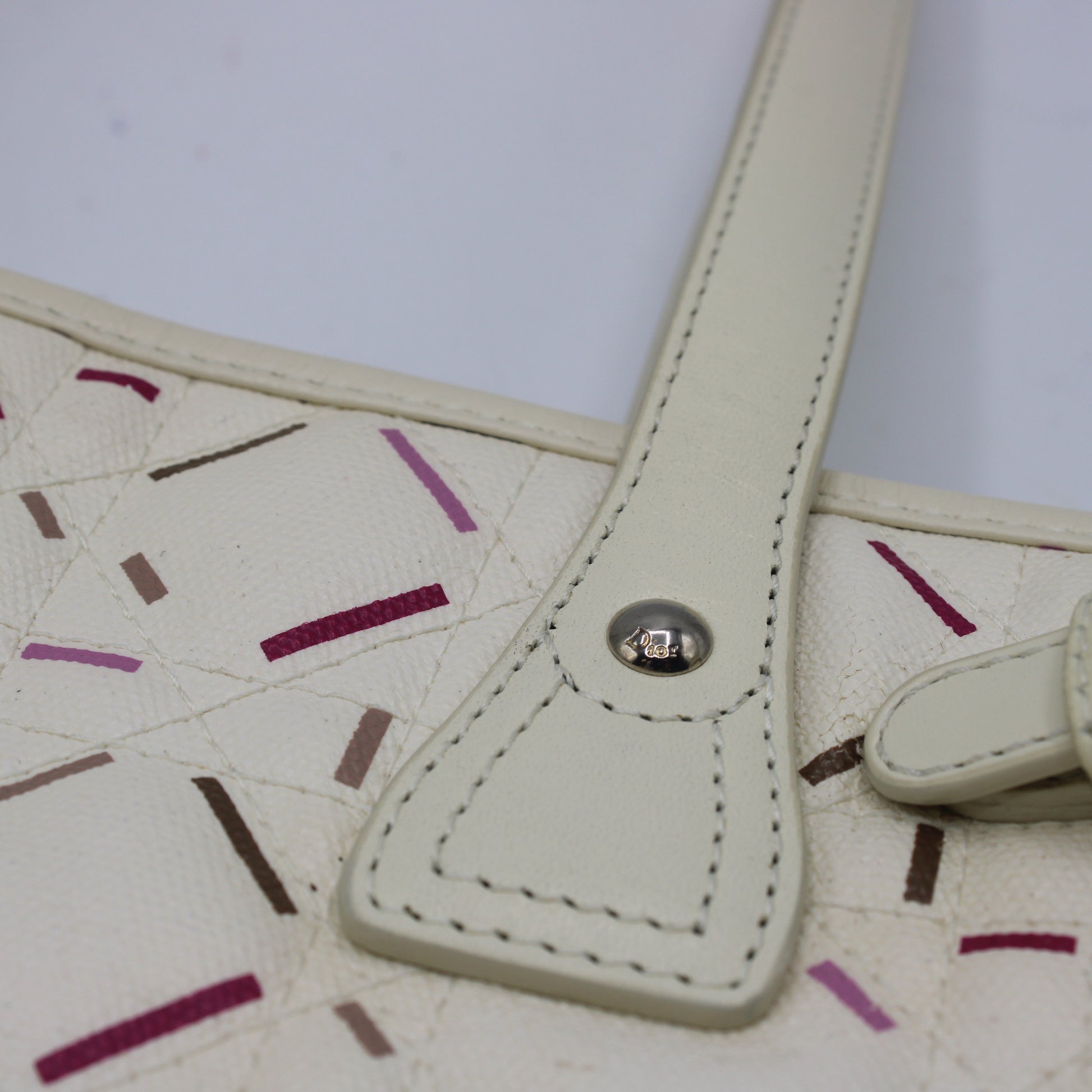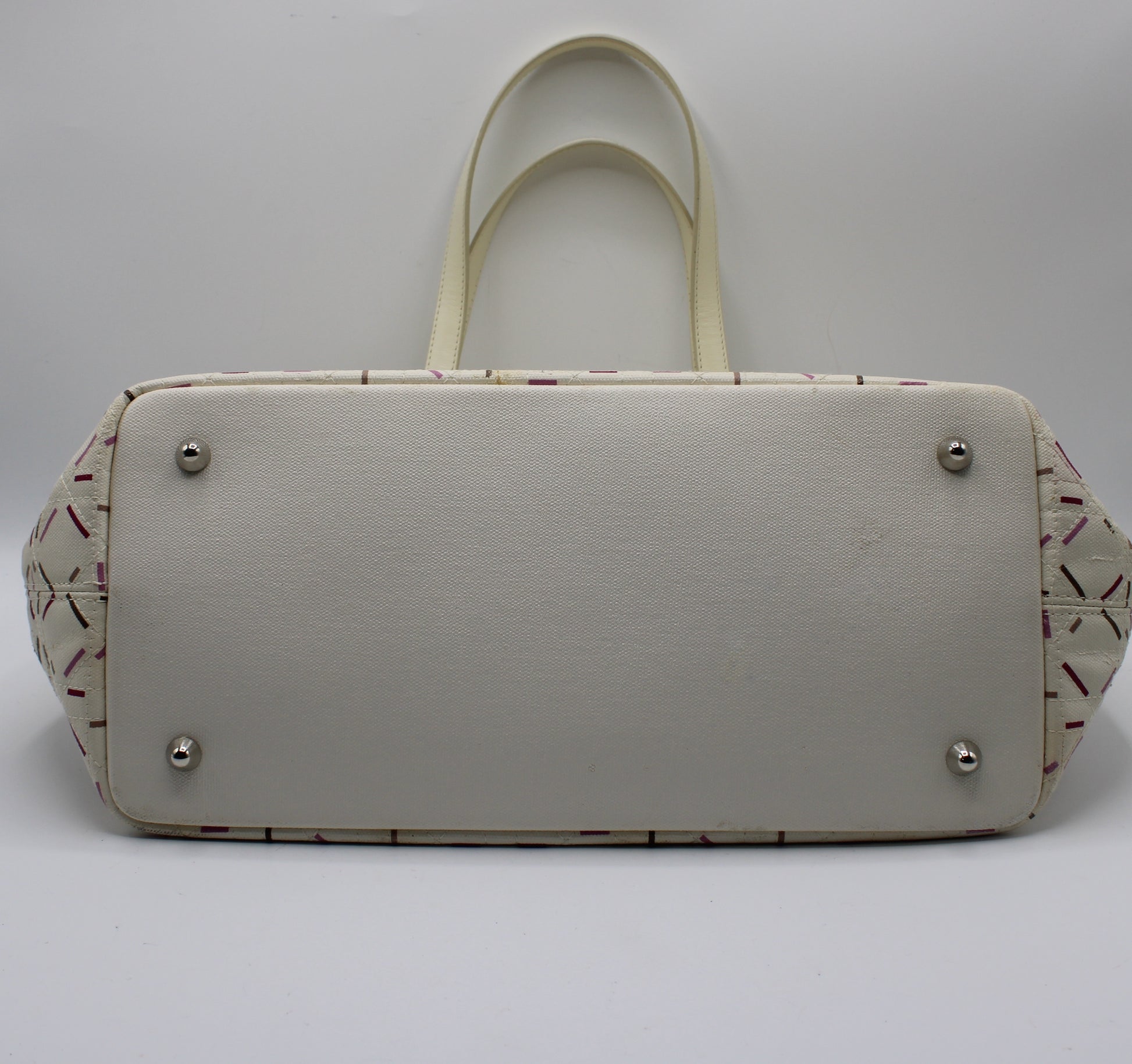 Christian Dior Ivory Cannage Canvas Multicolor Tote Bag