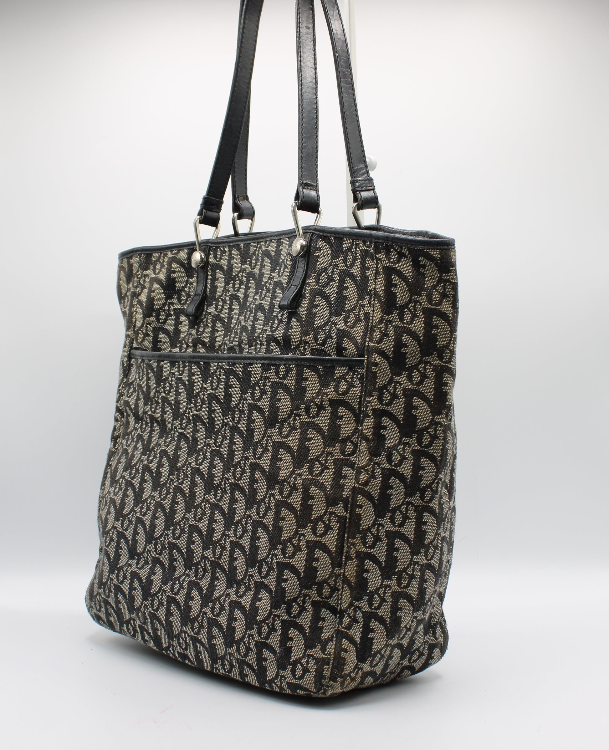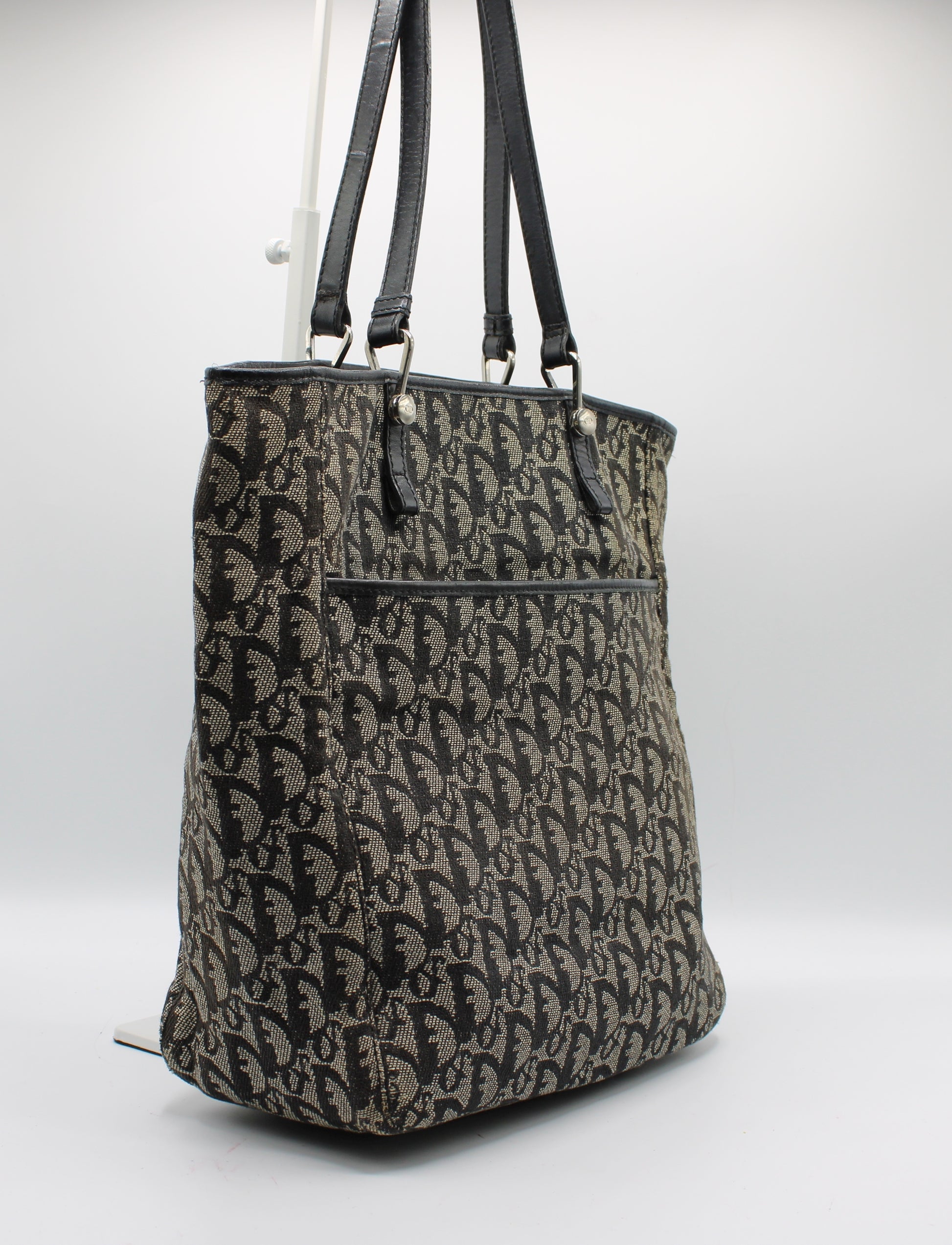 Stefany Bags Shoes and More proudly presents this authentic vintage Christian Dior Trotter tote bag, a timeless luxury piece crafted in iconic navy Dior monogram canvas with matching navy leather dual shoulder handles and refined leather trim. This classic Dior tote features the instantly recognizable Trotter pattern, a structured silhouette, and a functional exterior front pocket, making it both stylish and practical for everyday use. Made in Italy, this authentic vintage Dior bag reflects the craftsmanship and design that continue to make Christian Dior one of the most sought-after luxury brands worldwide. A perfect choice for collectors and fashion lovers searching for authentic vintage Christian Dior bags available in Boston.