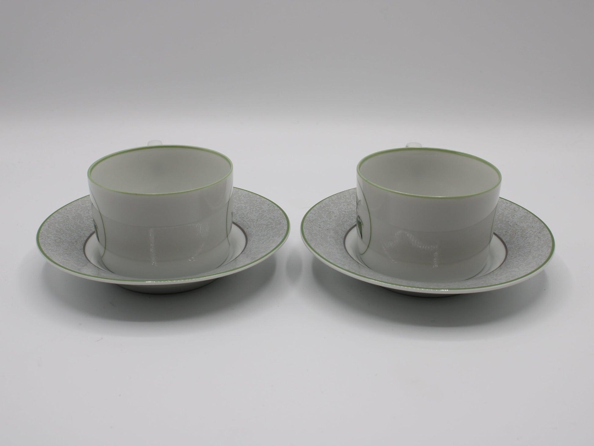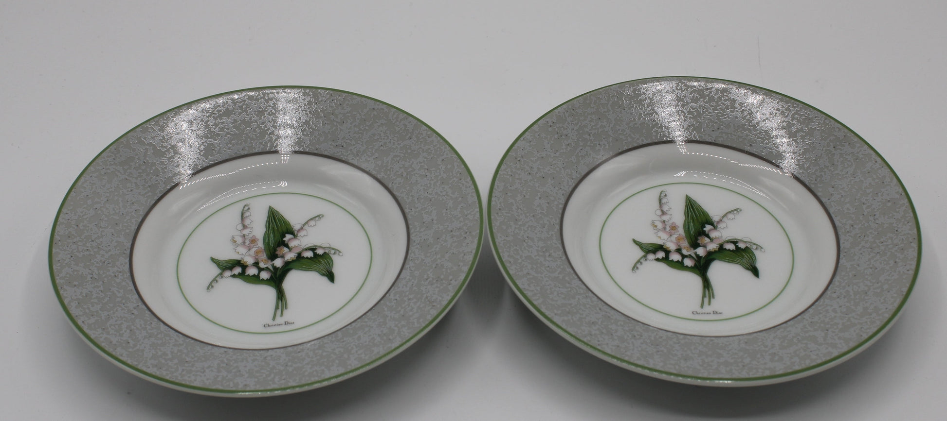 Crafted with Dior’s renowned attention to detail, each piece in this duo is adorned with a subtle green trim that beautifully frames the intricate floral design. Made from fine porcelain, this set combines durability with a delicate, refined appearance that showcases its vintage character. A testament to Christian Dior’s commitment to excellence, this duo is ideal for collectors or anyone who cherishes the elegance of high-end tableware and seeks to elevate any occasion with a touch of history and sophistication.
