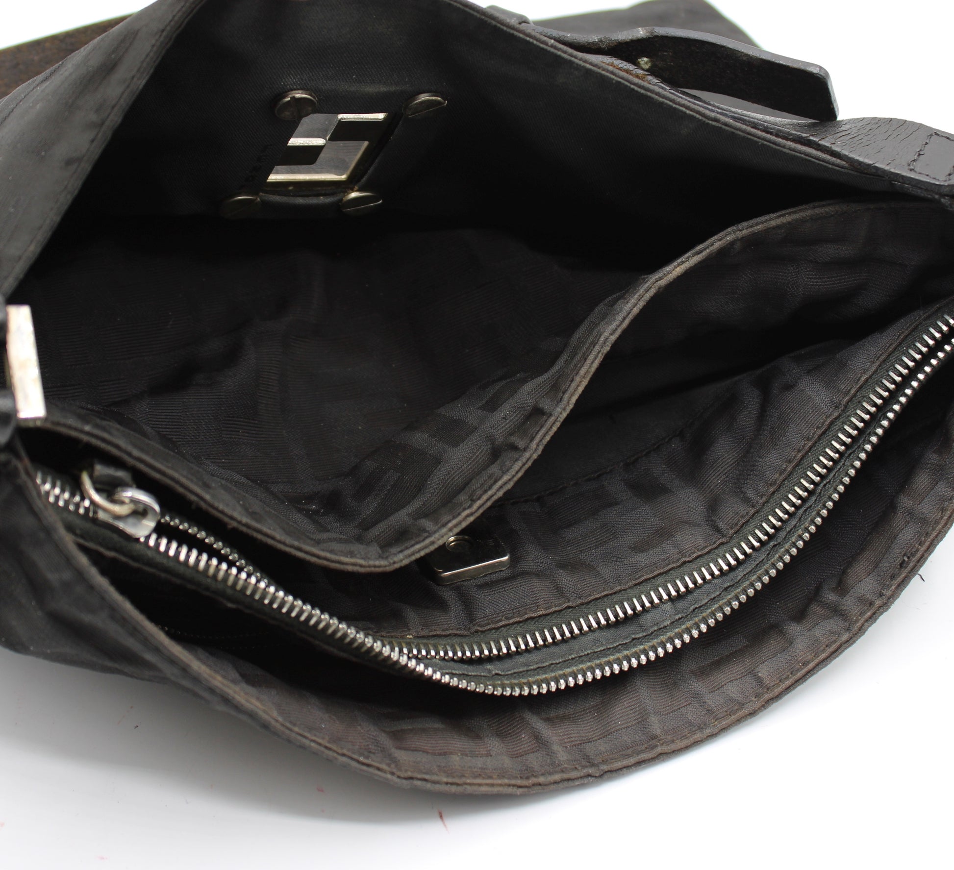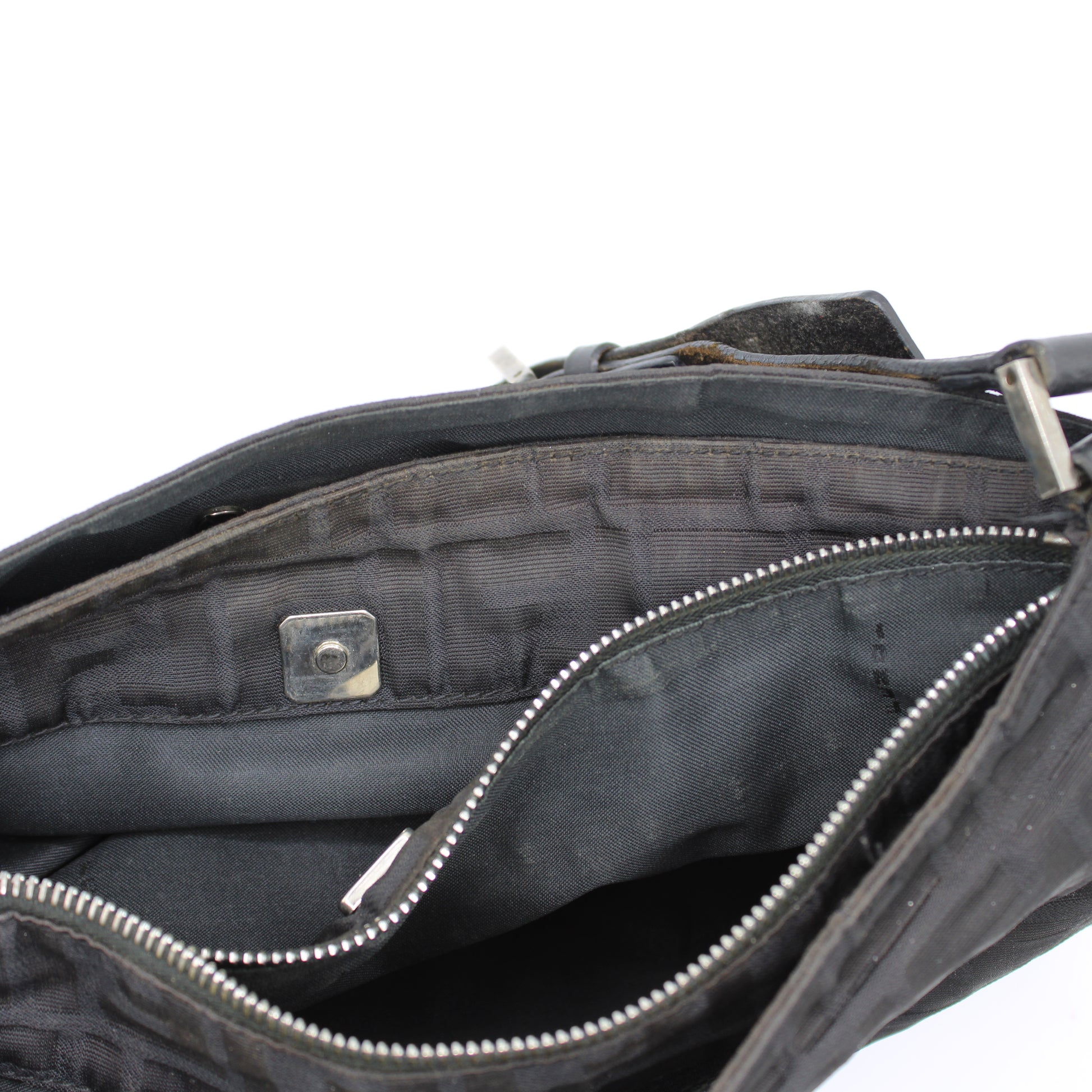 Fendi Black Zucca Canvas Leather Shoulder Bag