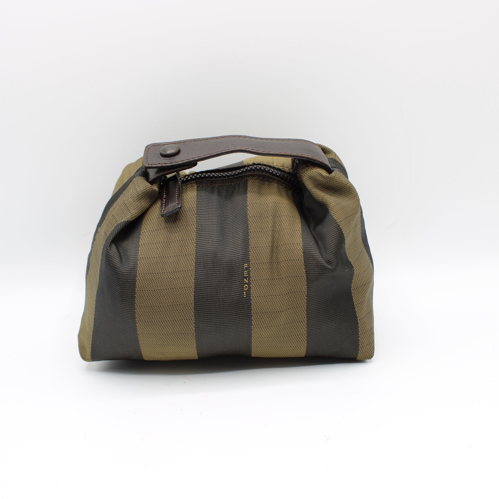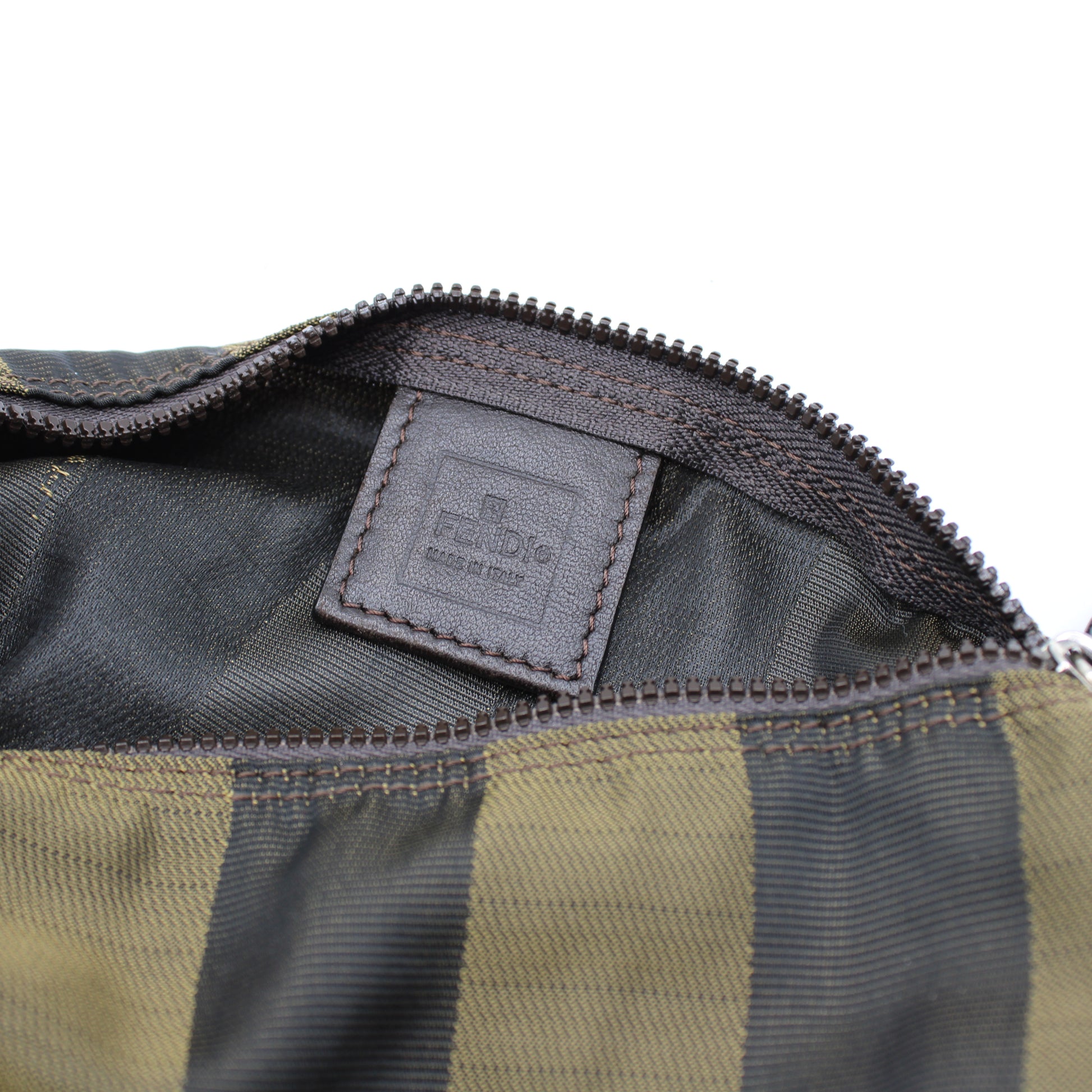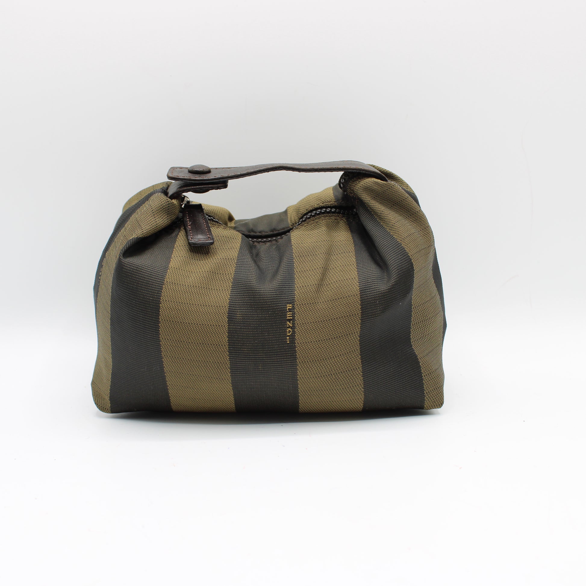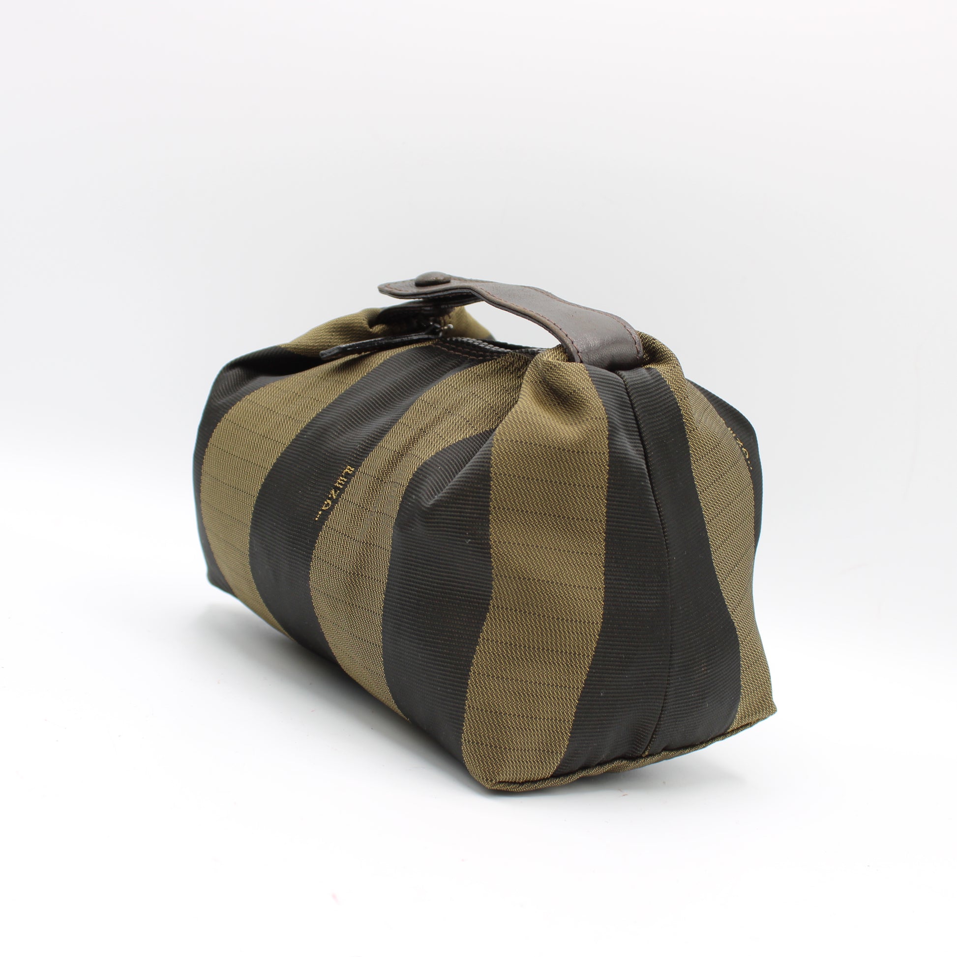 Fendi Brown Canvas Pequin Stripe Leather Handle Pouch