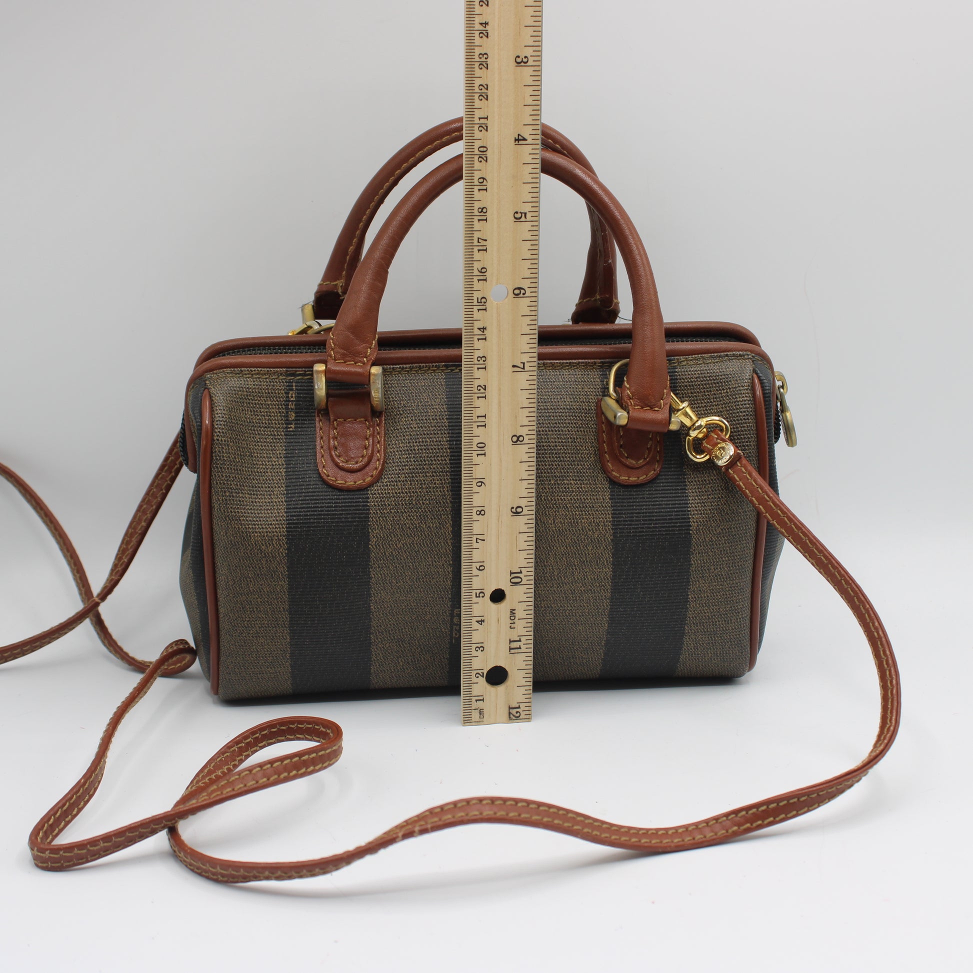 Fendi Brown Canvas Pequin Stripe Leather Mini Boston Crossbody Bag