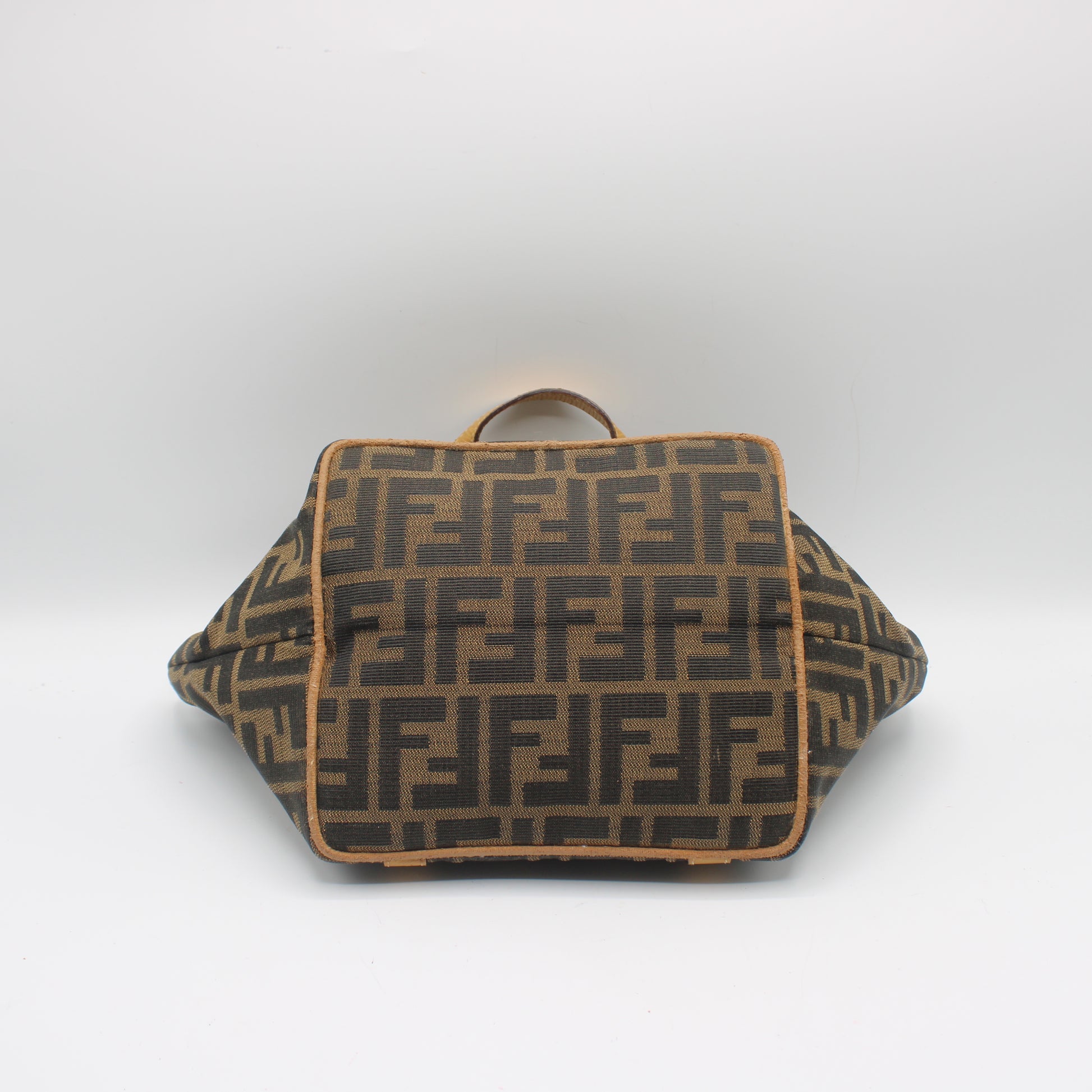 Fendi Brown Zucca Canvas Beige Leather Mini Hand Bag