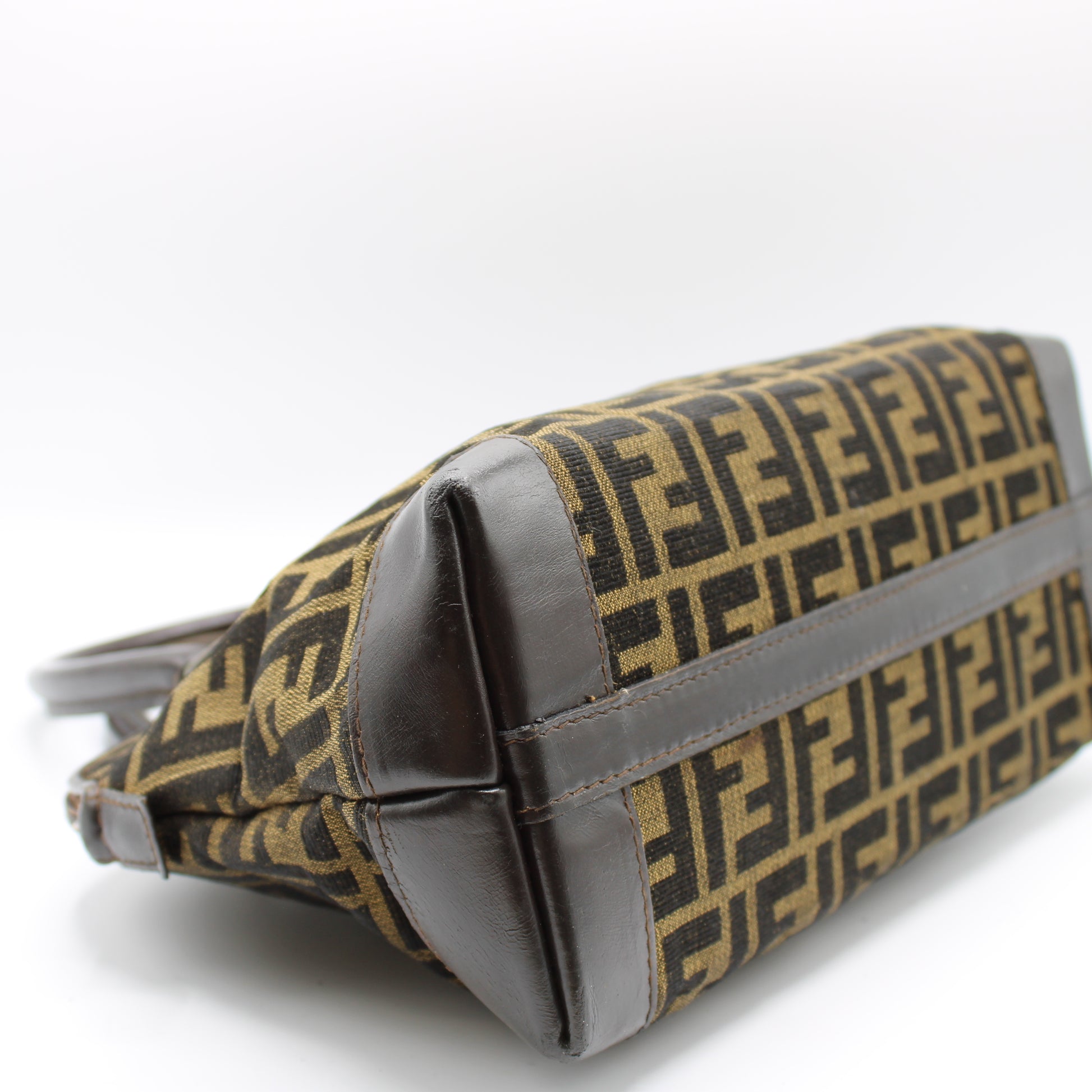 This Fendi bag is in very good vintage condition, showcasing minimal wear consistent with its age and careful use. The leather corners show slight scuffing, while the interior leather lining displays gentle signs of wear, neither of which detract from its overall charm or functionality. Please examine the detailed photographs provided to appreciate the craftsmanship and condition of this item.
