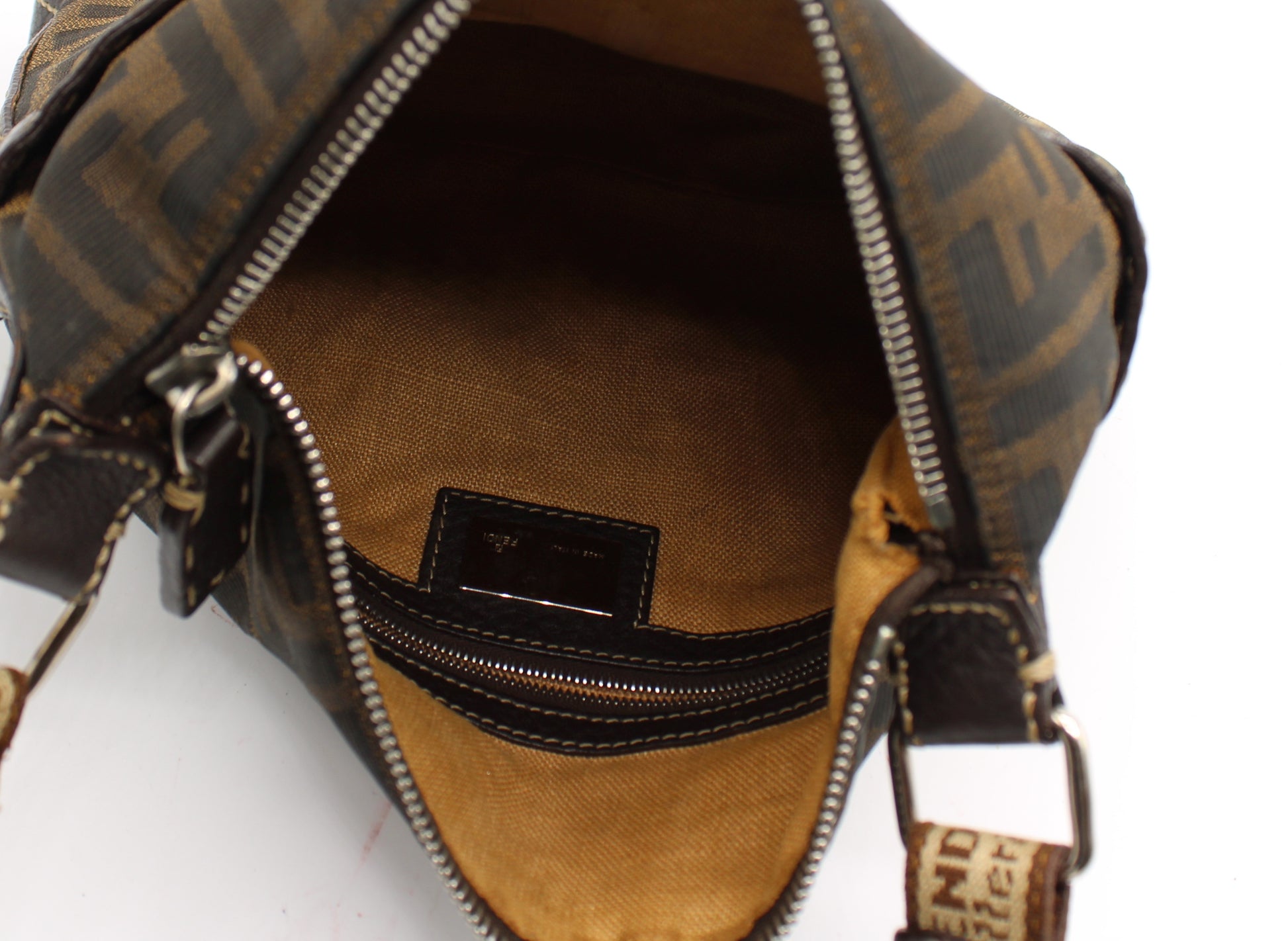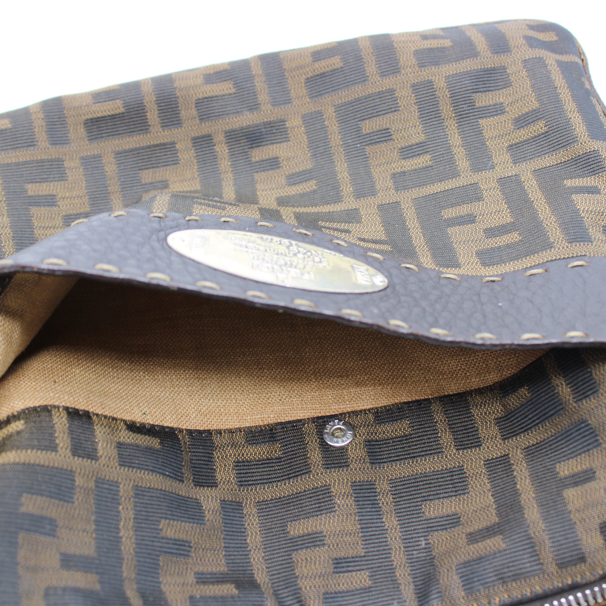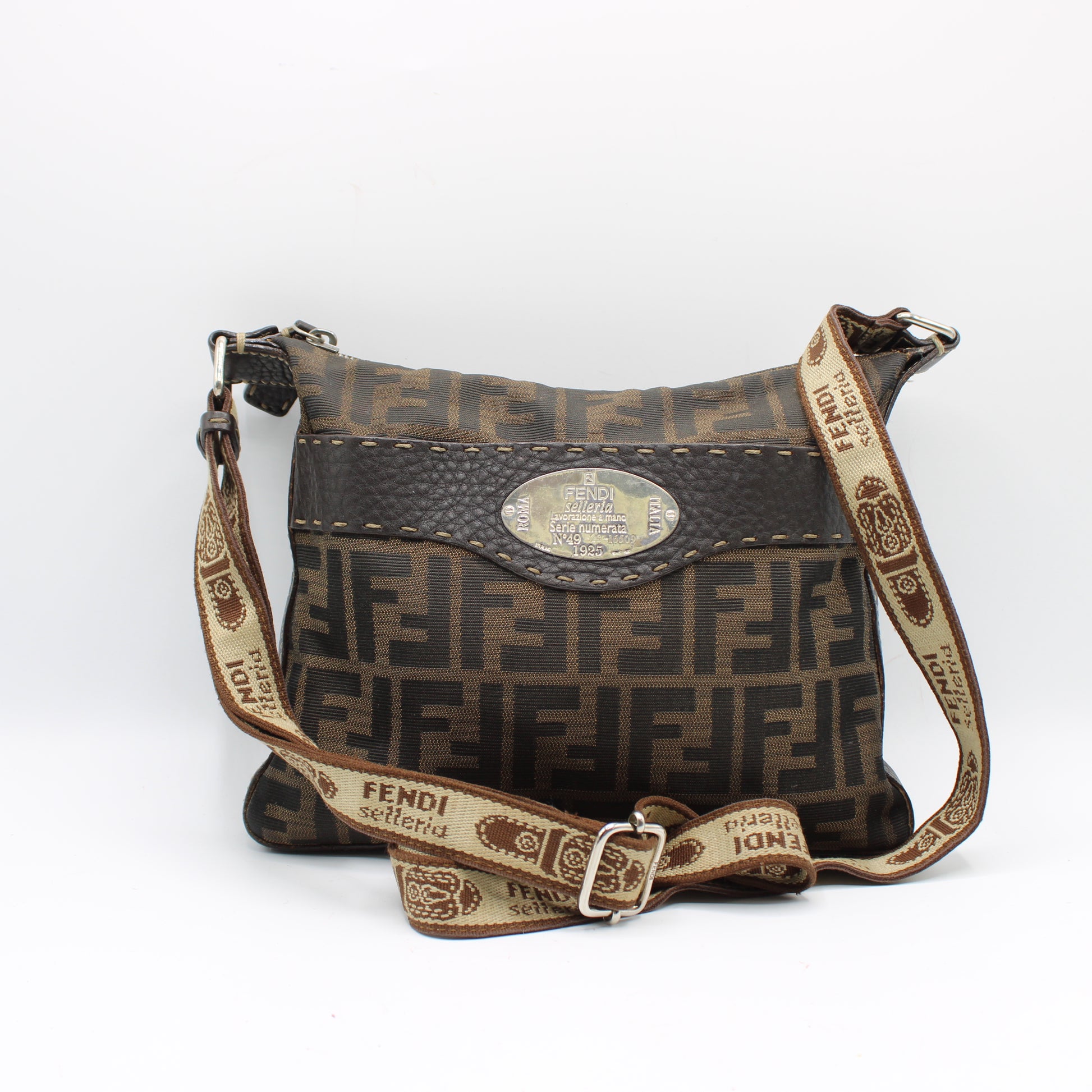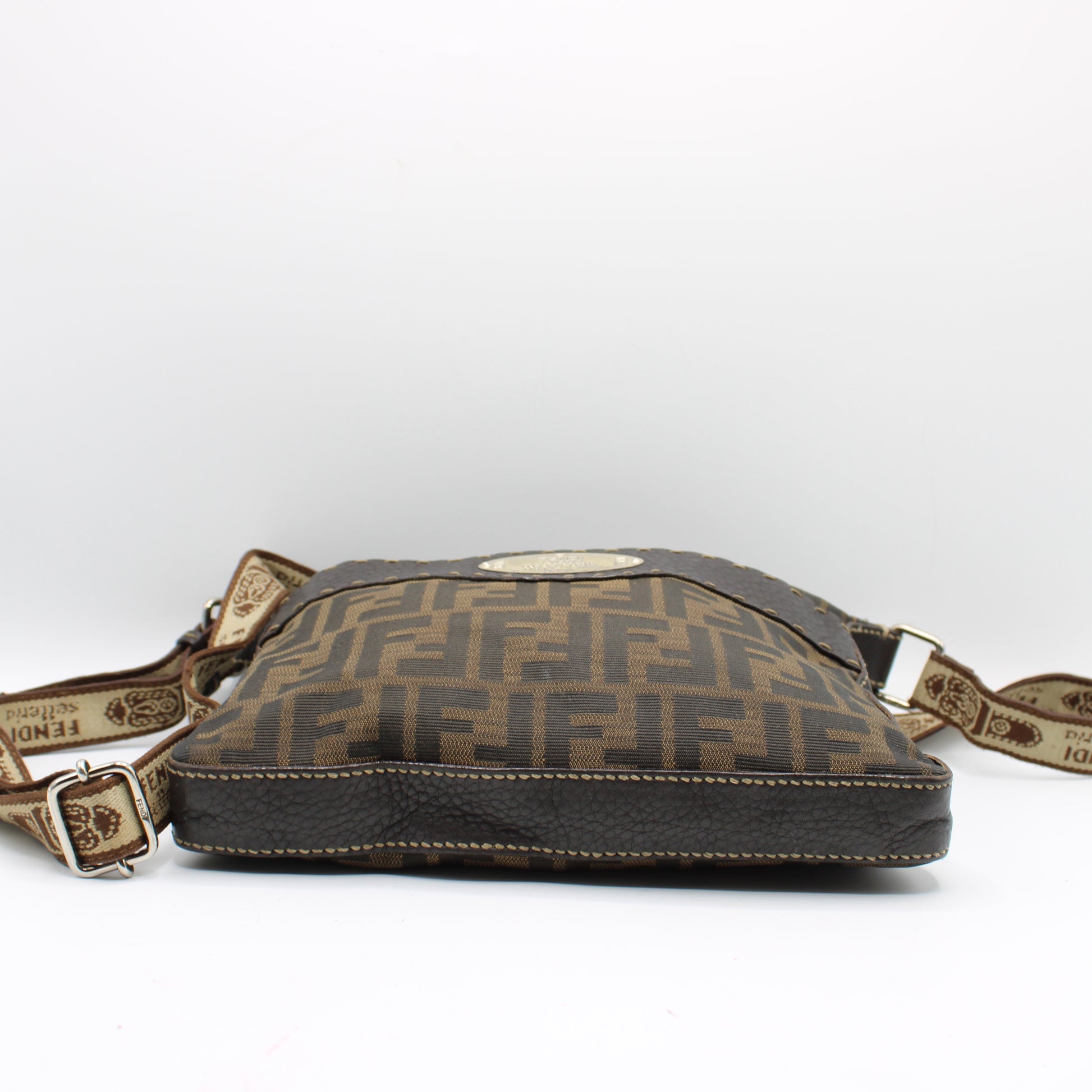 Fendi Brown Zucca Selleria Canvas Leather Crossbody Bag