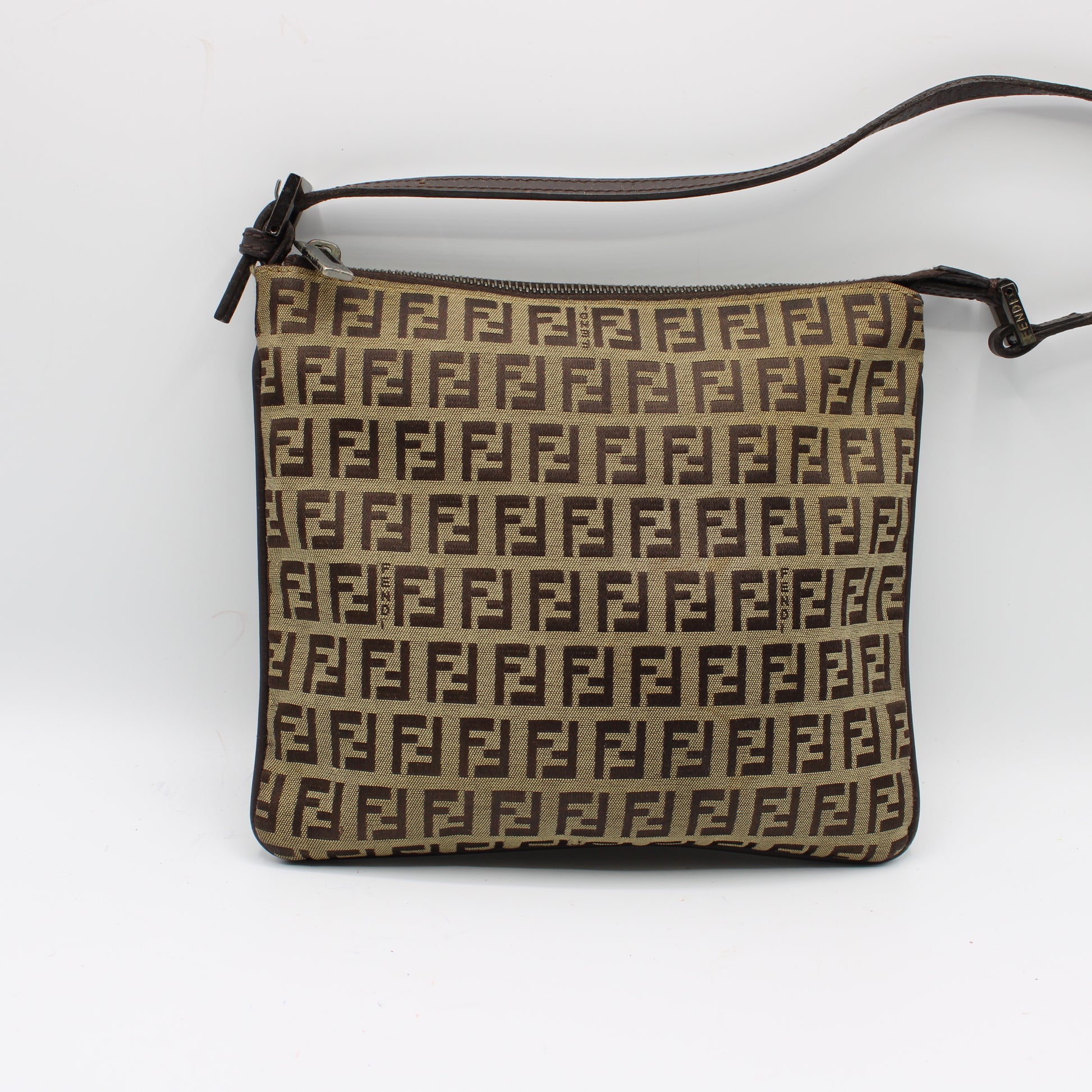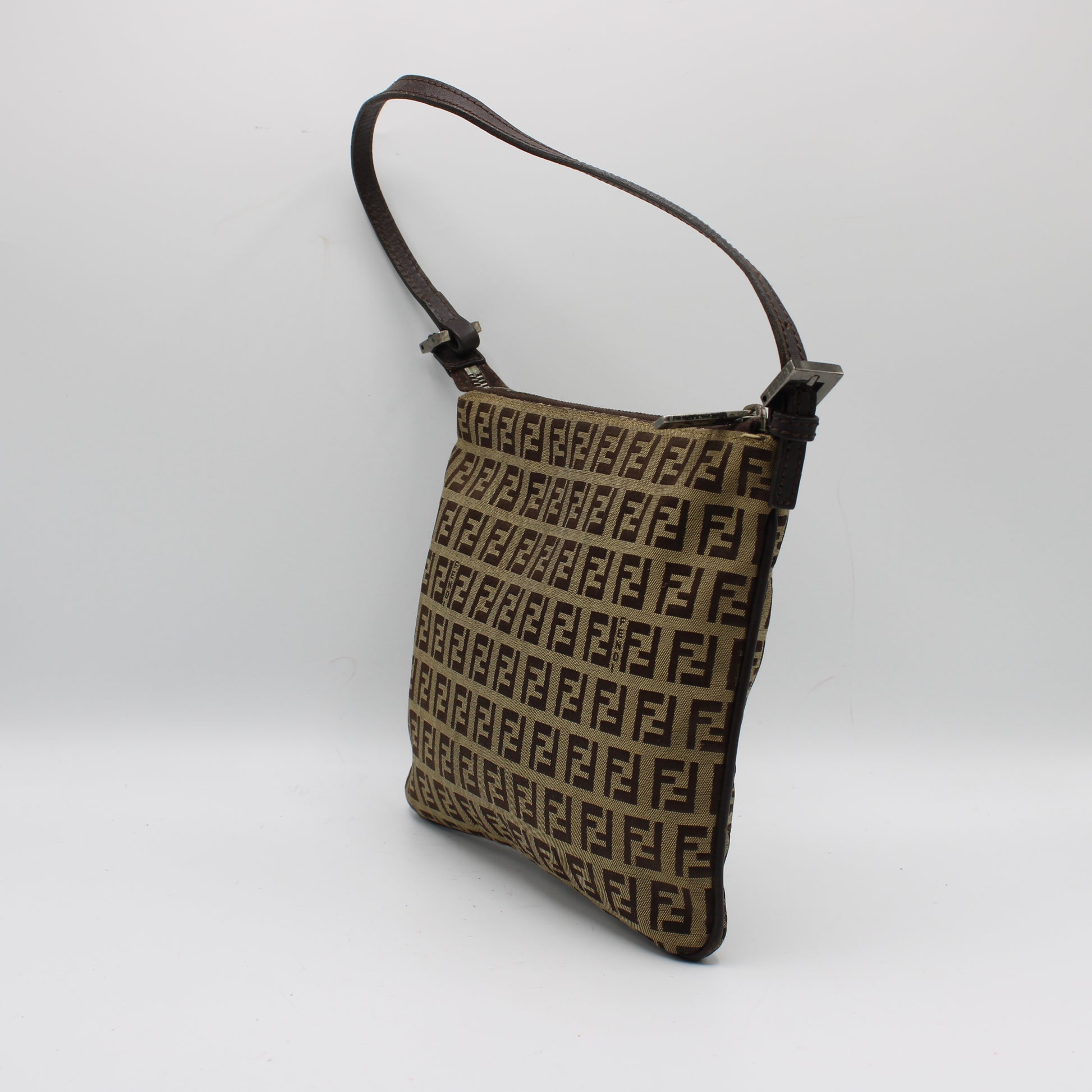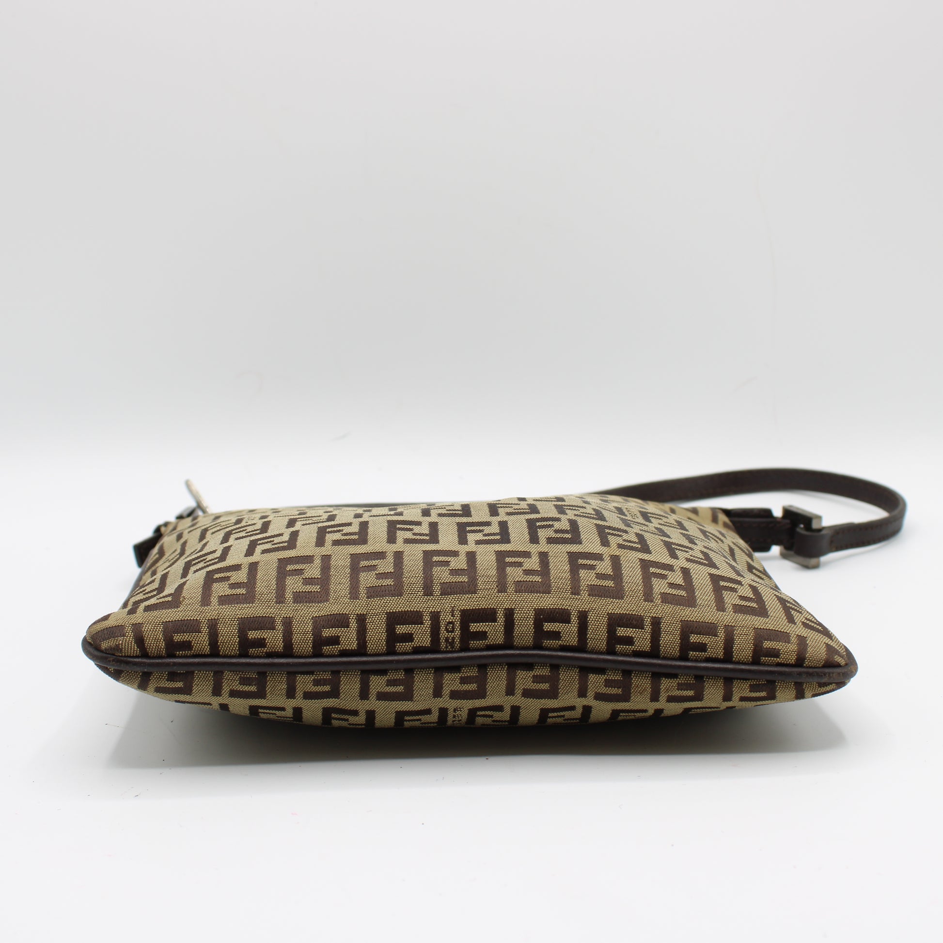 Fendi Brown Zucca Zucchino Canvas Pochette Shoulder Bag