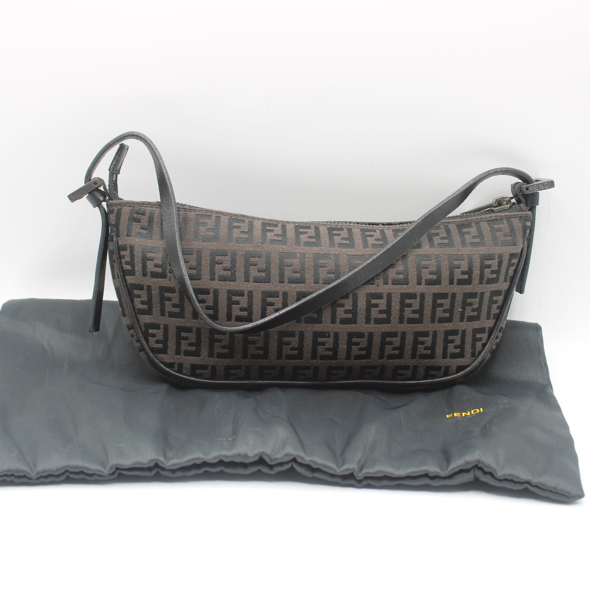 Fendi Brown Zucca Zucchino Canvas Shoulder Bag
