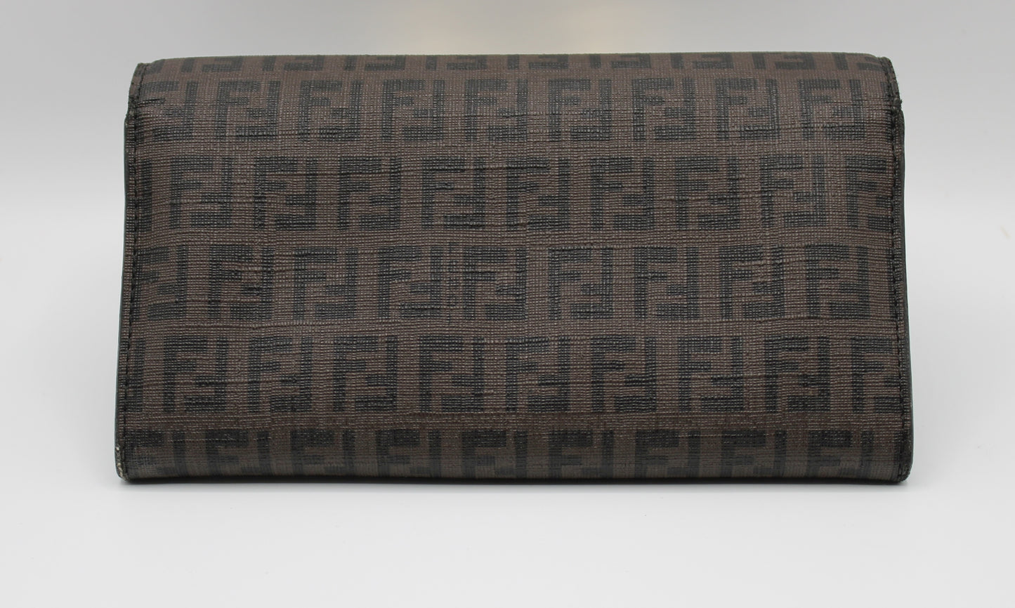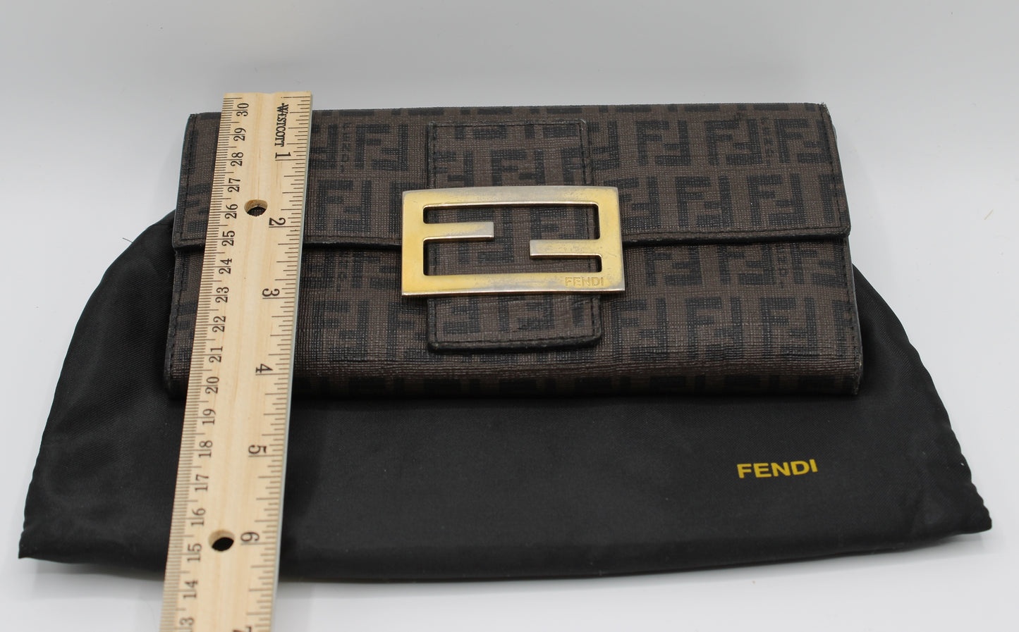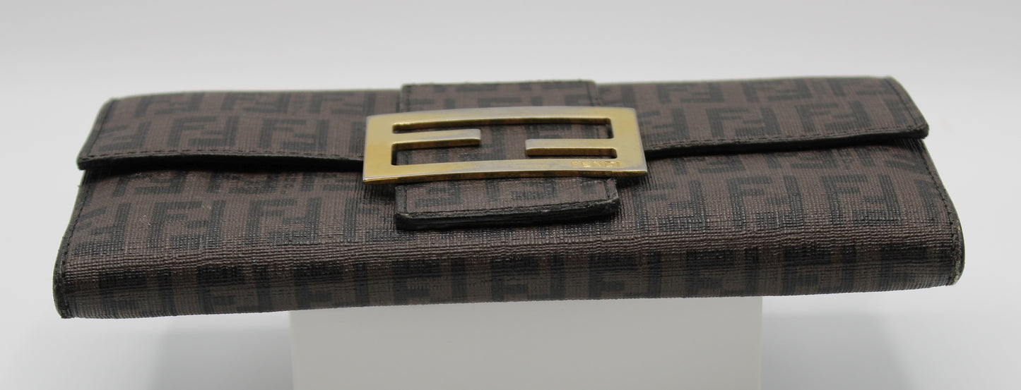 Fendi Monogram Canvas Continental Wallet Patina Logo Buckle Vintage