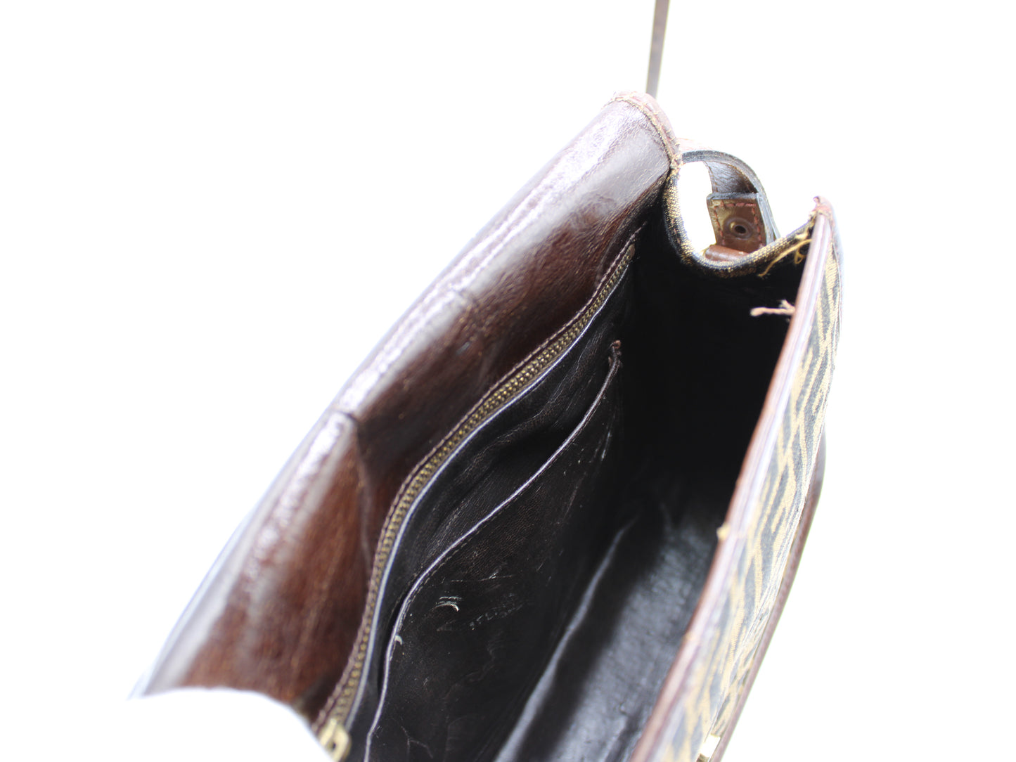 Fendi Bag Double F Brown Cloth Leather Trim Crossbody Vintage