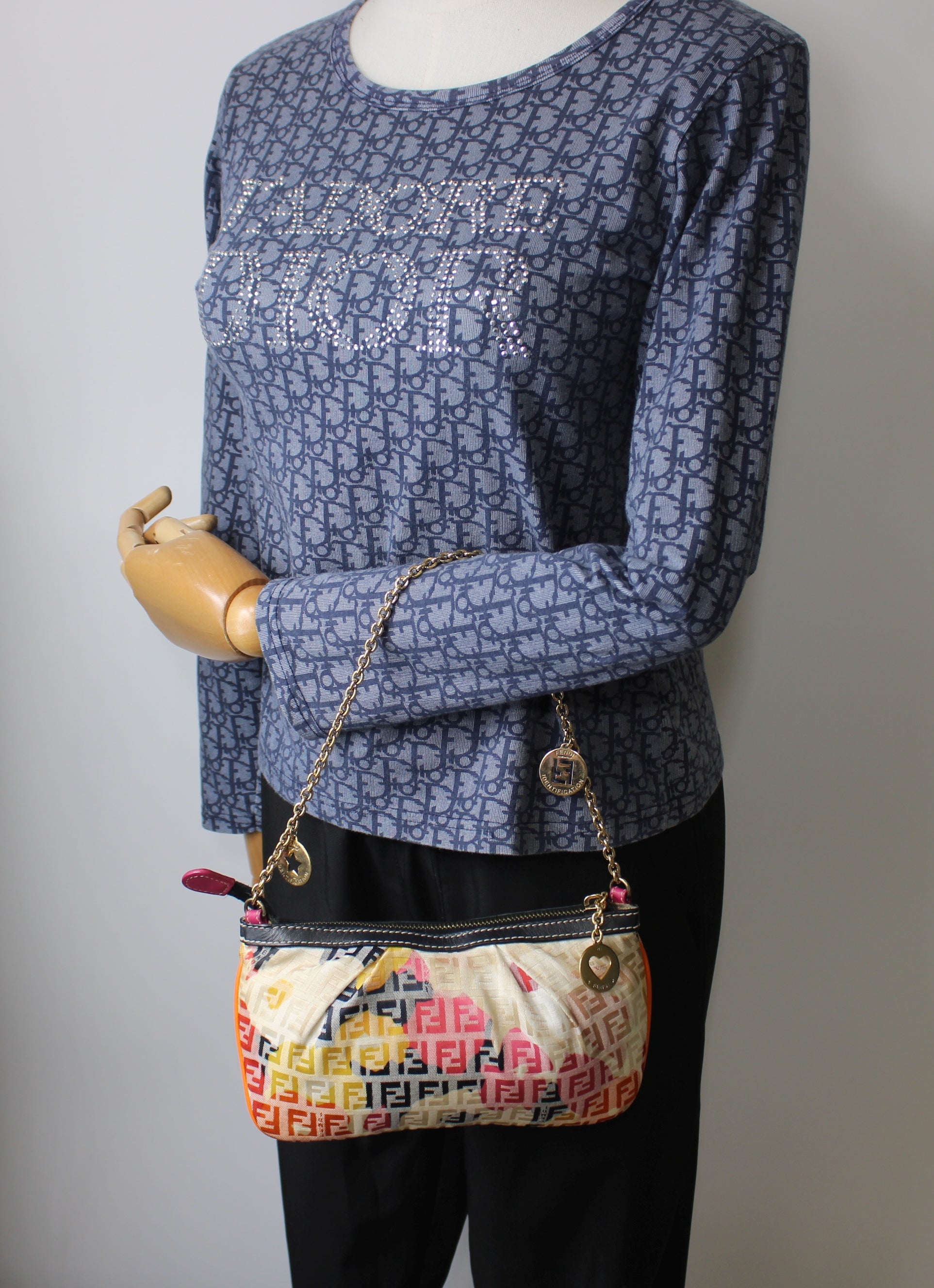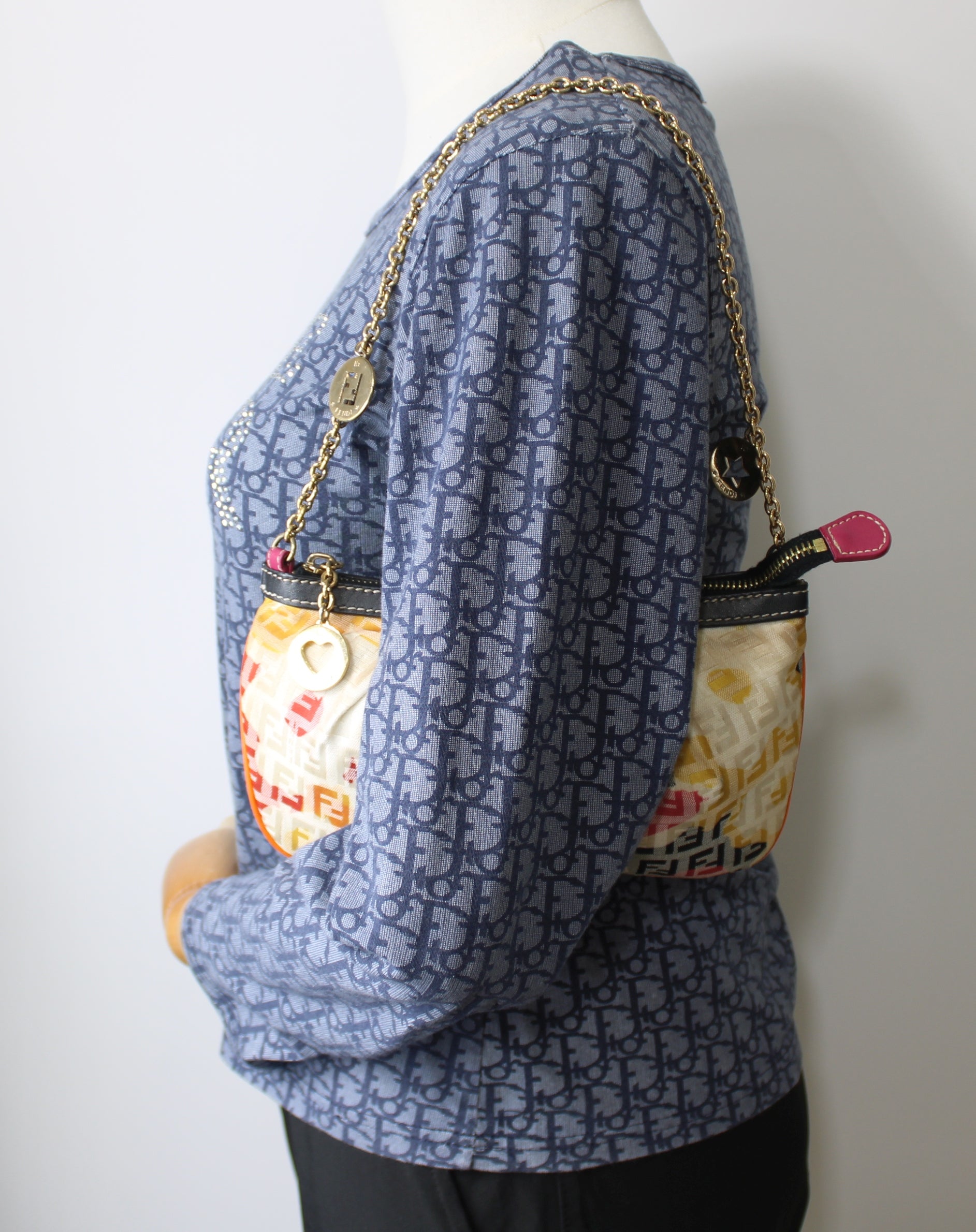 Fendi Multicolor Zucca Canvas Chain Charm Pouch Bag