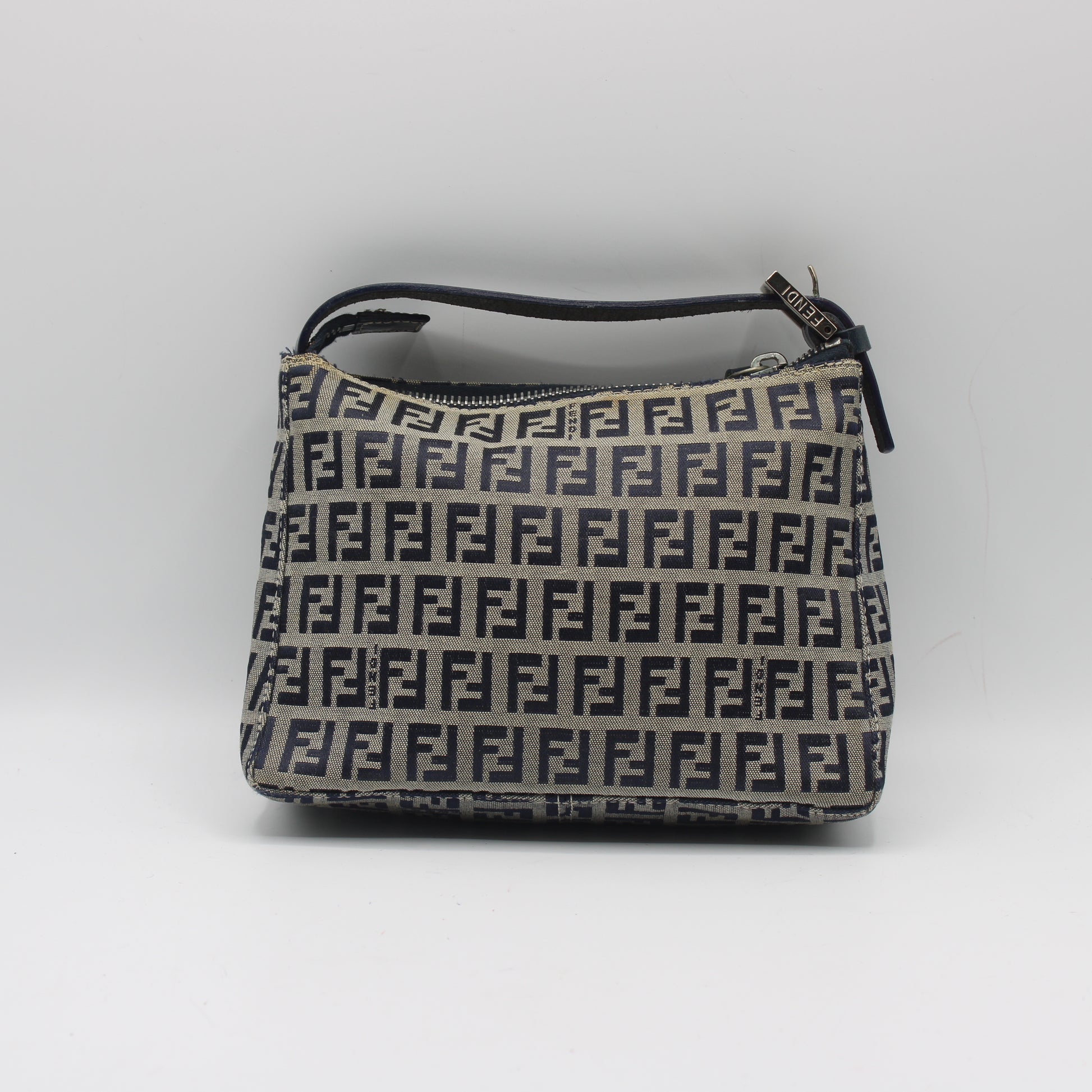 Fendi Navy Zucca Zucchino Canvas Leather Strap Pouch Bag
