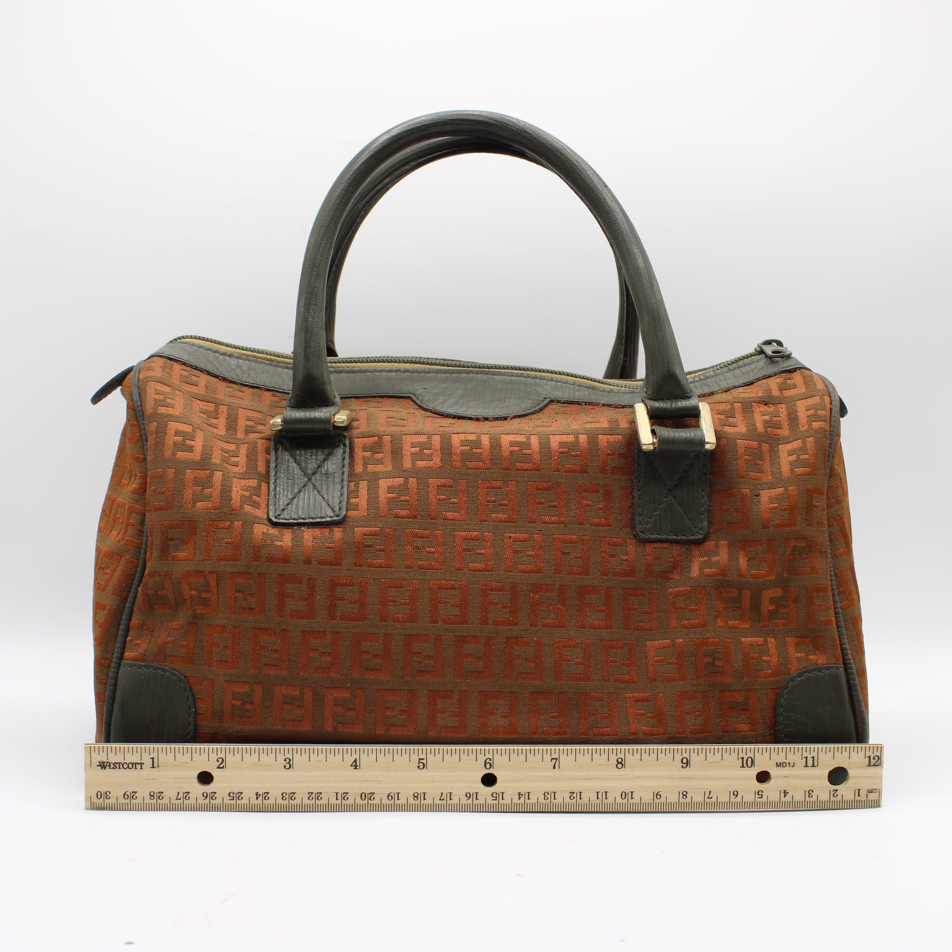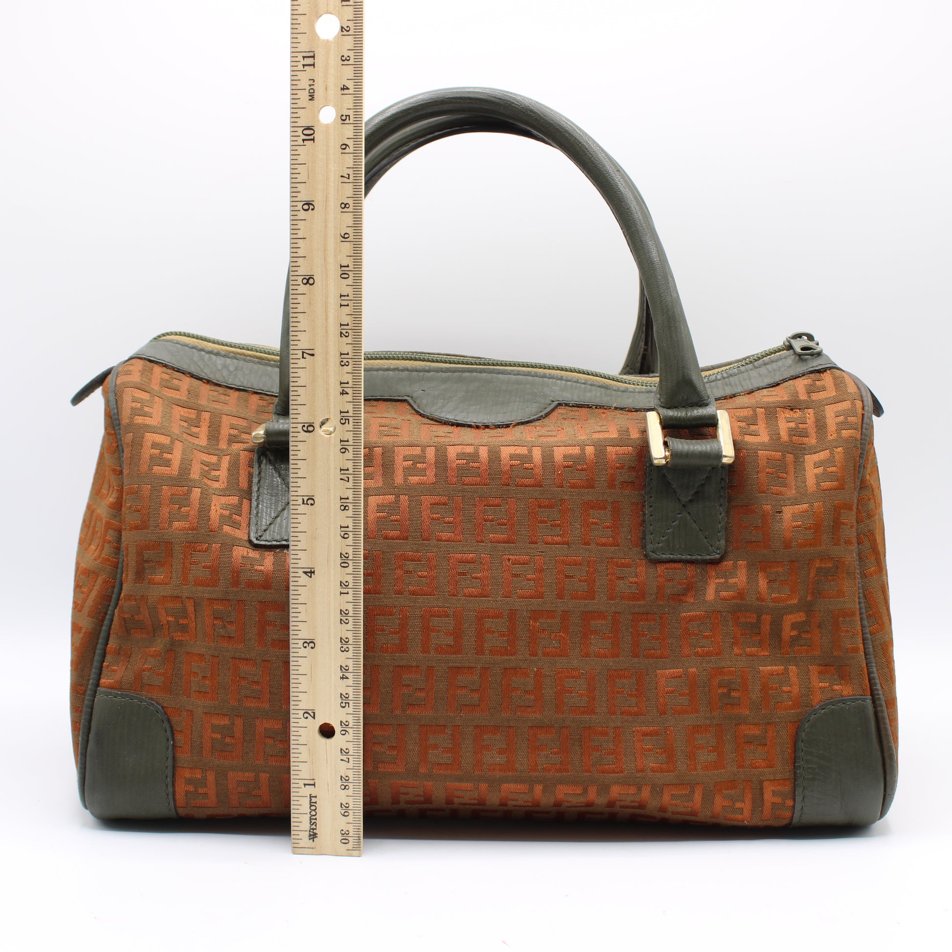 Fendi Orange Zucca Canvas Leather Boston Bag