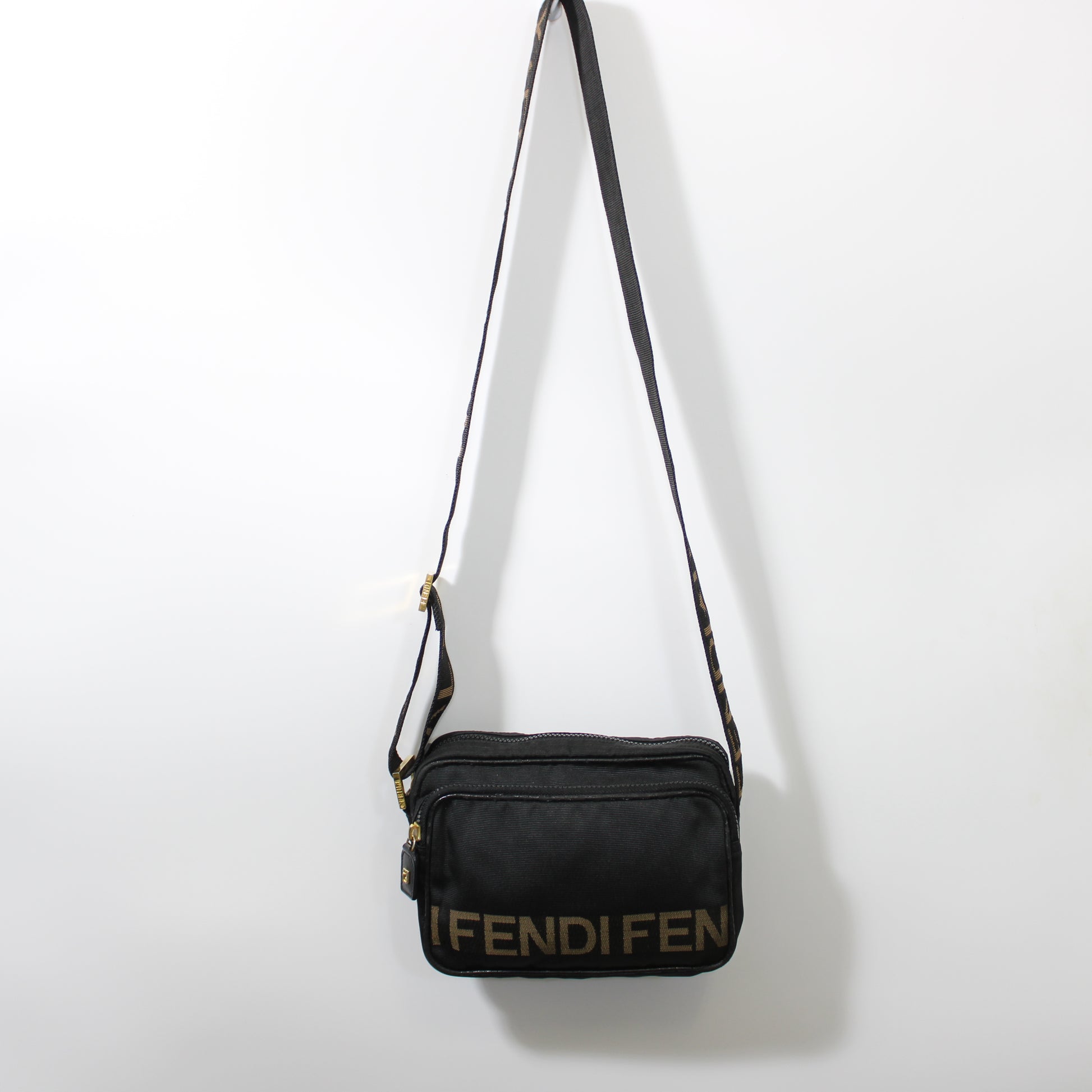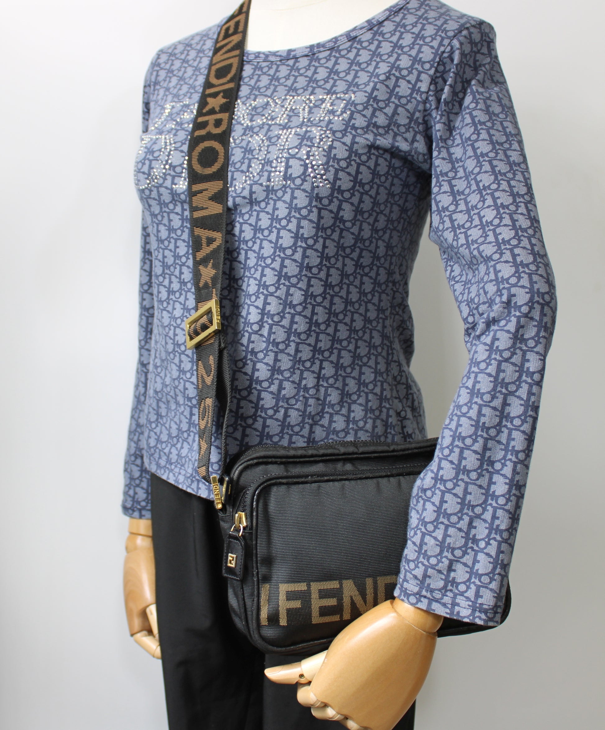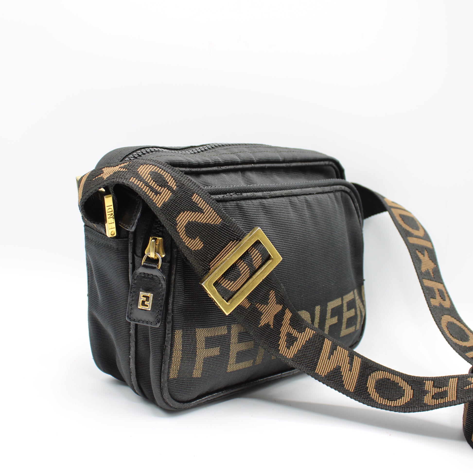 Stefany Bags Shoes and More proudly presents this authentic vintage Fendi Roma black 1925 logo crossbody or shoulder bag, crafted in Italy and designed for effortless everyday luxury. Featuring durable black nylon with the iconic Fendi Roma logo across the front and a wide adjustable strap, this bag offers both comfort and unmistakable designer appeal. The compact yet functional silhouette includes dual zip compartments with smooth gold tone hardware, making it ideal for daily essentials while maintaining a sleek profile. This piece reflects the timeless Fendi aesthetic that continues to trend strongly in 2025, especially among collectors searching for authentic vintage Fendi bags available in Boston.