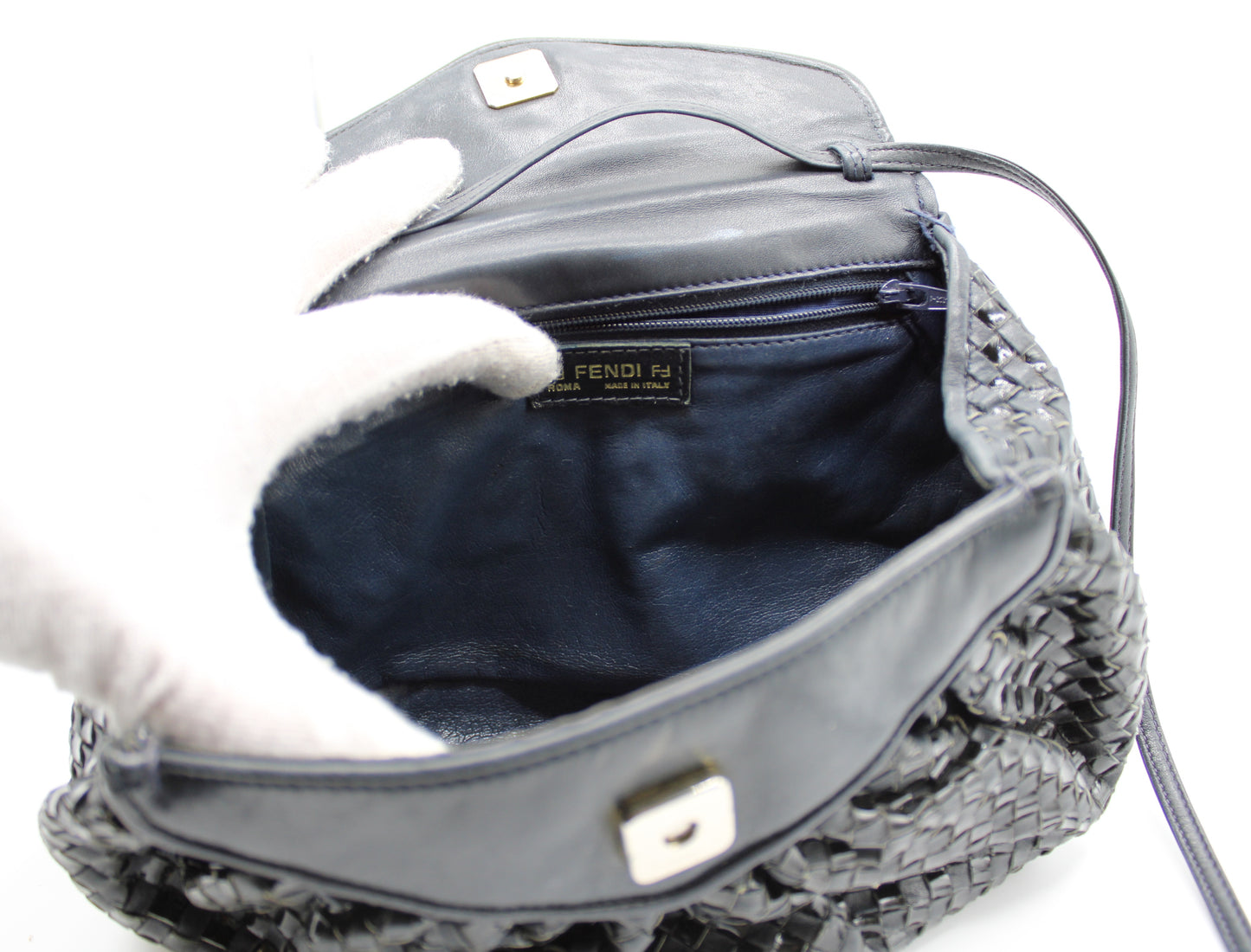 Fendi Bag Woven Leather Crossbody FF Logo Black Vintage