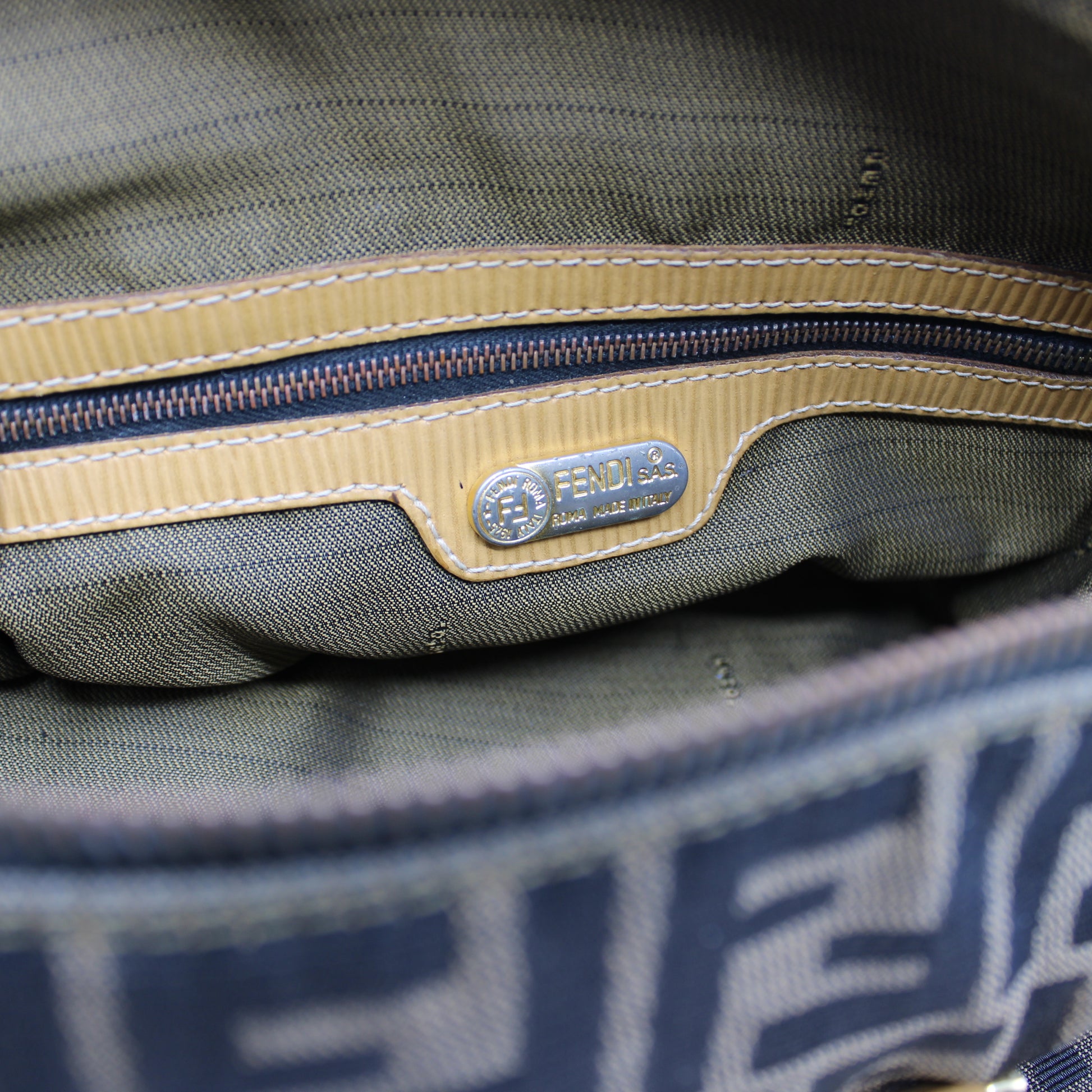 Fendi Zucca Brown Canvas Leather Boston Crossbody Bag