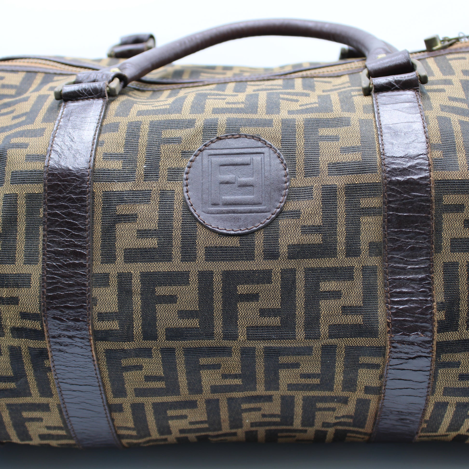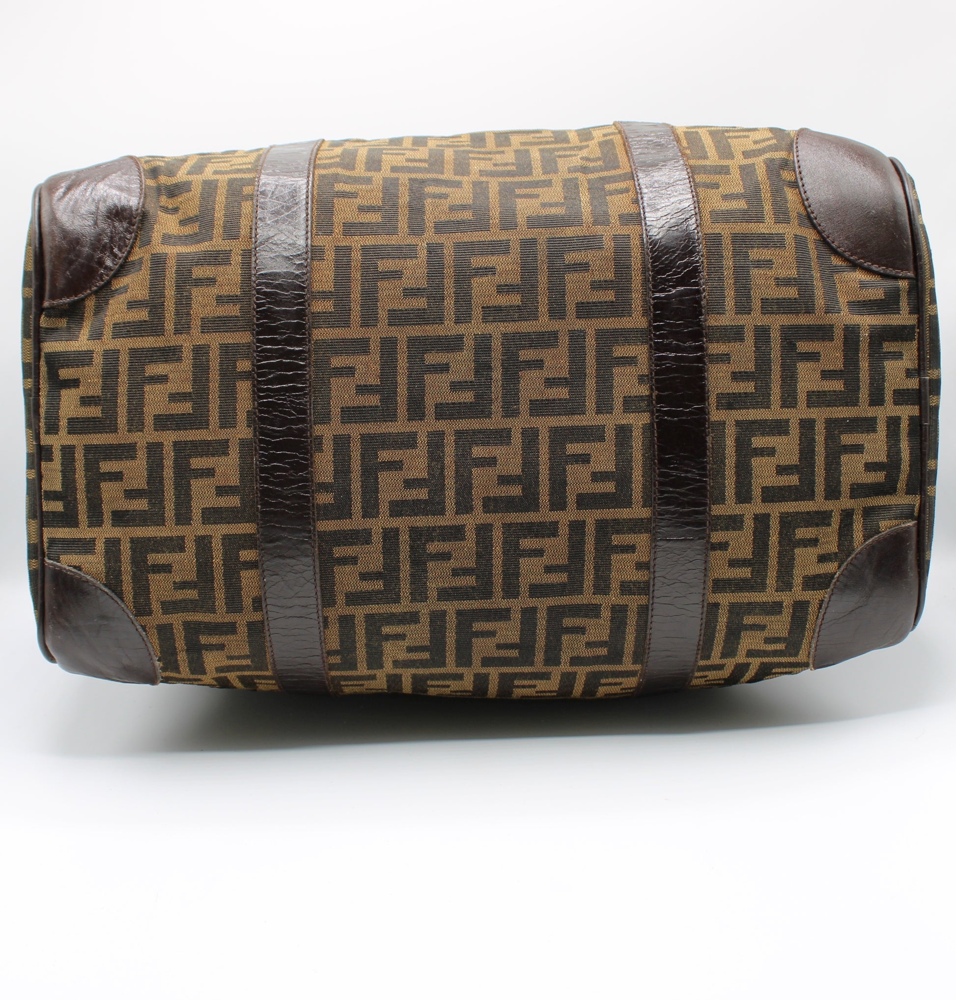 Measuring 15 inches in width and 9 inches in height, this Fendi Boston bag offers ample space for all your essentials, making it perfect for travel or everyday use. The exterior is in very good condition, with only minor wear that enhances its vintage charm. The leather handles and trim have aged gracefully, developing a warm patina that adds to the bag's character. Inside, the bag's lining shows some discoloration, a typical sign of its age, yet it remains fully functional and intact.