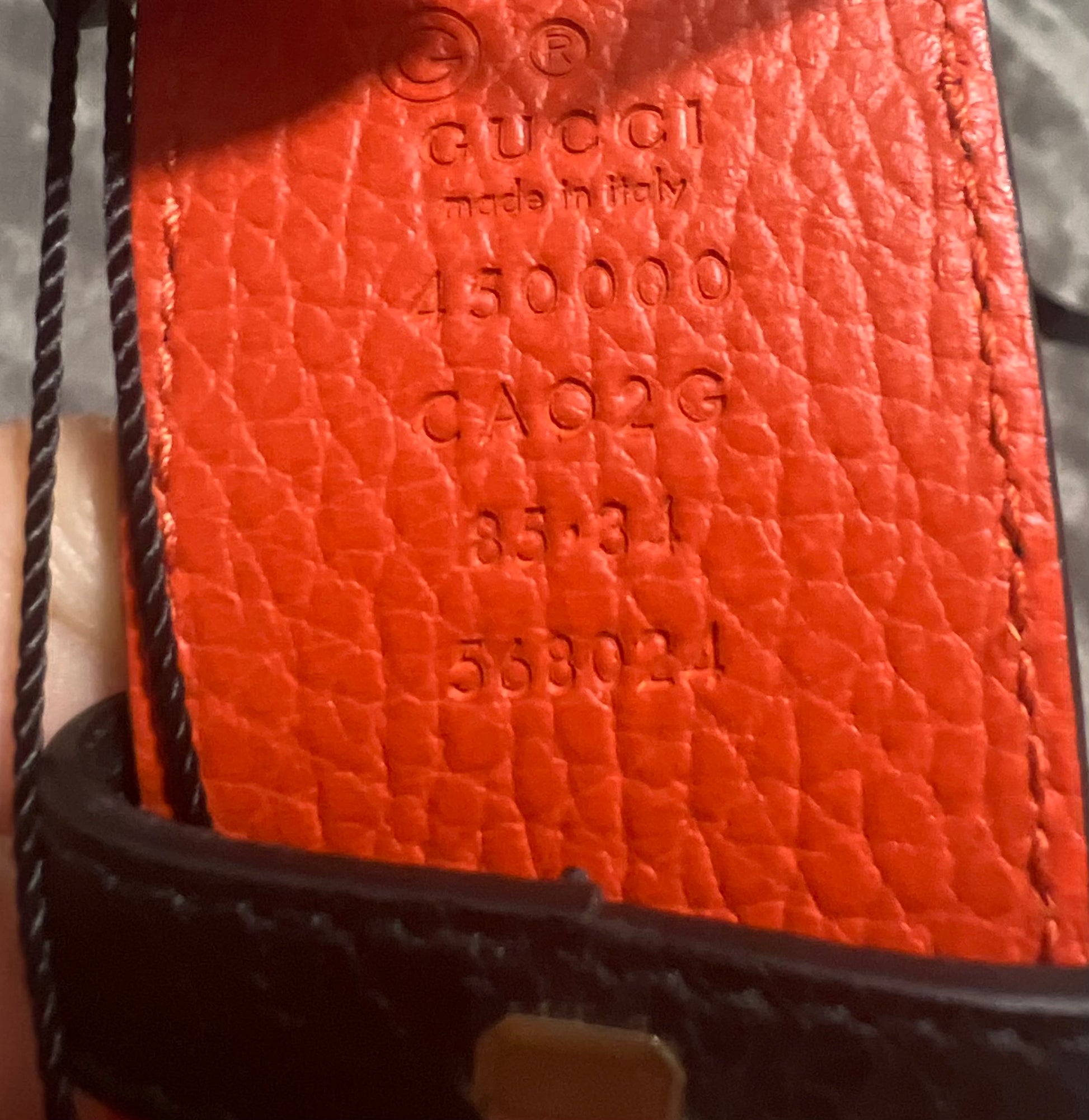 This Gucci belt is in pristine condition, never opened from its original protective tape but listed as used condition due to brand policy, and comes with tags and a dust bag, ensuring its authenticity and quality. The size of the belt is 85 cm, equivalent to 34 inches, making it a perfect fit for a variety of outfits.