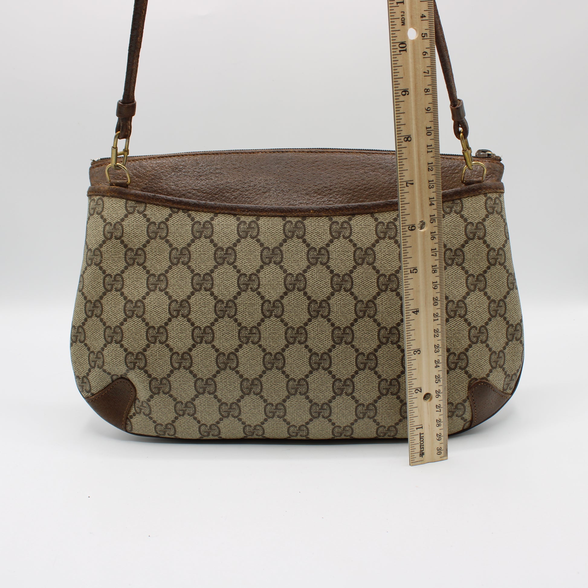 Measuring 12 inches in width by 8 inches in height, this crossbody bag is compact yet spacious, making it the ideal companion for casual outings or more refined occasions. Perfect for collectors or anyone looking for a unique vintage statement piece, this Gucci crossbody bag is available now in Boston. Don't miss the chance to own a piece of fashion history!
