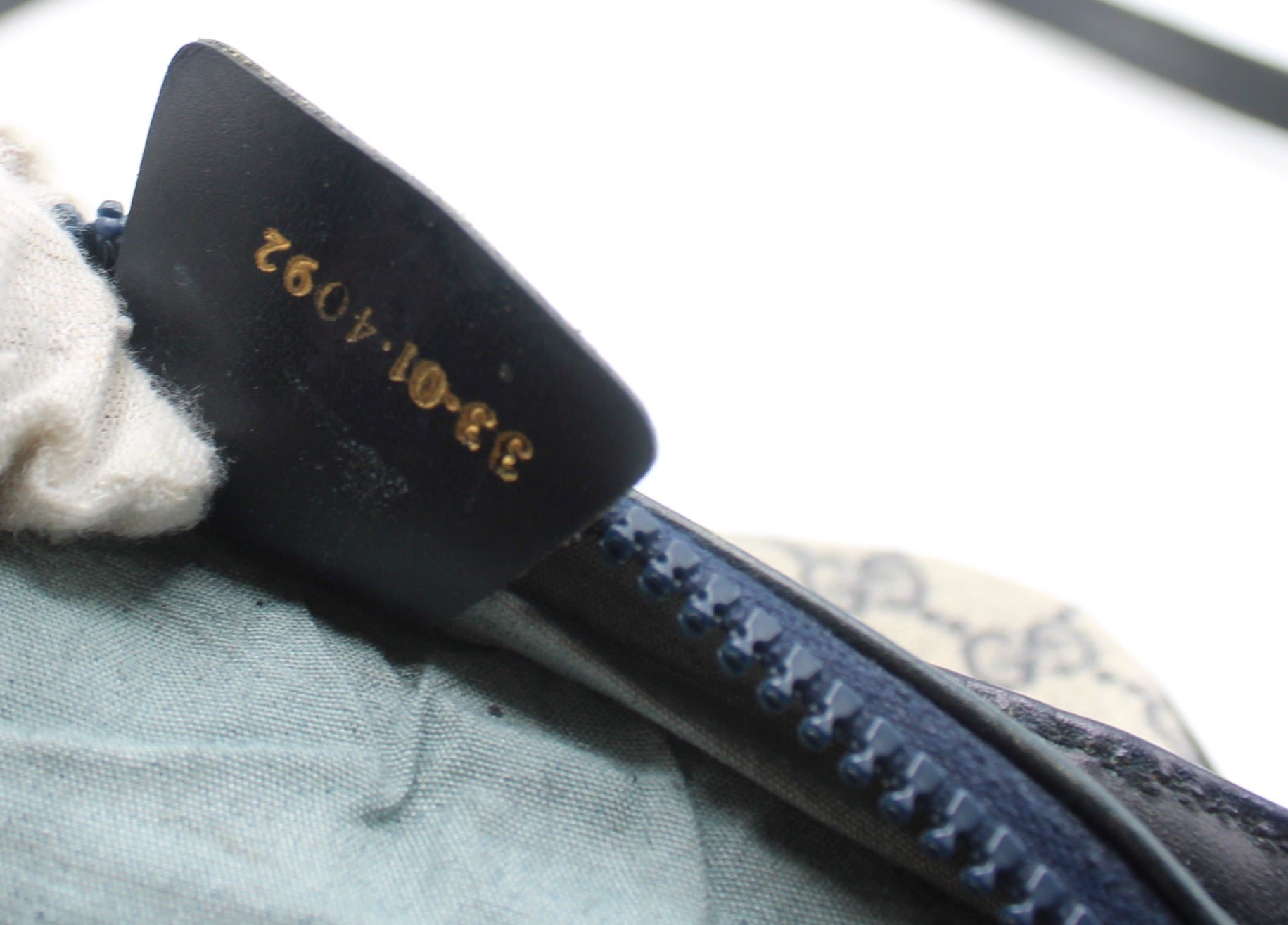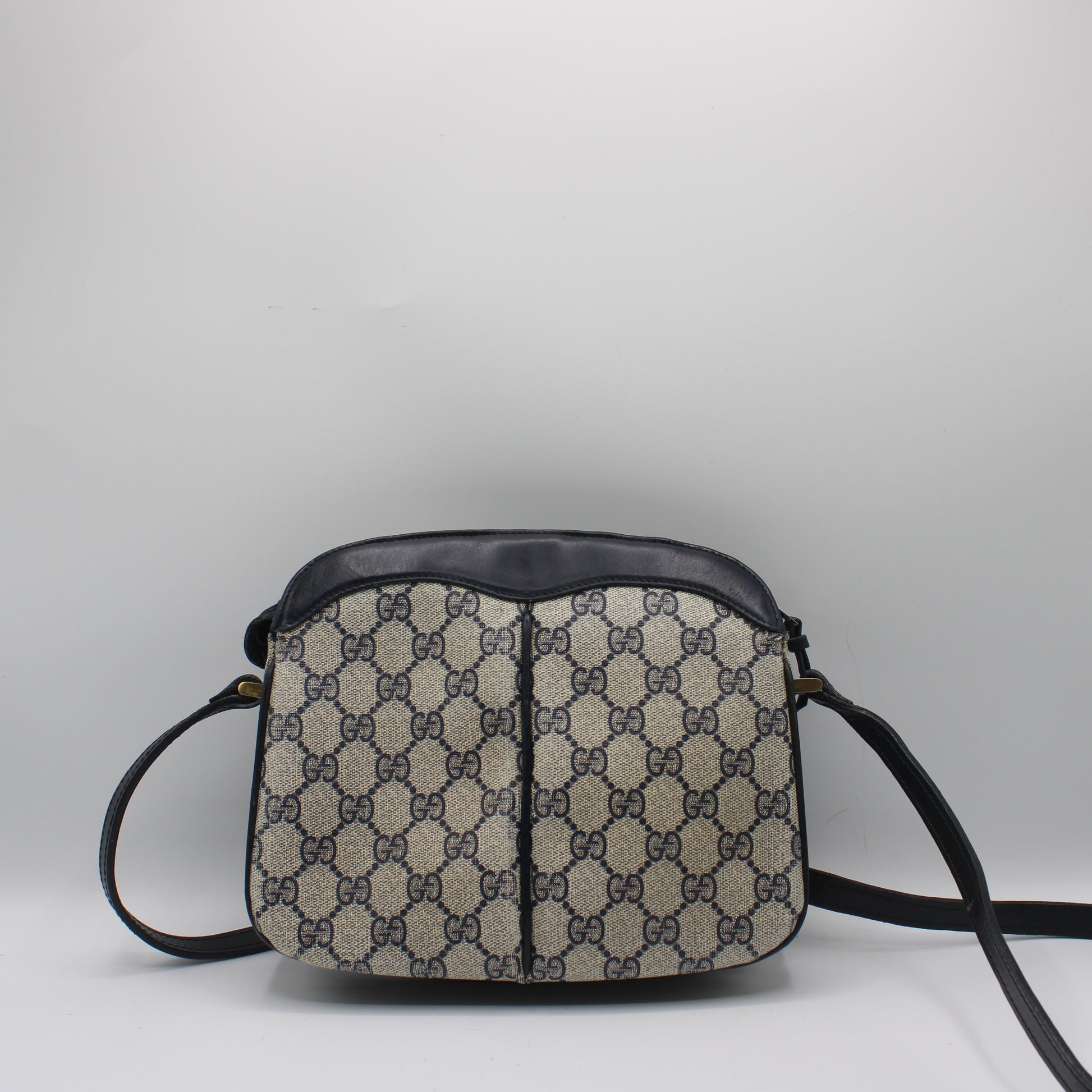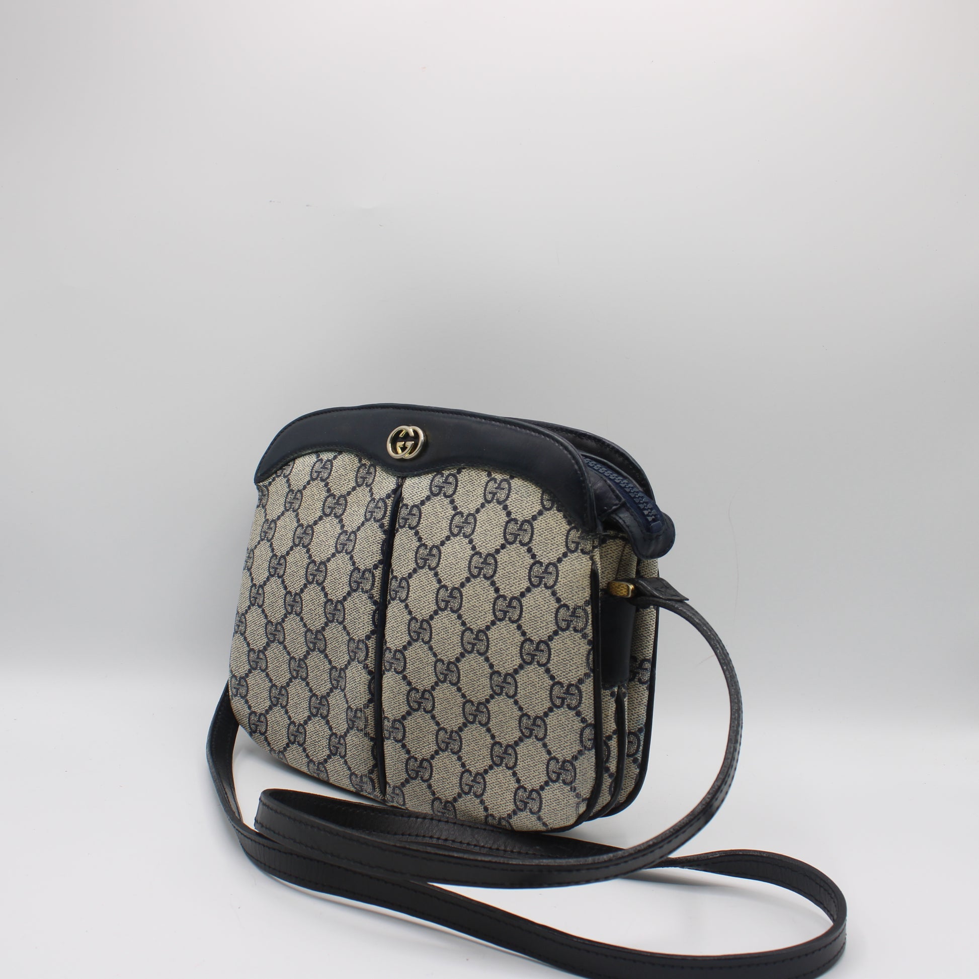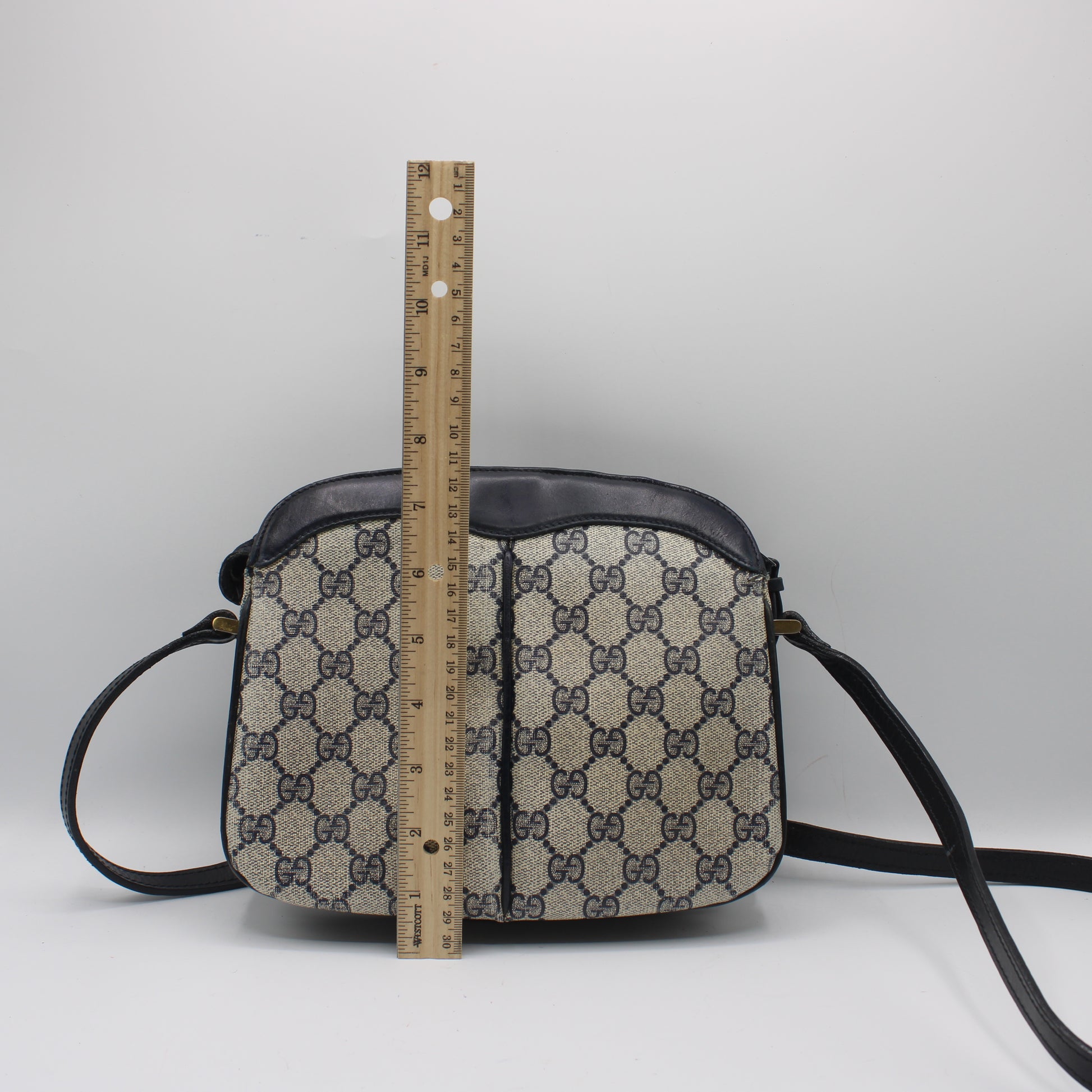 Gucci Beige And Navy GG Canvas Leather Trim Crossbody Bag
