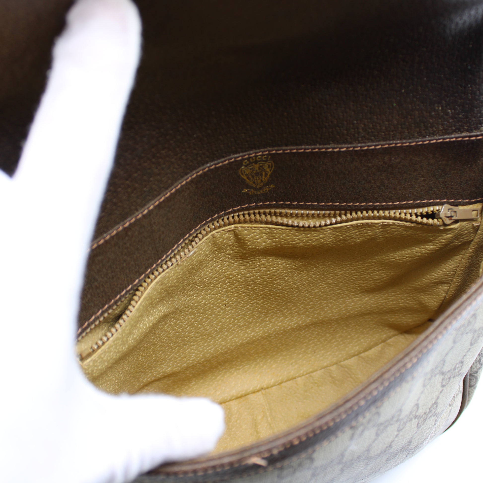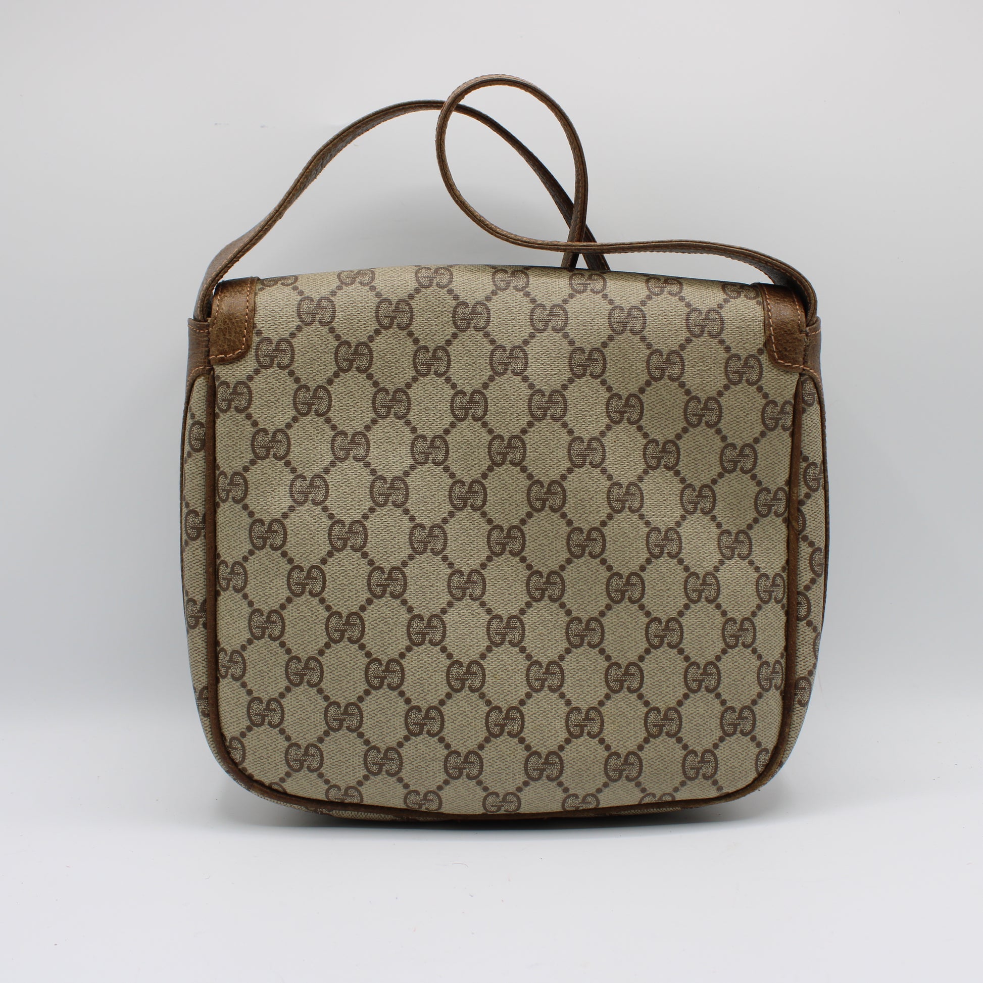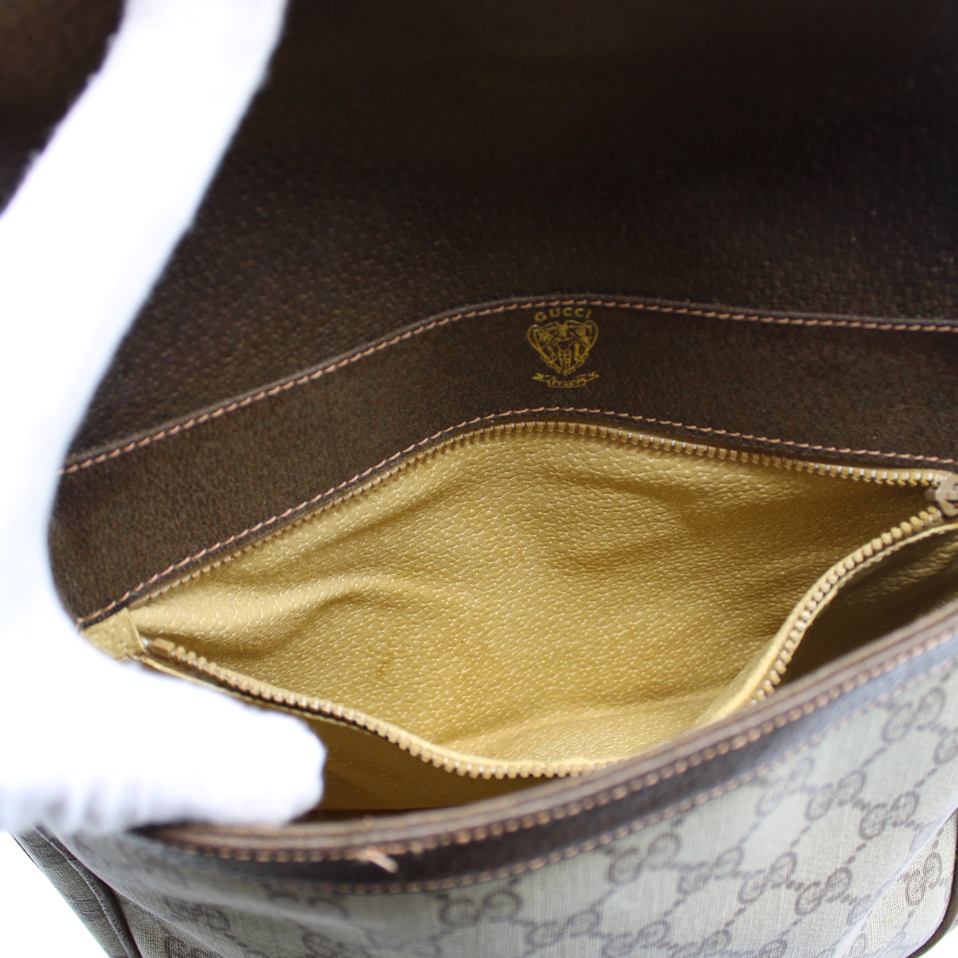 Gucci Beige Brown Gg Canvas Leather Flap Shoulder Bag