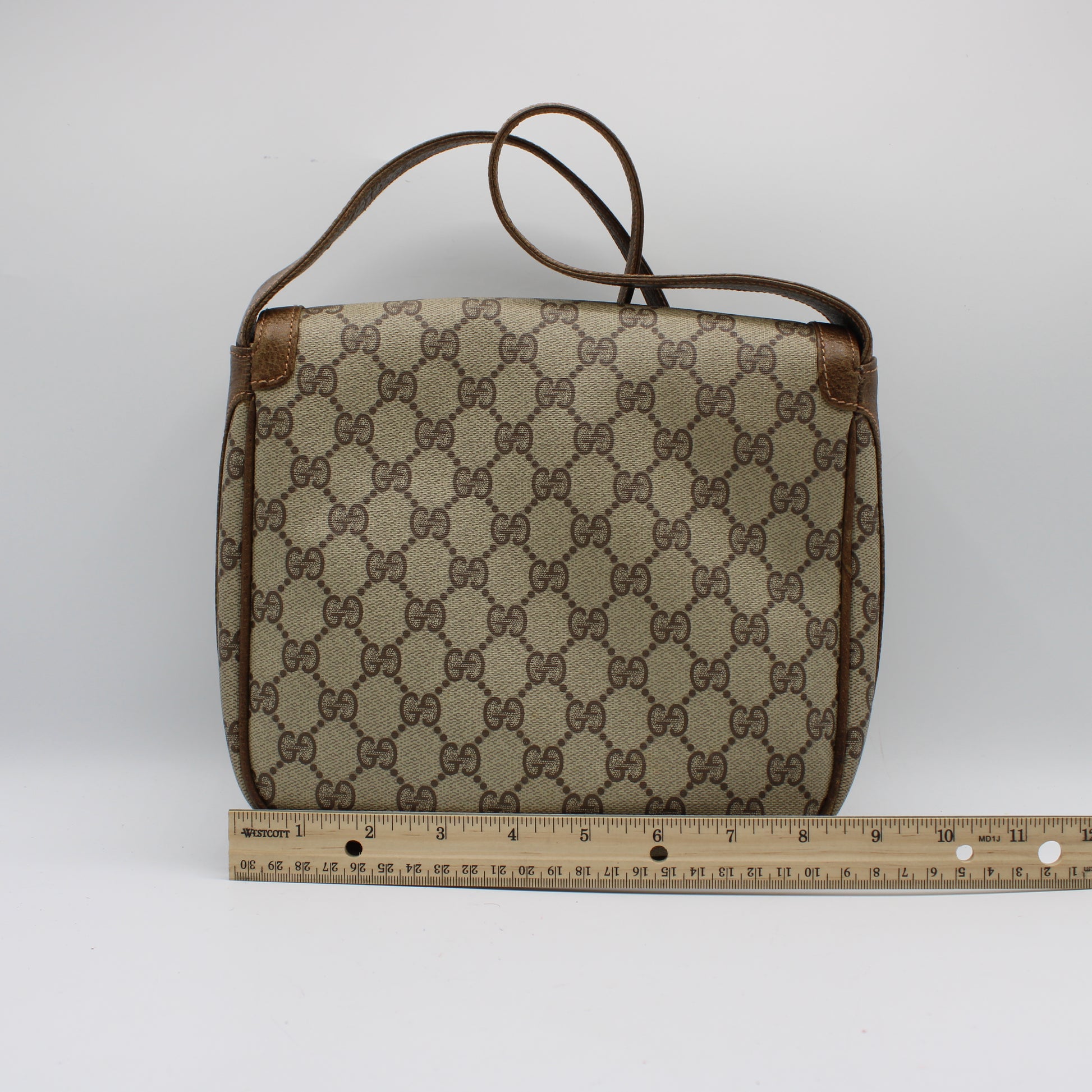 The bag is in Very Good vintage condition. The GG canvas remains clean and well-preserved with consistent pattern throughout. The leather trim shows gentle aging, and there is some visible wear on the leather strap consistent with careful vintage use. The interior leather lining is clean with light creasing and minor wear inside and out that are not visible during daily wear. Hardware remains functional and secure. Please refer closely to the detailed pictures provided for an accurate view of the item’s condition, as they form an essential part of the description.