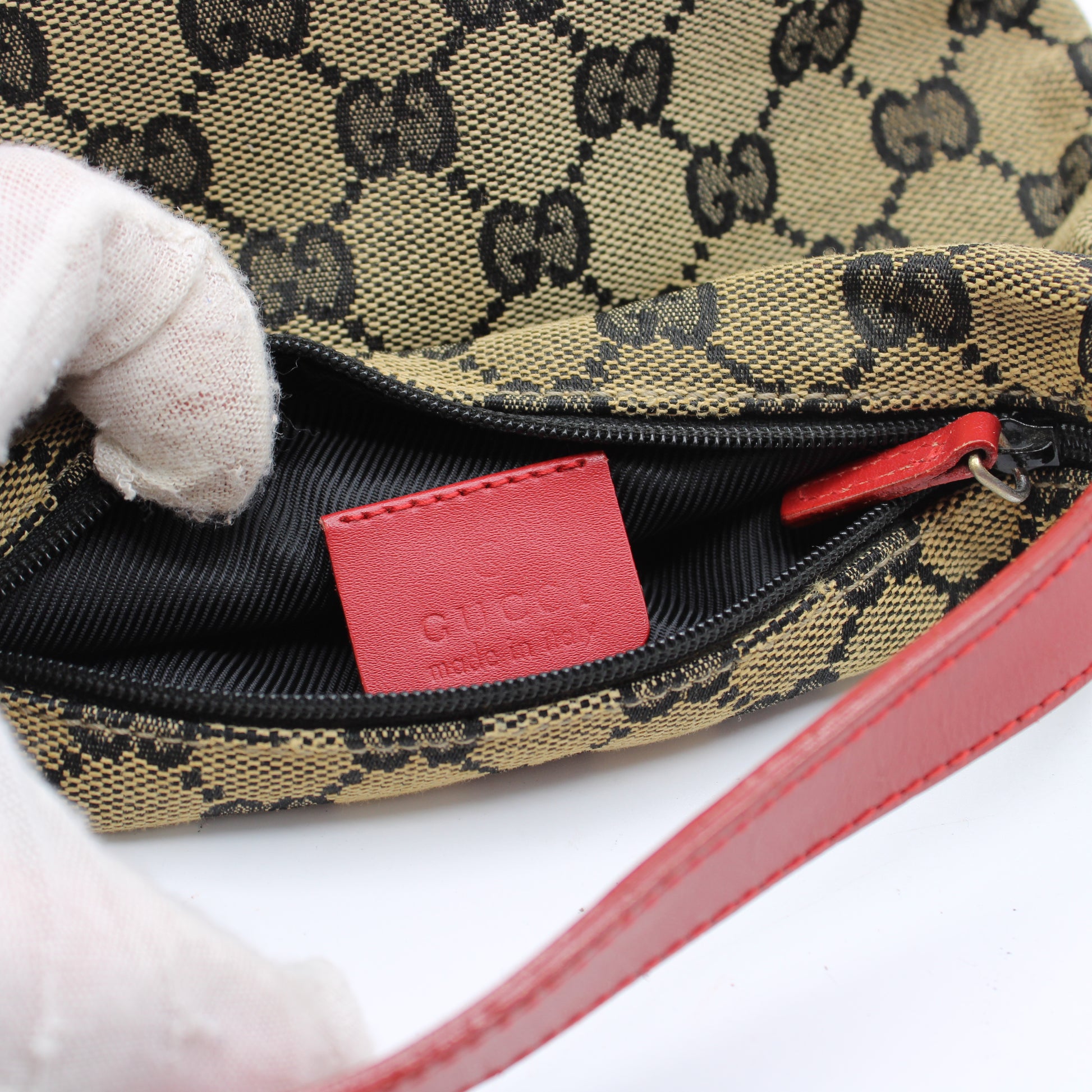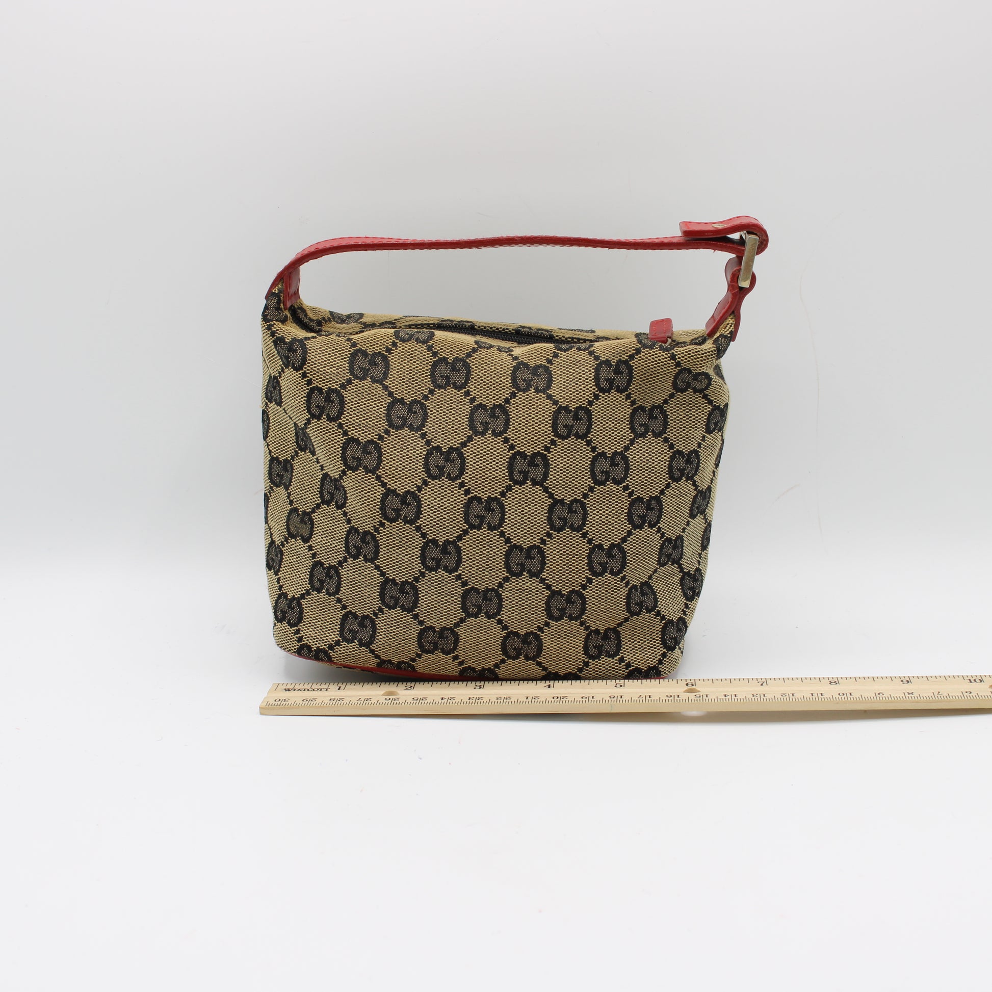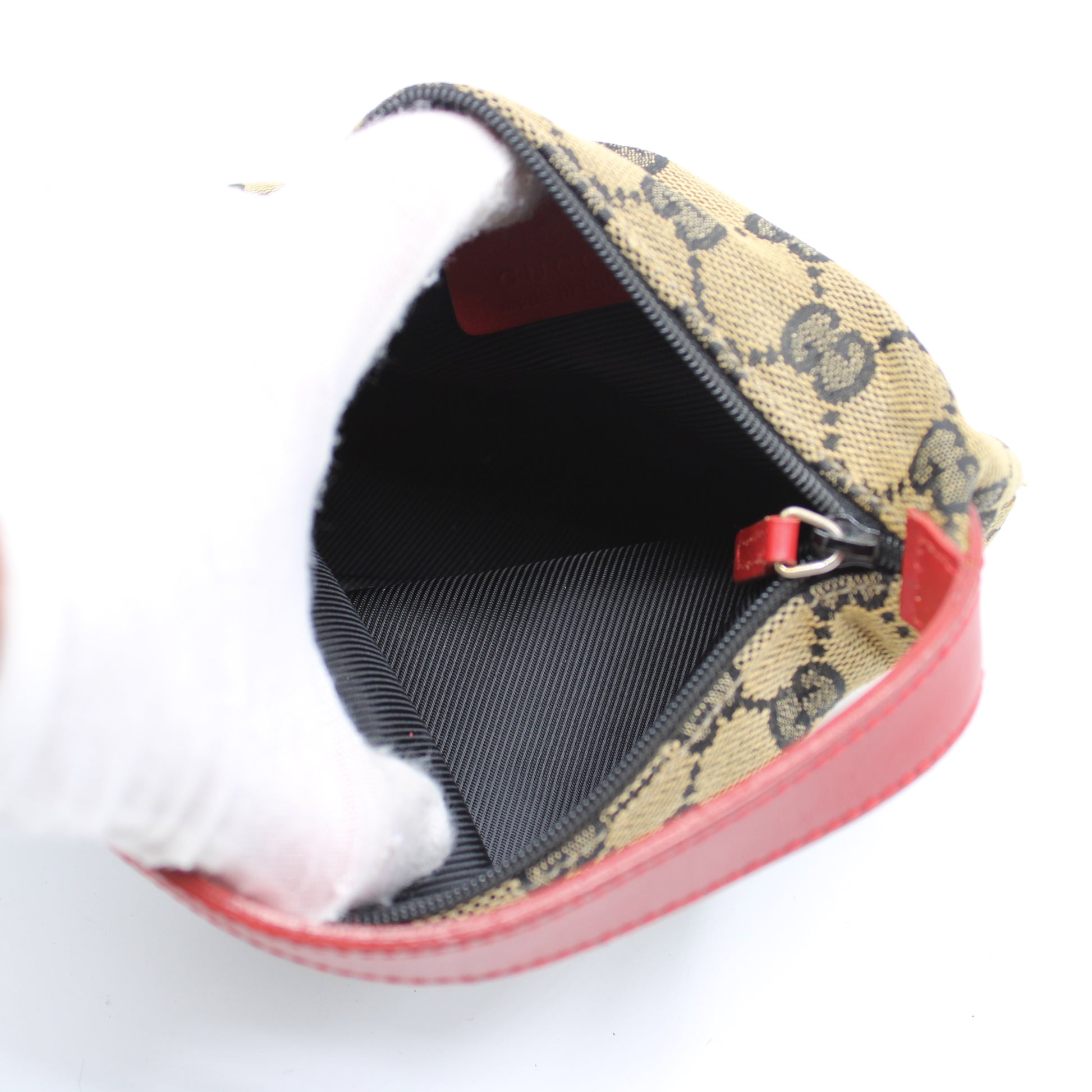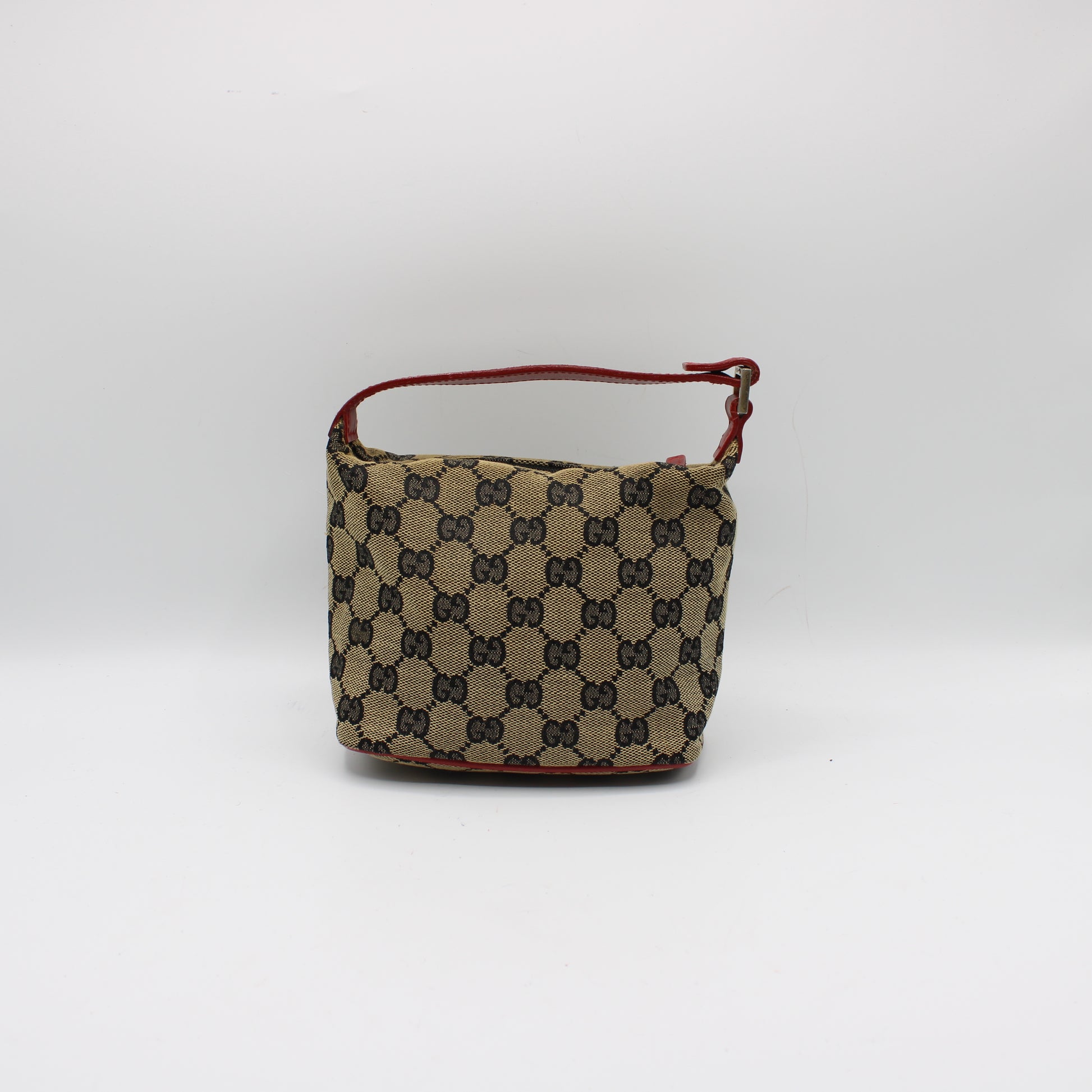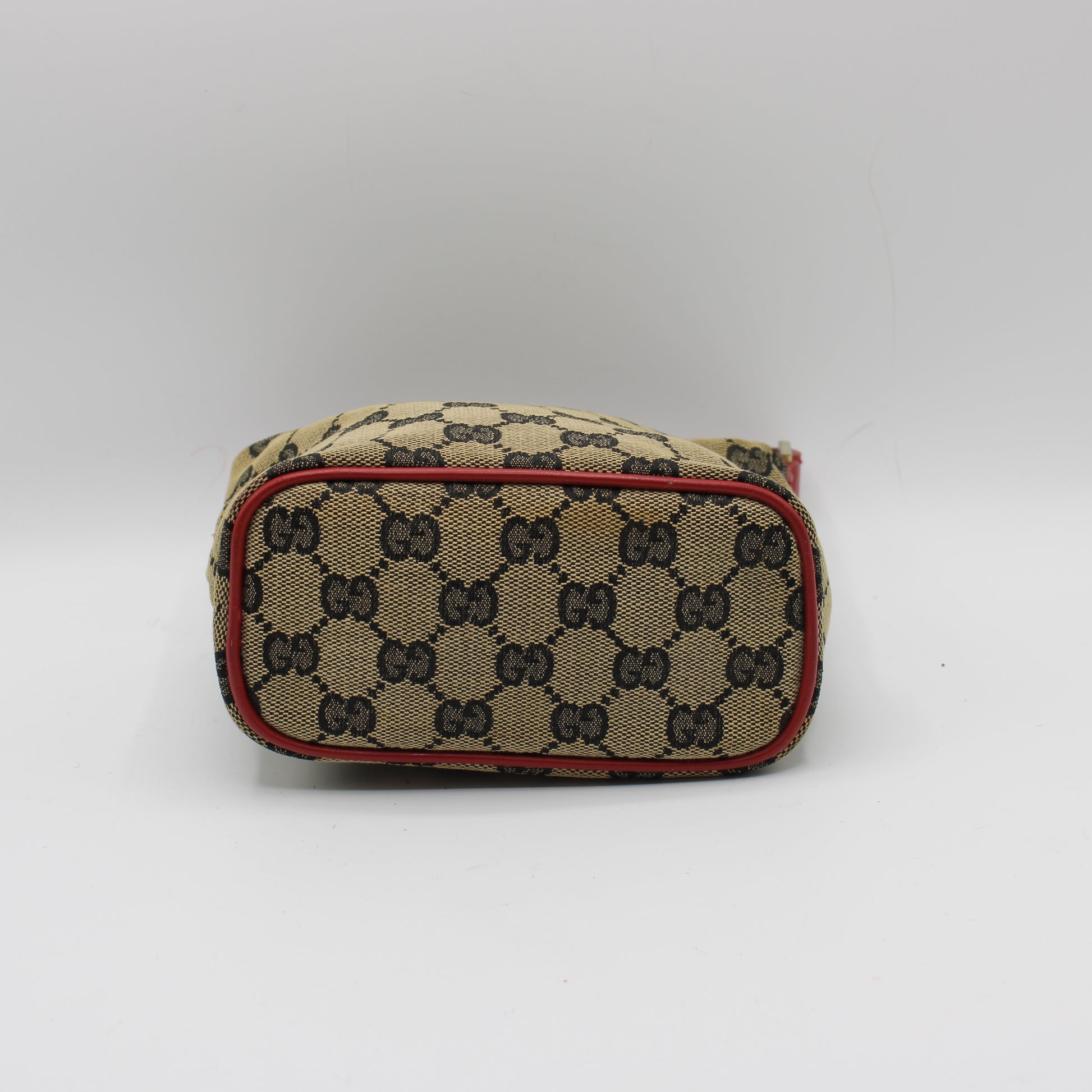 GUCCI Beige GG Canvas Red Leather Mini Pouch Handbag
