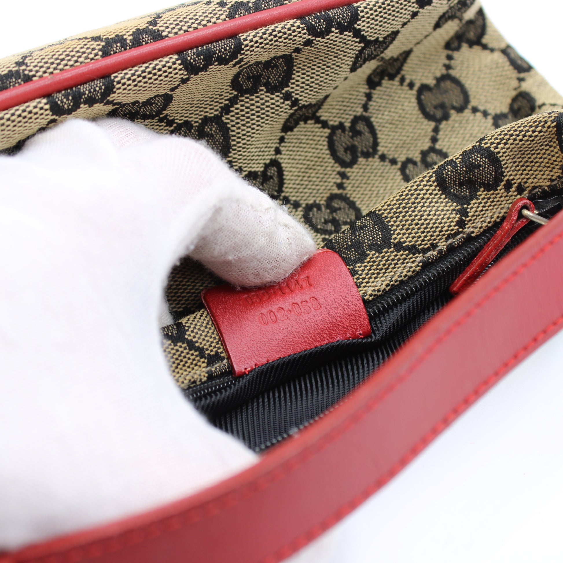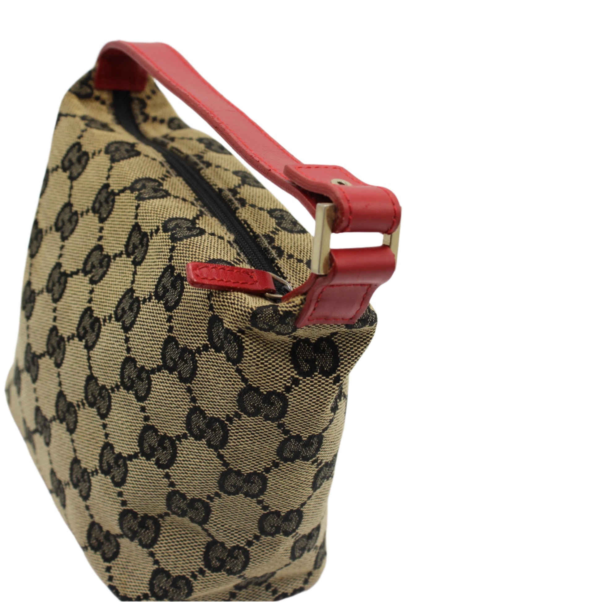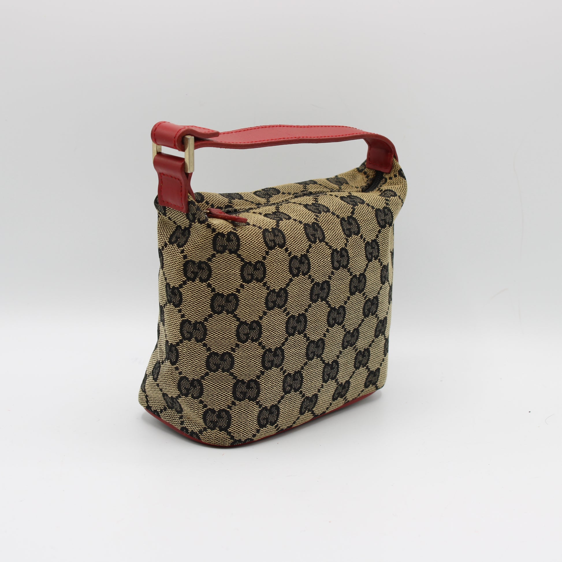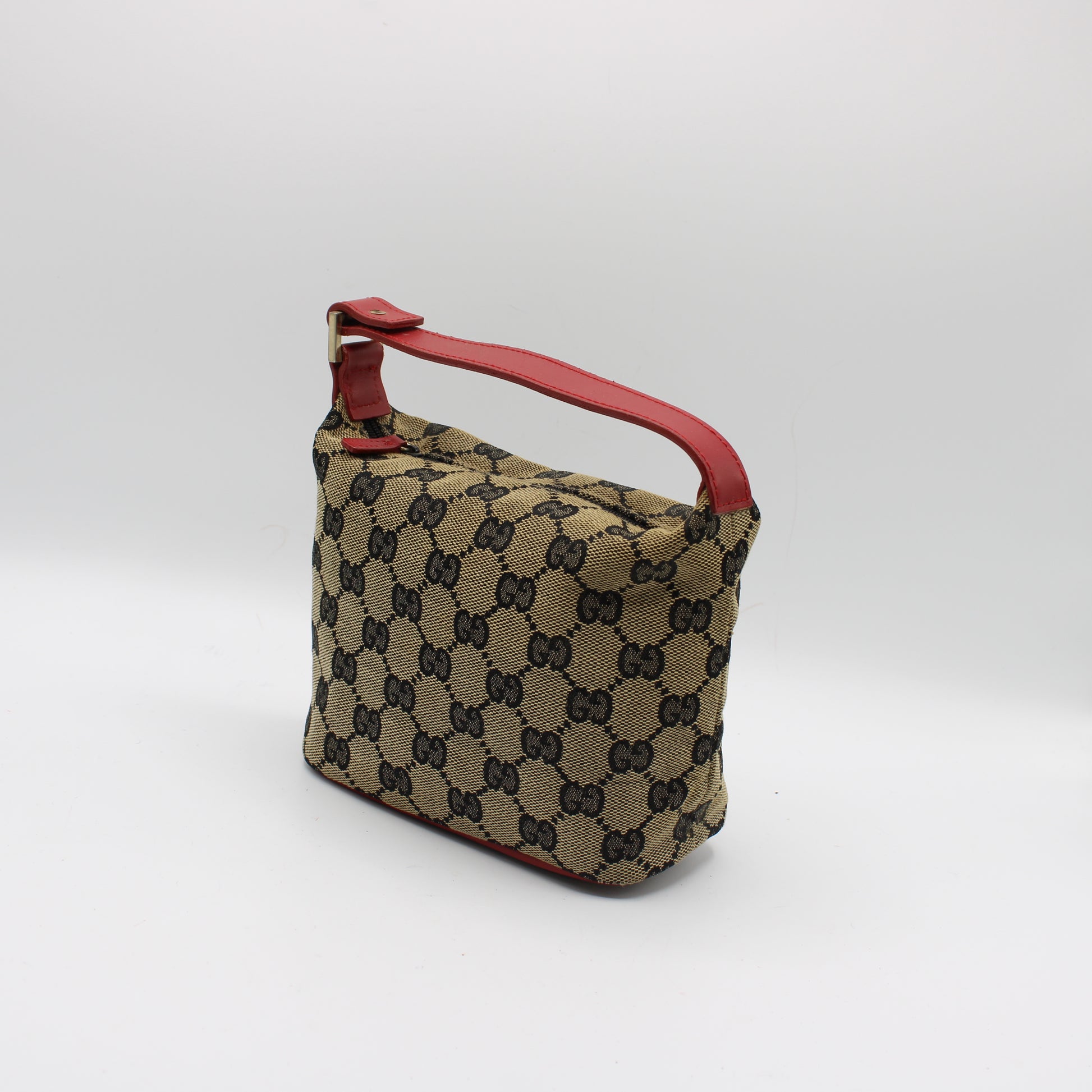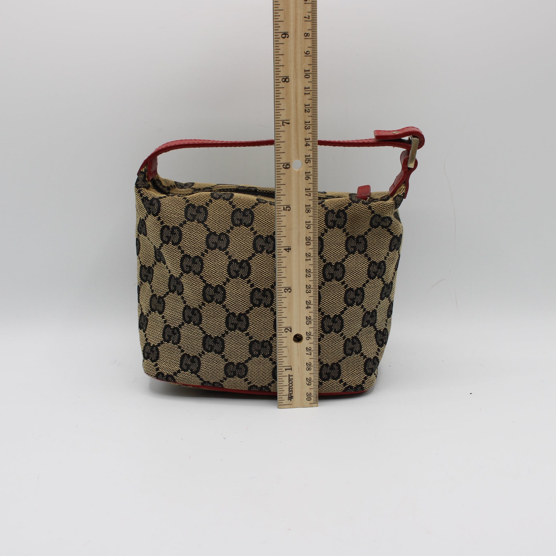 GUCCI Beige GG Canvas Red Leather Mini Pouch Handbag
