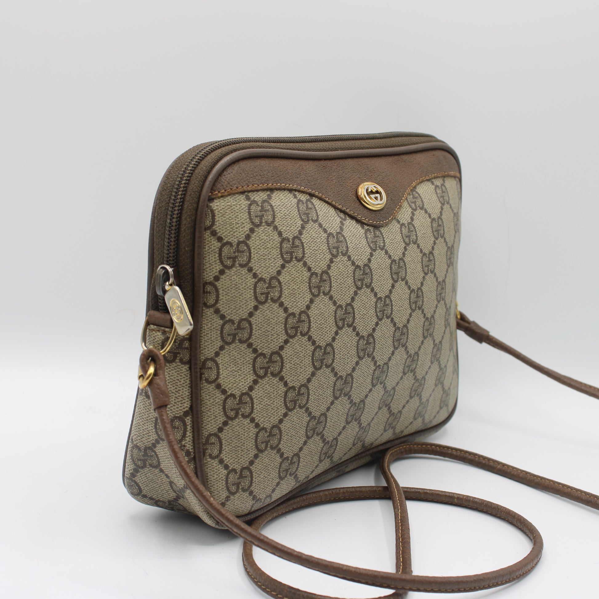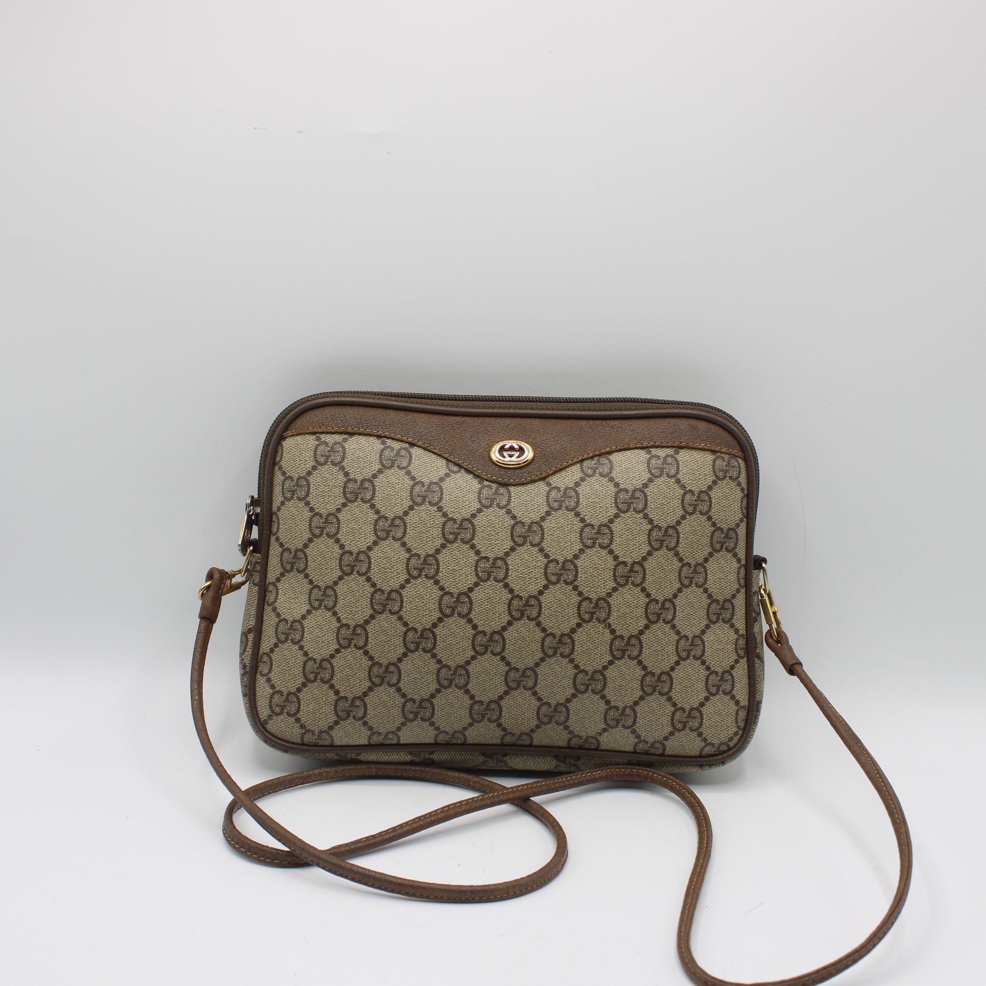 Stefany Bags Shoes and More presents this authentic Gucci coated canvas GG and leather trim crossbody bag, a versatile vintage piece that seamlessly blends timeless design with functionality. Crafted in the brand’s signature GG monogram canvas with smooth brown leather trim, this bag showcases Gucci’s enduring heritage and refined craftsmanship. The compact silhouette, sized at 9 x 7 inches, makes it ideal for both everyday use and evening outings, offering just the right amount of space for essentials. Designed with a removable leather strap, it can be styled hands-free as a crossbody or elegantly transformed into a clutch, making it a versatile addition to any wardrobe. The gold-tone GG hardware adds a polished finishing touch, reinforcing its classic appeal.