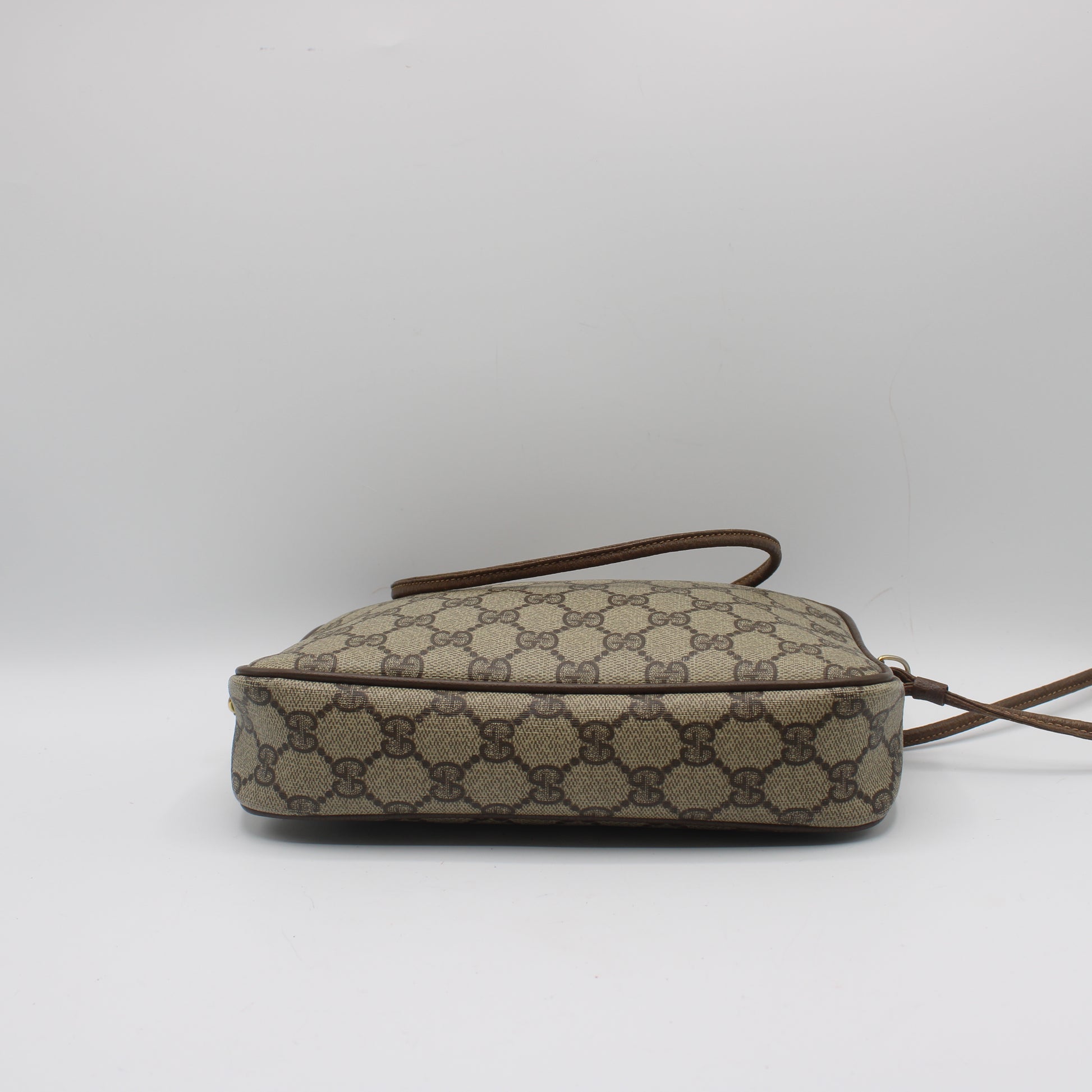 Gucci Brown Coated Canvas Gg Leather Trim Crossbody Bag