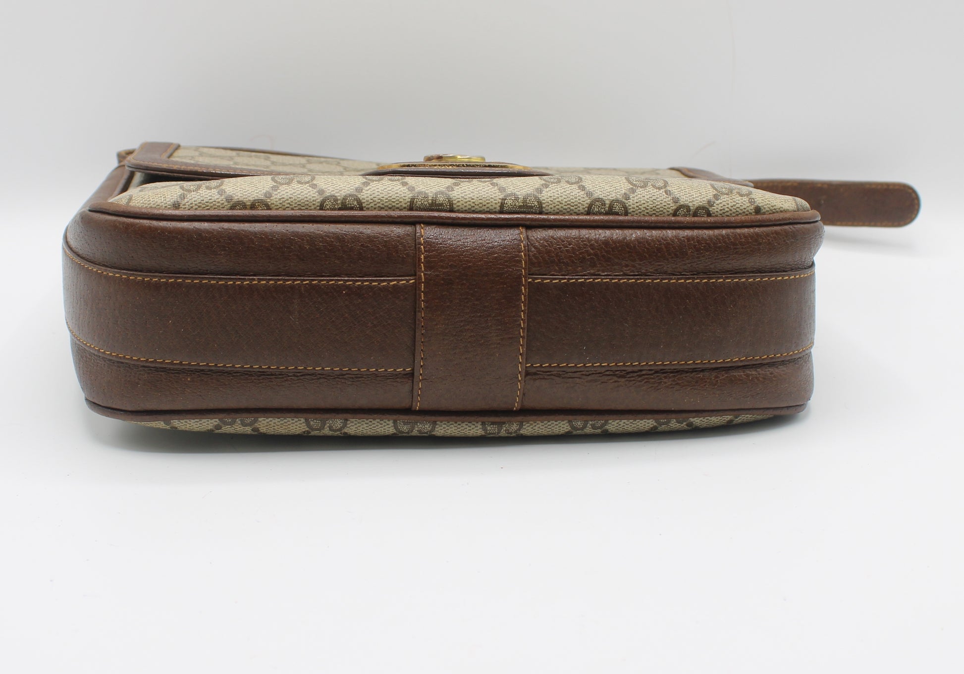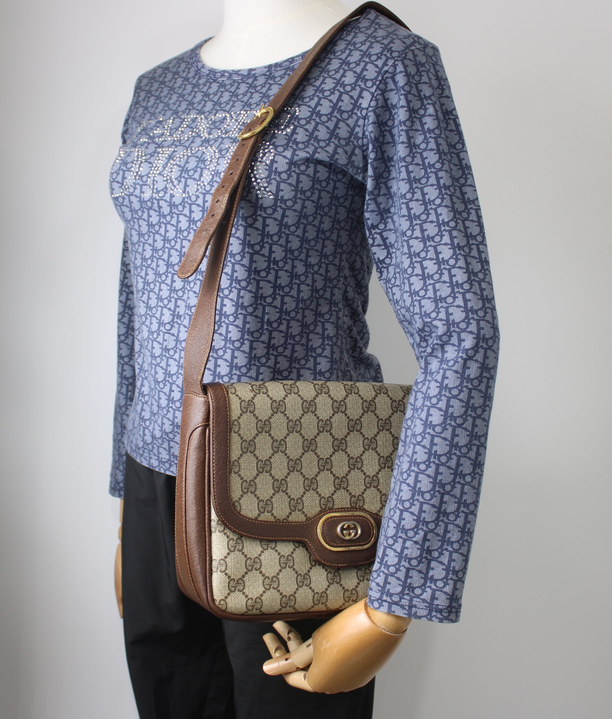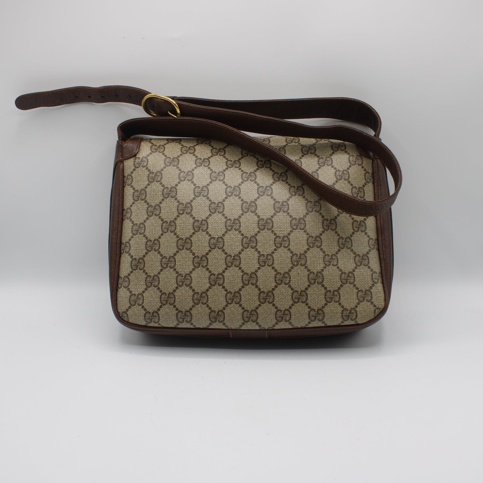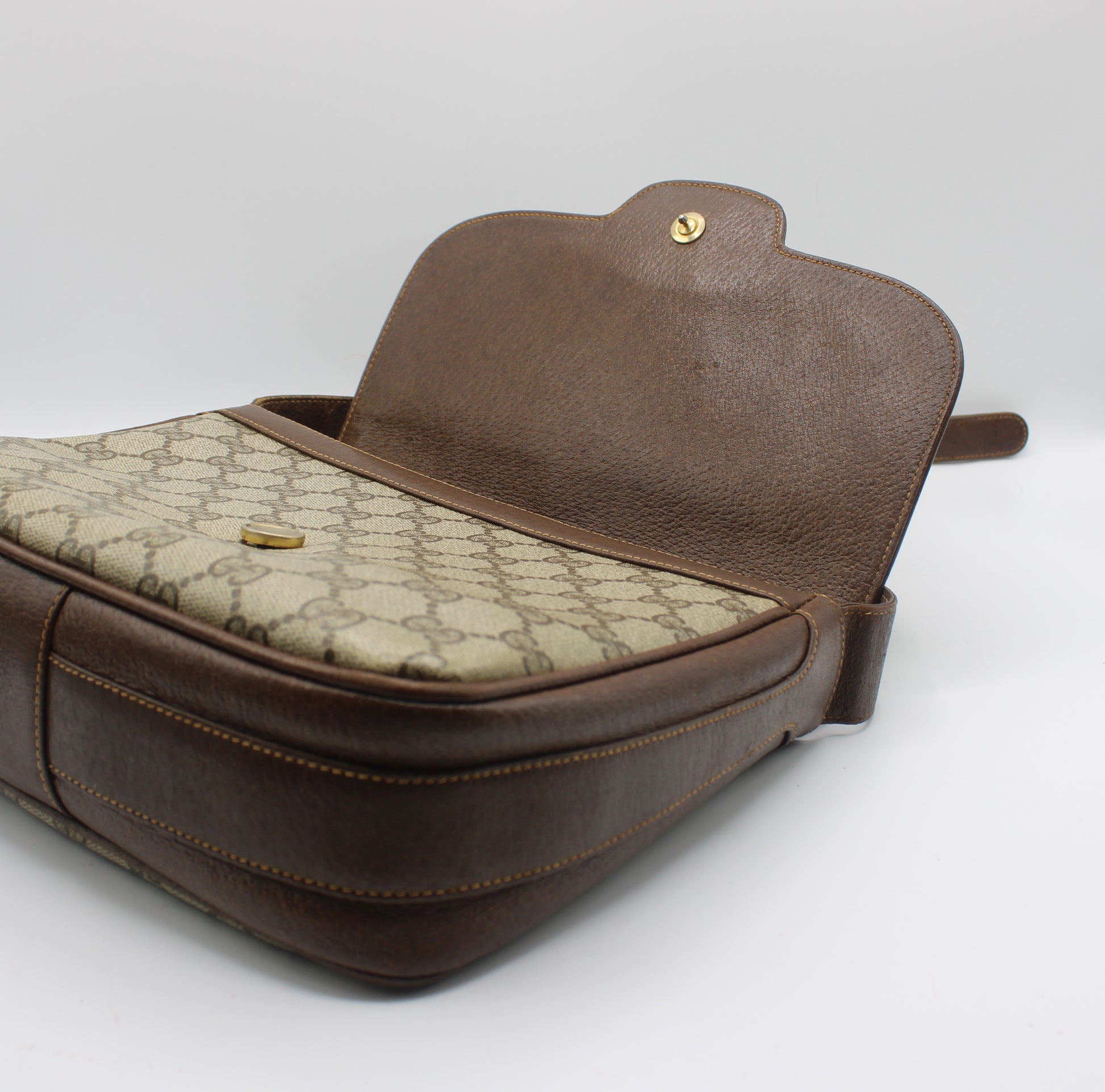Stefany Bags Shoes and More presents this authentic Gucci coated GG canvas and leather shoulder bag, a timeless vintage piece that blends luxury and everyday functionality. Crafted in Italy, the exterior showcases Gucci’s signature beige and brown GG coated canvas framed by rich brown leather trim. The adjustable leather shoulder strap ensures comfortable crossbody or shoulder wear, while the front flap is adorned with a gold and silver-toned interlocking GG logo plaque for a refined touch. Measuring approximately 10 x 9 inches, it is perfectly sized for daily essentials, offering an elegant yet practical style that transitions seamlessly from day to evening.