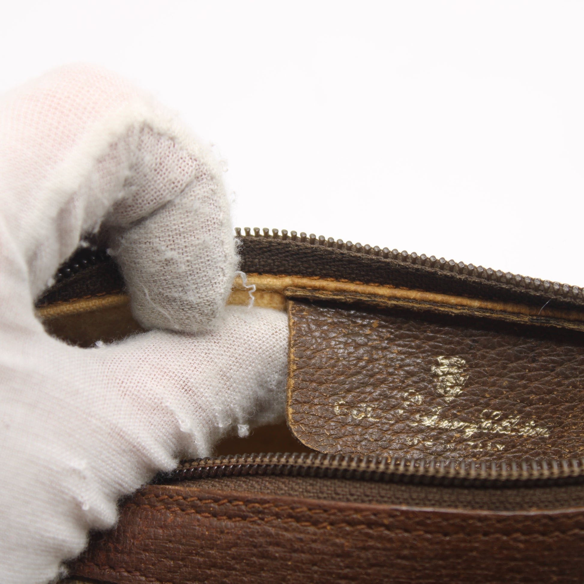 Stefany Bags Shoes And More presents this authentic vintage Gucci GG Supreme crossbody, a timeless staple from the late 1980s to early 1990s. Crafted in Italy, this structured shoulder bag features Gucci’s signature GG monogram coated canvas in brown, paired with dark brown leather trim and gold-tone hardware. A rich suede top panel, front tab with snap detail, and the unmistakable green and red web accent lend iconic house codes to this heritage design. The piece comes with a non-removable adjustable leather strap, perfect for wearing crossbody or on the shoulder.