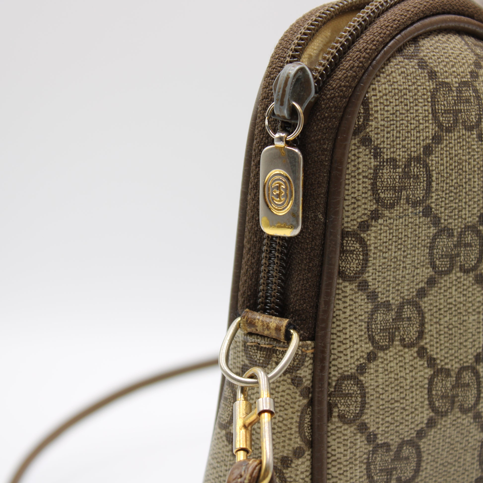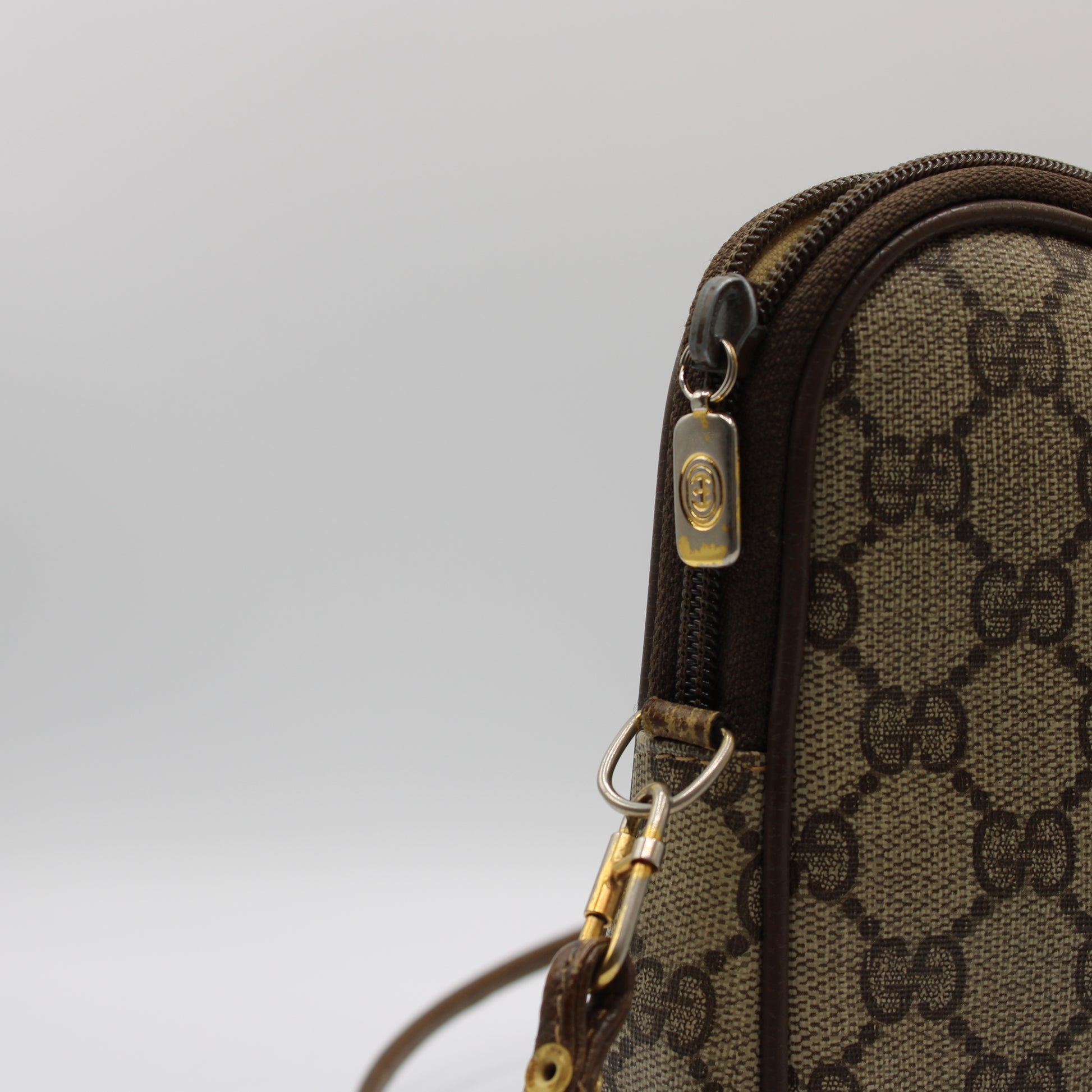This pre-loved Gucci crossbody is in very good condition. The exterior canvas and leather trim show minimal signs of wear, maintaining their structure and rich finish. The interior lining, however, has noticeable wear consistent with its age, which is typical for vintage bags of this nature. These minor imperfections are not visible during daily use and do not compromise the bag's overall charm or functionality. Please refer to the detailed images for a closer look at the interior and exterior.
