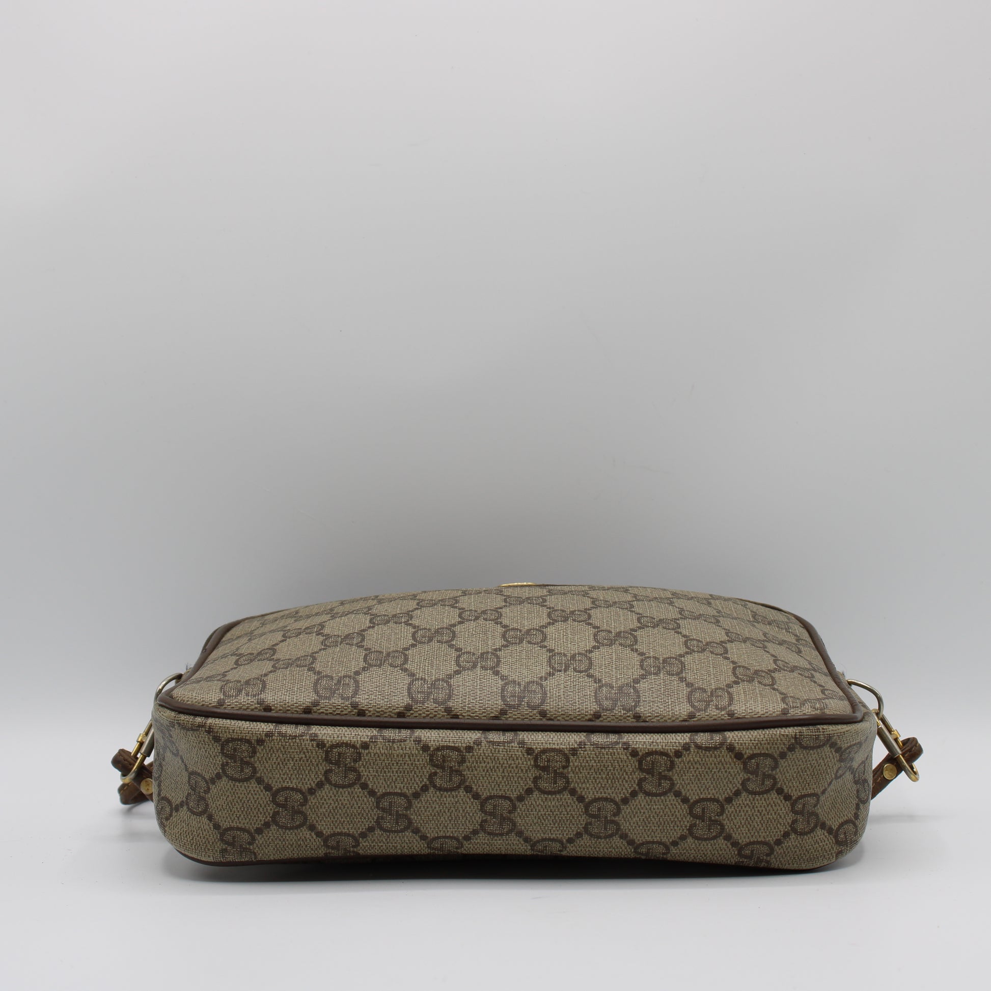 Gucci Brown Ophidia GG Monogram Leather Trim Crossbody Bag
