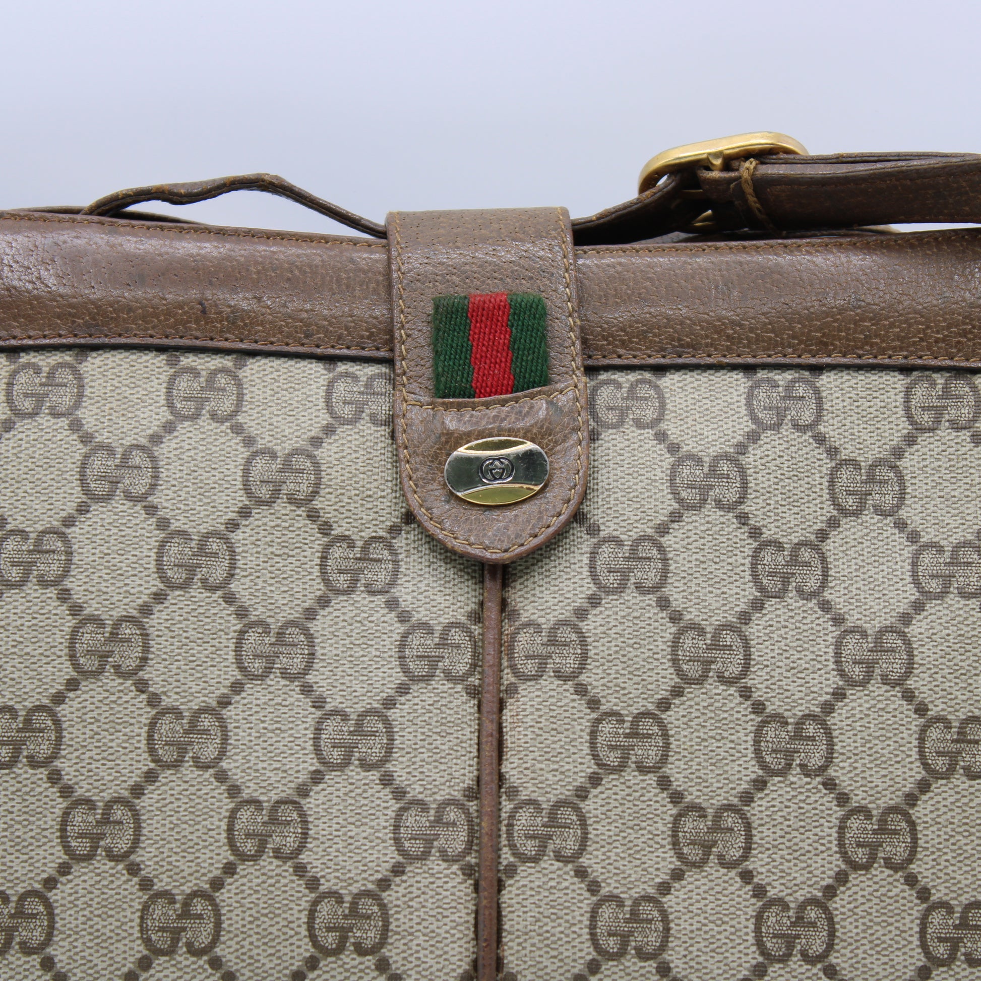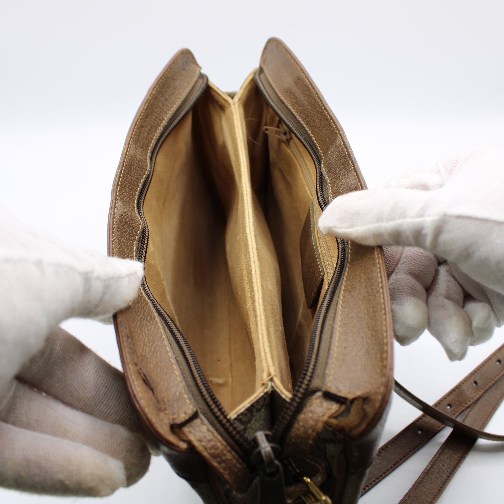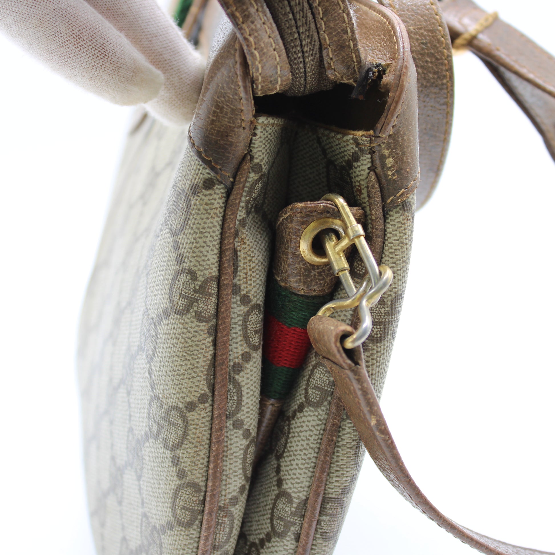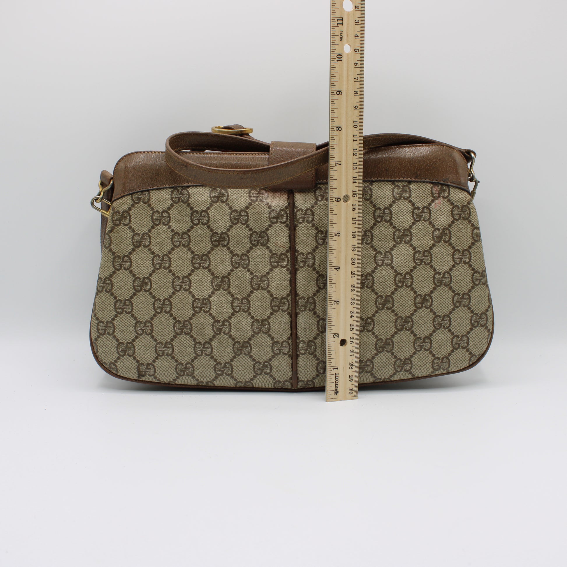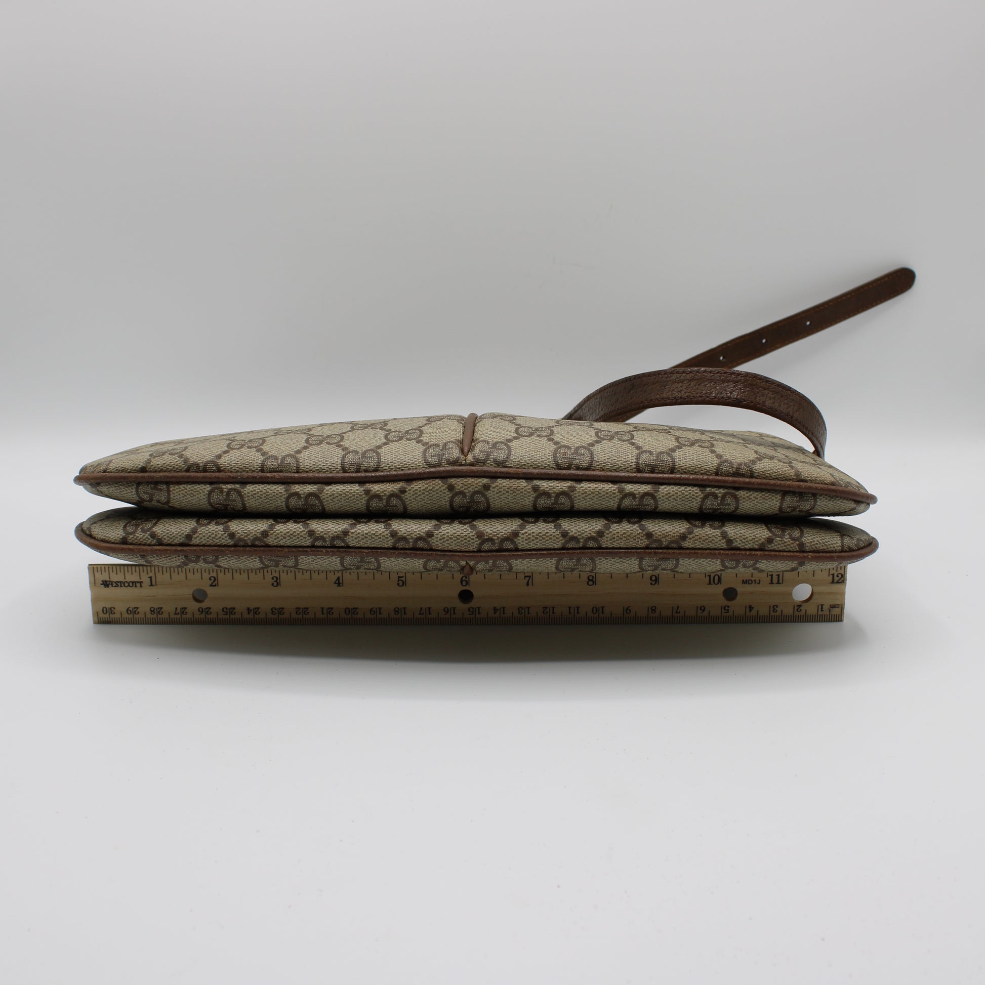 Crafted with meticulous attention to detail, this vintage Gucci crossbody bag is perfect for the fashion-conscious individual. The exterior boasts the durable GG Supreme canvas, known for its resistance to wear, while the brown leather trim and adjustable strap offer a luxurious contrast and comfortable wear. Measuring approximately 12 inches in width and 8 inches in height, this bag provides ample space for your essentials while maintaining a sleek, sophisticated profile. The interior, featuring multiple compartments, is designed for practical organization, ensuring that your belongings are secure and easily accessible.