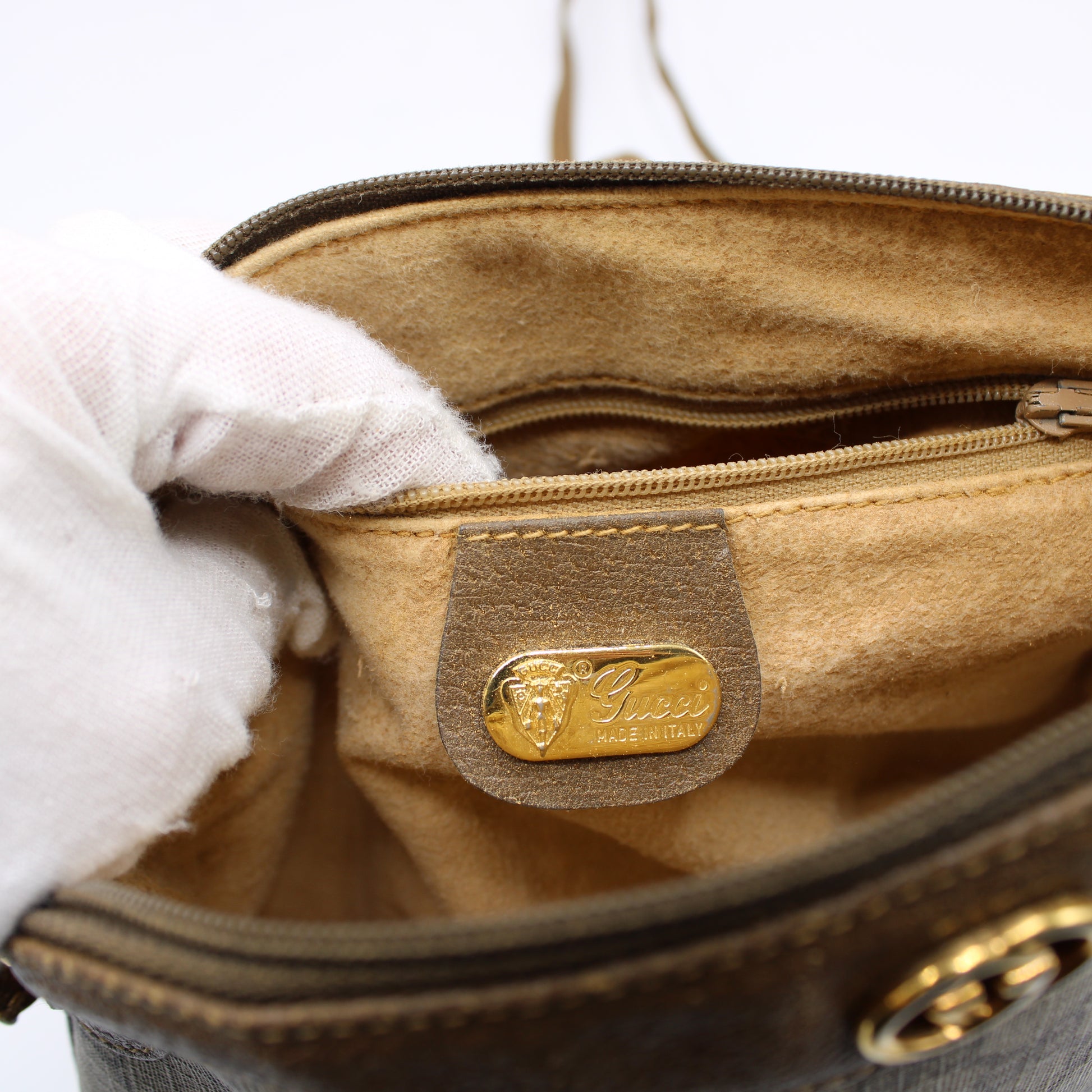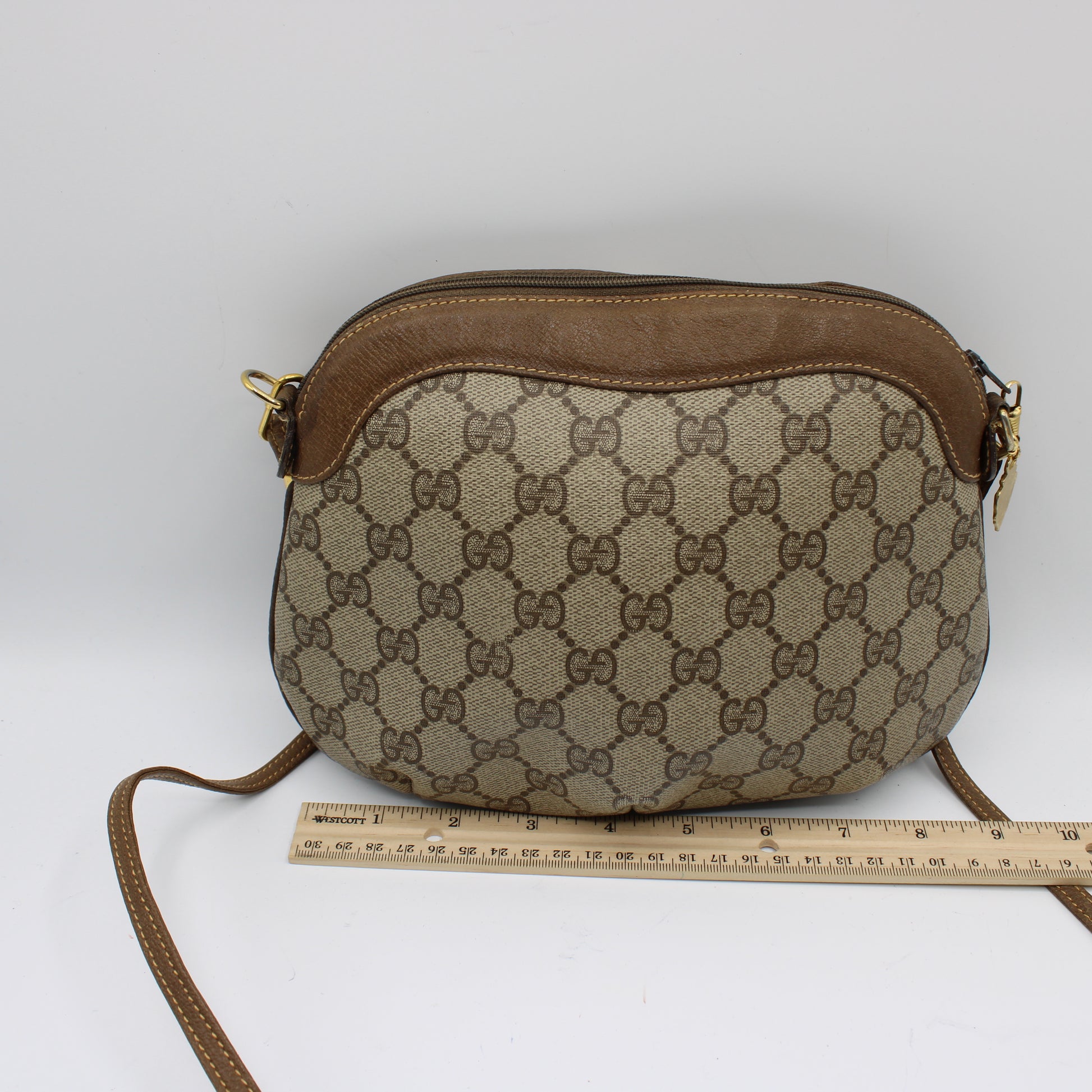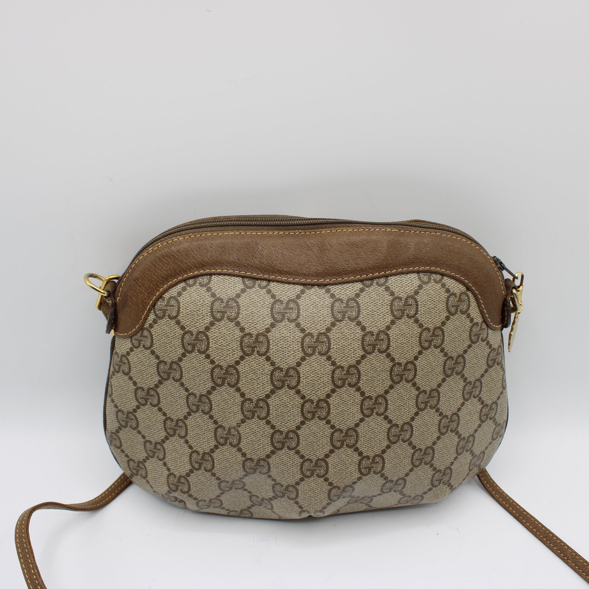 Stefany Bags Shoes and More presents this authentic Gucci GG Canvas and Brown Leather Marmot Crossbody Bag, a timeless vintage piece that blends everyday functionality with classic luxury. Crafted from Gucci’s signature GG monogram canvas in beige and brown, this bag is elegantly trimmed with supple brown leather for a refined finish. The structured round silhouette is secured with a zip-top closure, while the gold-tone GG logo emblem on the front adds a touch of sophistication. The removable, non-adjustable leather strap offers versatility, allowing this bag to be worn as a crossbody or converted into a pouch for added convenience.