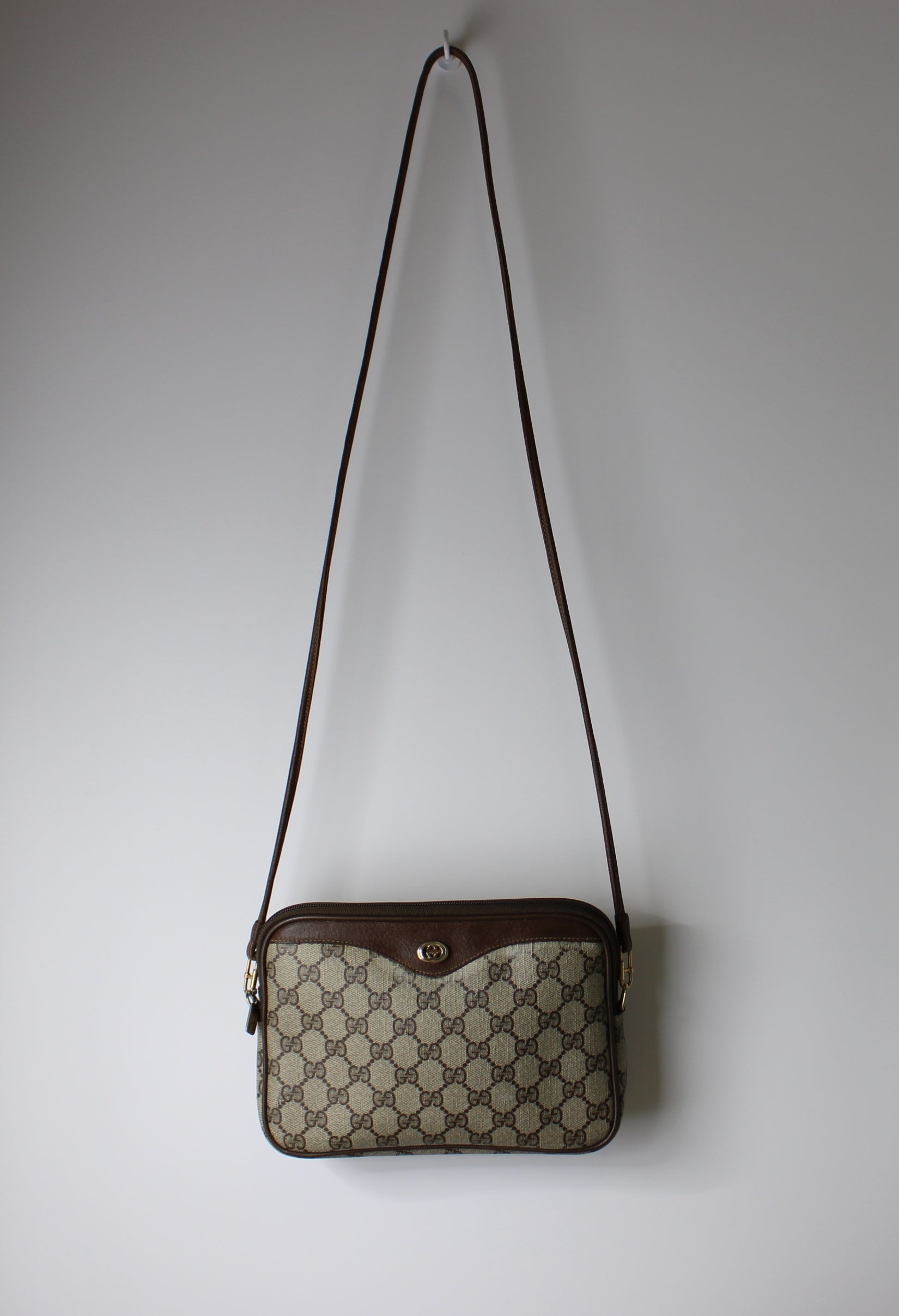 Stefany Bags Shoes and More proudly presents this authentic Gucci GG Ophidia crossbody bag, a timeless piece that effortlessly combines functionality and luxury. Crafted from Gucci's iconic GG Supreme canvas, this bag features rich brown leather trim and a matching adjustable strap, ensuring both durability and style. The signature metal logo on the front adds a touch of classic Gucci elegance.