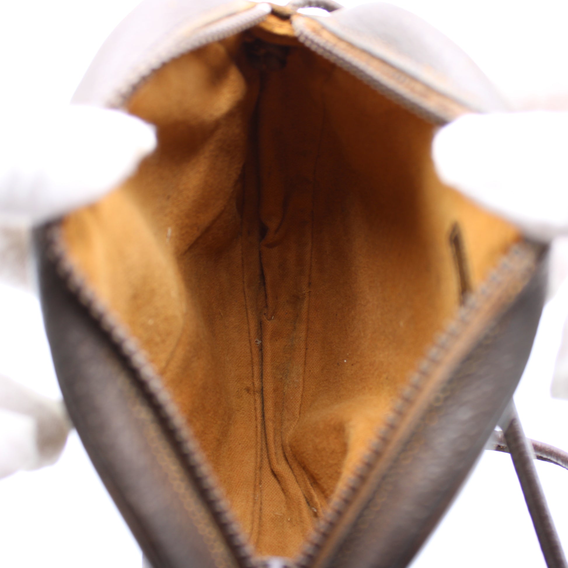 This piece arrives in splendid condition, showcasing the minimal signs of wear expected from a cherished vintage item. The exterior leather shows slight wear, particularly on the strap and edges, while the interior lining has developed a gentle patina, indicative of its age and careful preservation. These subtle marks of use do not detract from its beauty but rather add to its authenticity and charm.