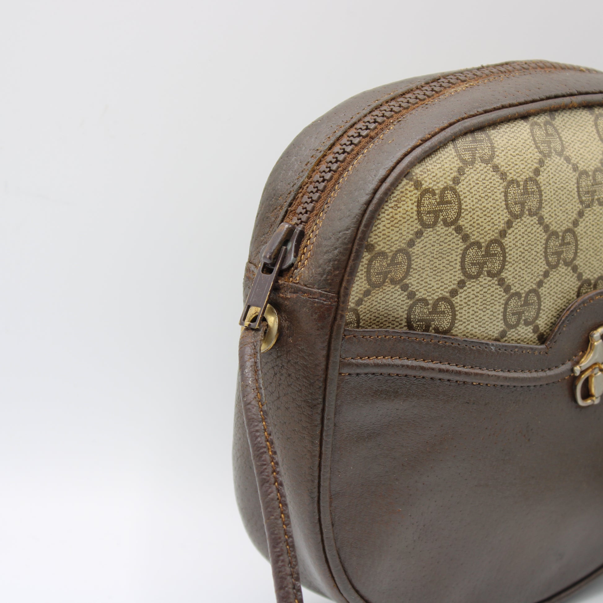 Gucci Horsebit 1955 Brown GG Monogram Canvas Crossbody Shoulder Bag