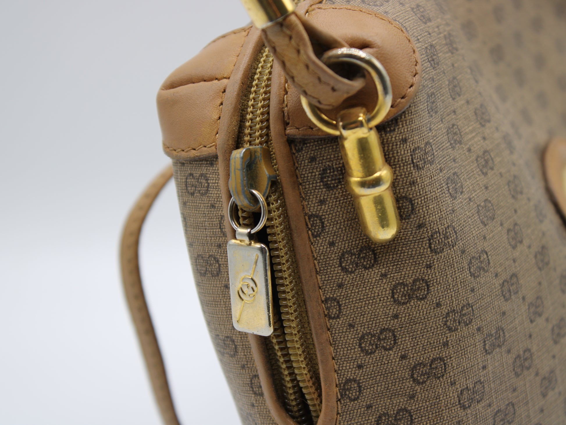 Gucci Bag Micro Bree GG Canvas Crossbody Gold Accents Vintage