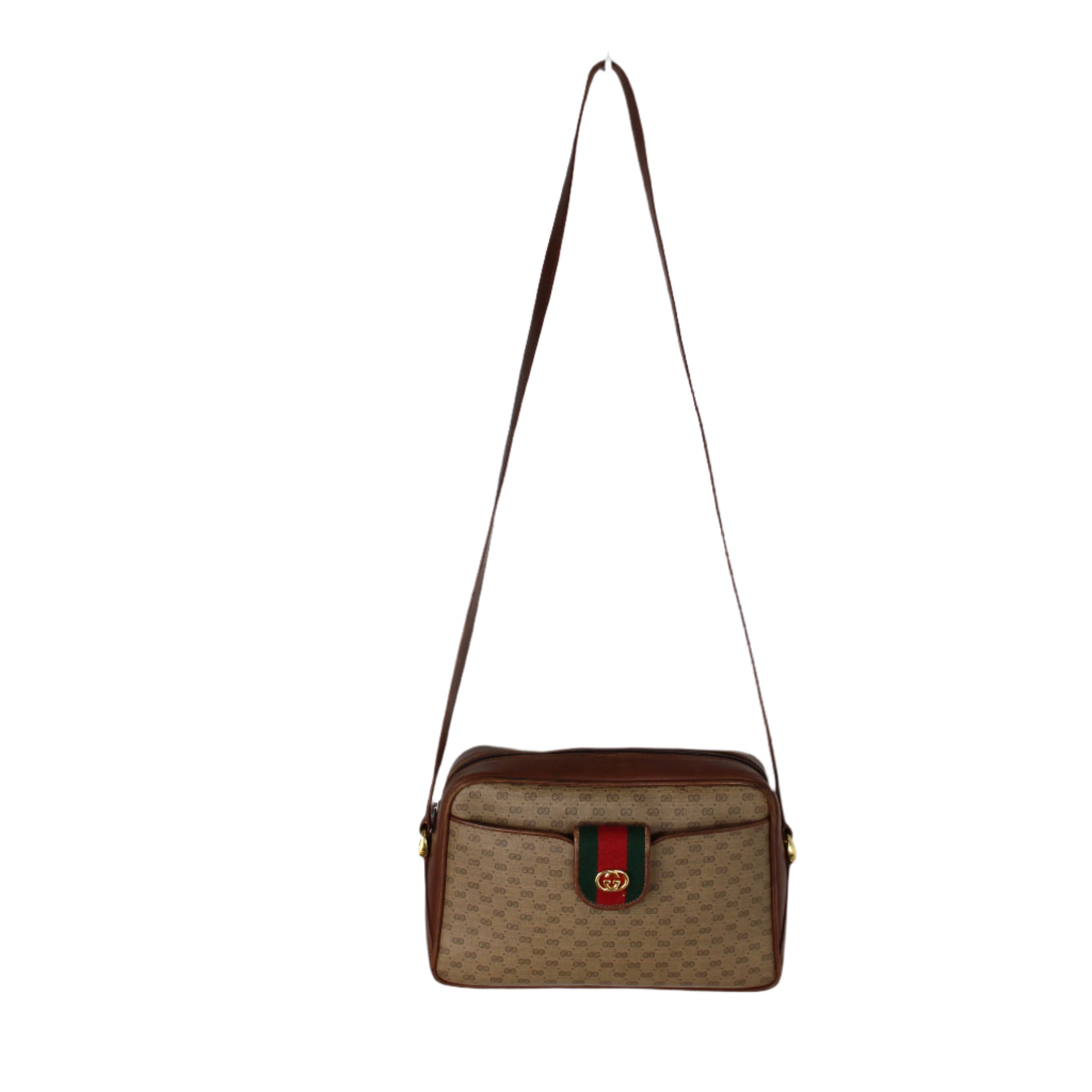 Stefany Bags Shoes and More presents this authentic vintage Gucci Microguccissima Supreme Crossbody Bag, a timeless classic with a removable pouch that doubles as a wallet. Crafted in the iconic GG monogram canvas, this bag showcases Gucci’s signature brown leather trim and strap, delivering a perfect blend of sophistication and versatility. The green and red Web stripe closure with gold-tone GG hardware on the pouch adds a touch of unmistakable Gucci heritage. With a structured zip-top design, it ensures secure storage while maintaining an elegant and practical aesthetic. This piece is a must-have for lovers of vintage luxury.