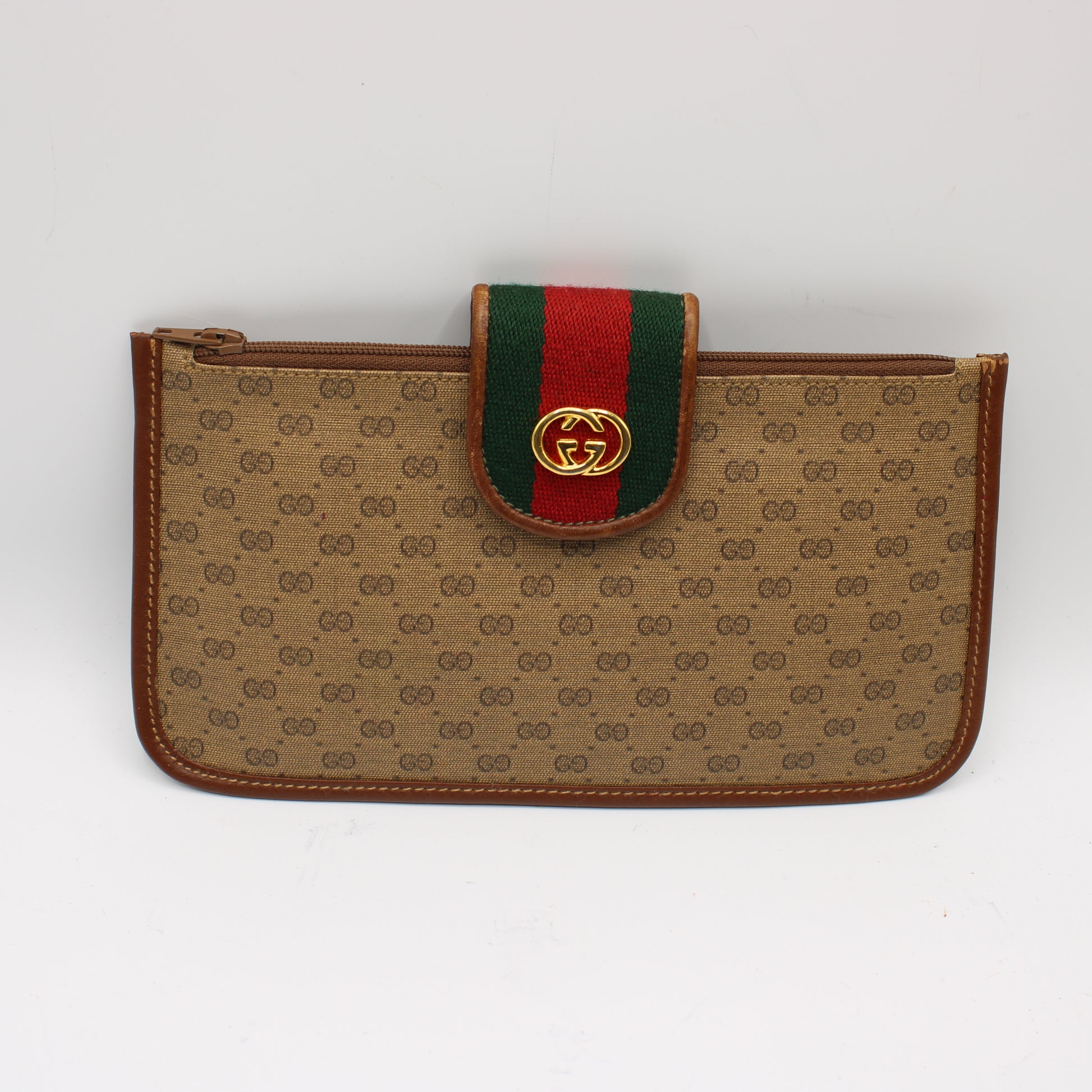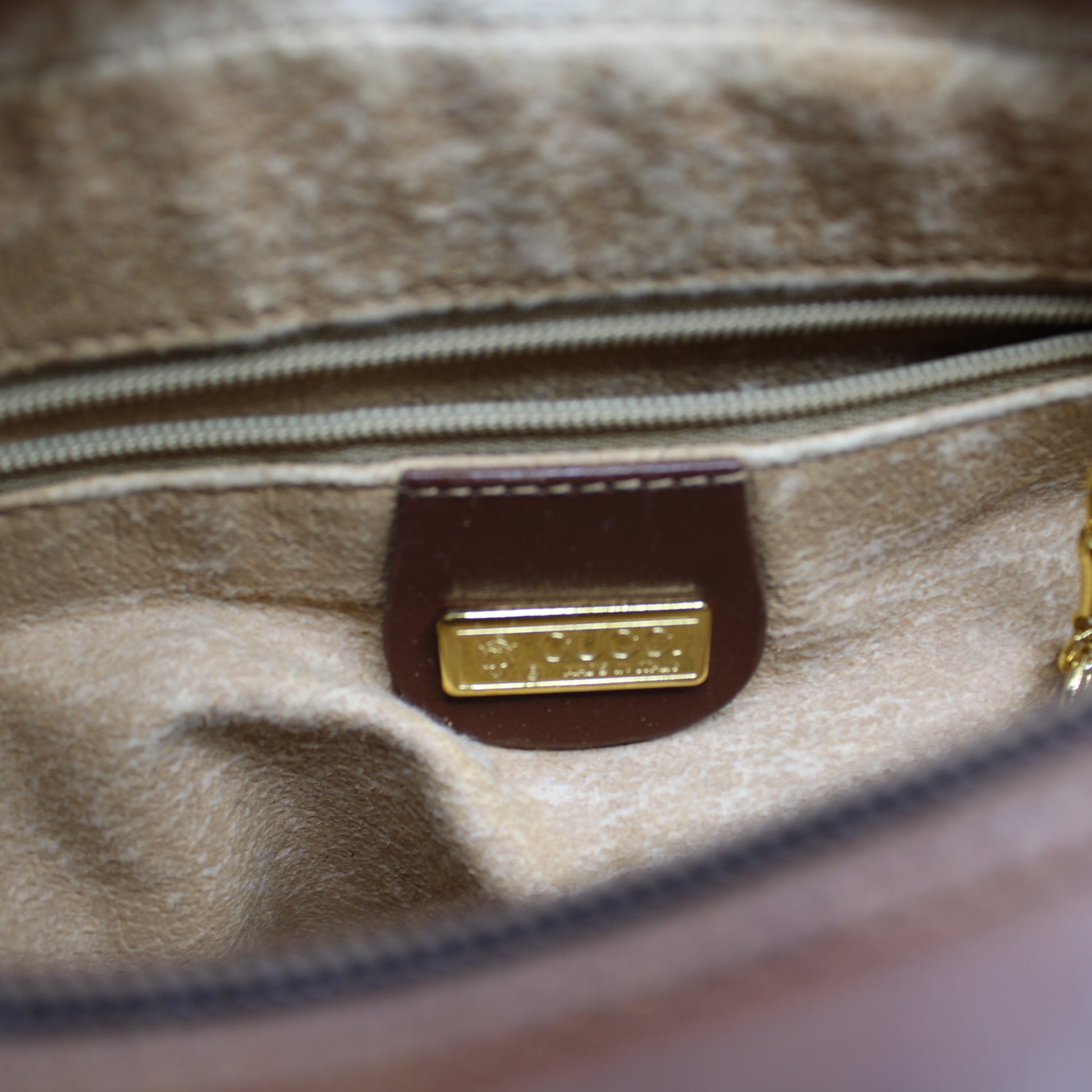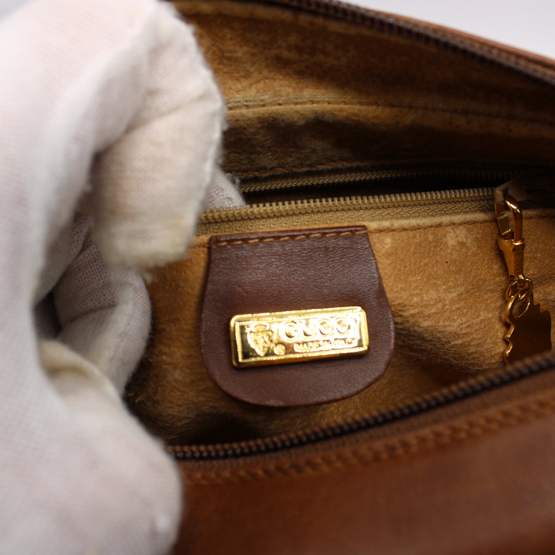 This Gucci bag remains in very good condition, with some expected wear on the lining, typical for this era of Gucci craftsmanship. The interior suede lining shows signs of age, but this does not affect the bag’s functionality or daily use. The exterior leather trim and strap are well-preserved, with minimal wear, and the gold-tone hardware remains bright and intact. The removable pouch is a standout feature, allowing for added organization or use as a chic standalone wallet.