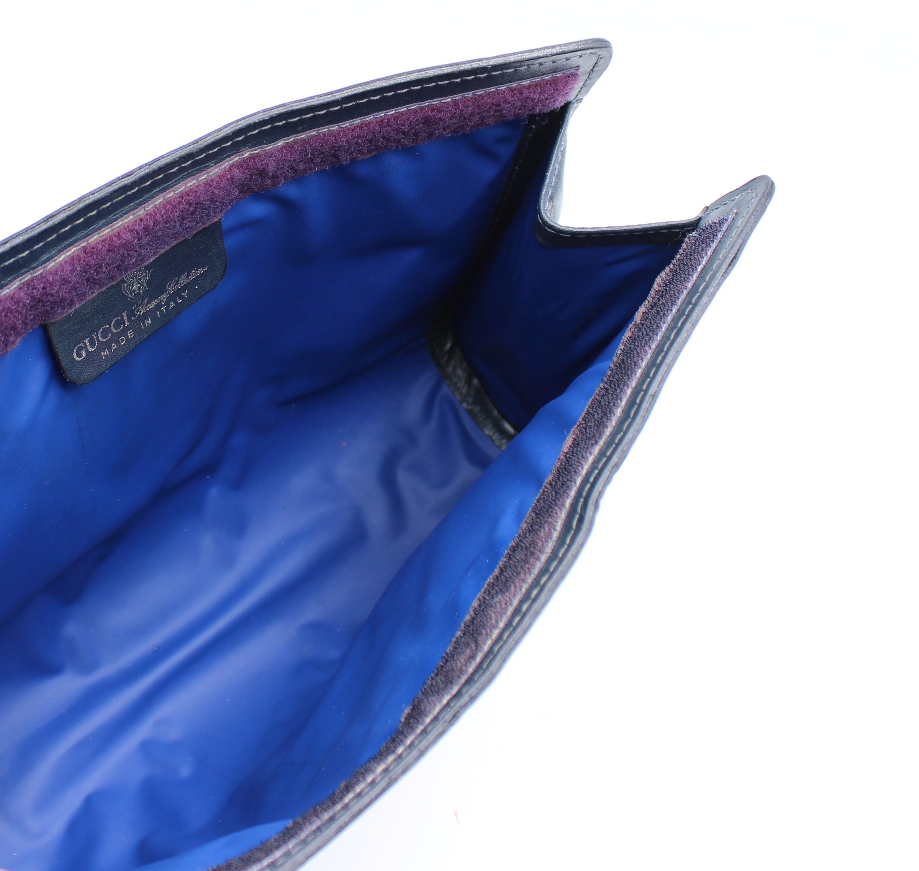 The bag is in very good vintage condition, showing light, expected signs of gentle use consistent with age. The exterior canvas remains clean and well-preserved, with the leather trim and sides maintaining structure and color. The interior blue lining is intact with minor wear inside and out that are not visible during daily wear. Please refer closely to the detailed photos provided, as they accurately reflect the current condition of this authentic vintage Gucci piece.